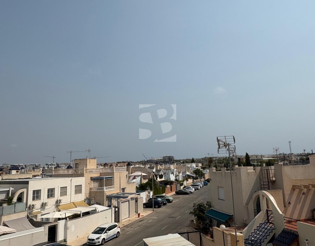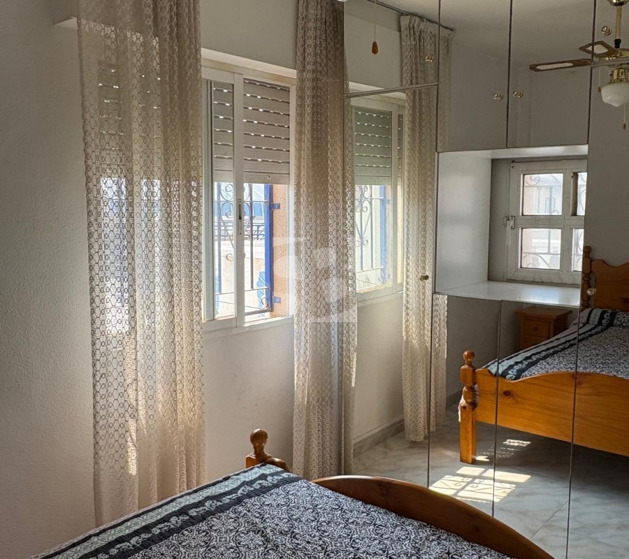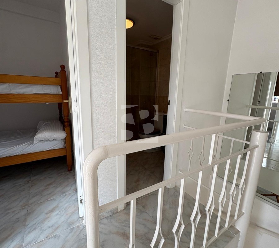 The home has three bedrooms (one on the ground floor), a spacious, bright living room with a kitchen, and a bathroom. Upstairs, there are two bedrooms, a bathroom, a terrace, and a large solarium perfect for enjoying the views and sunbathing.