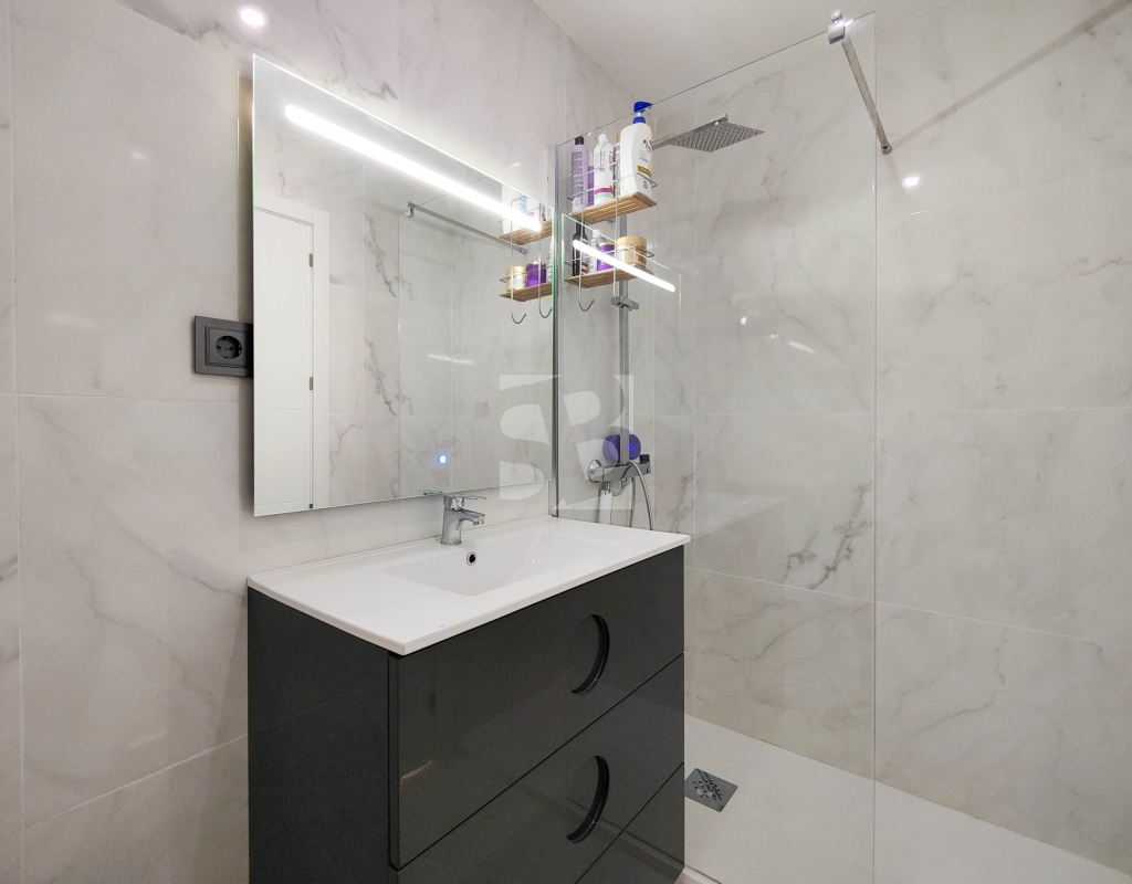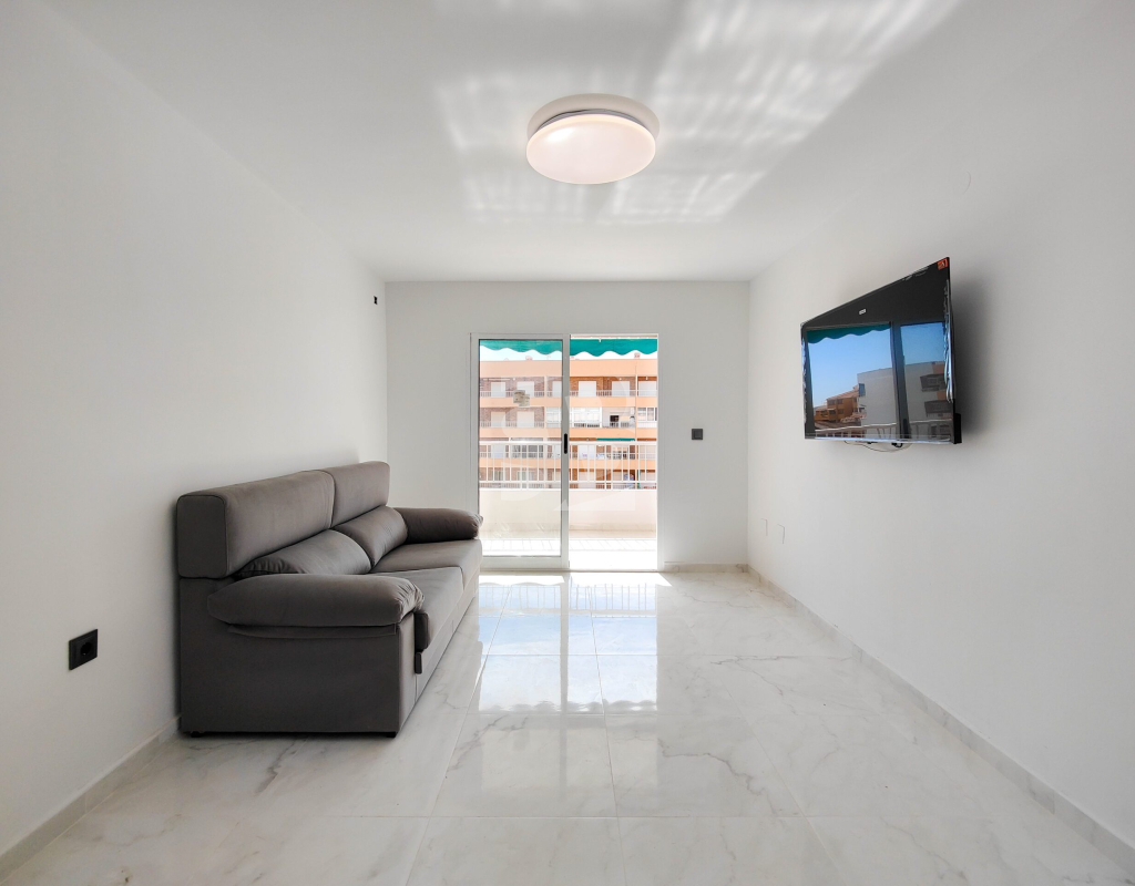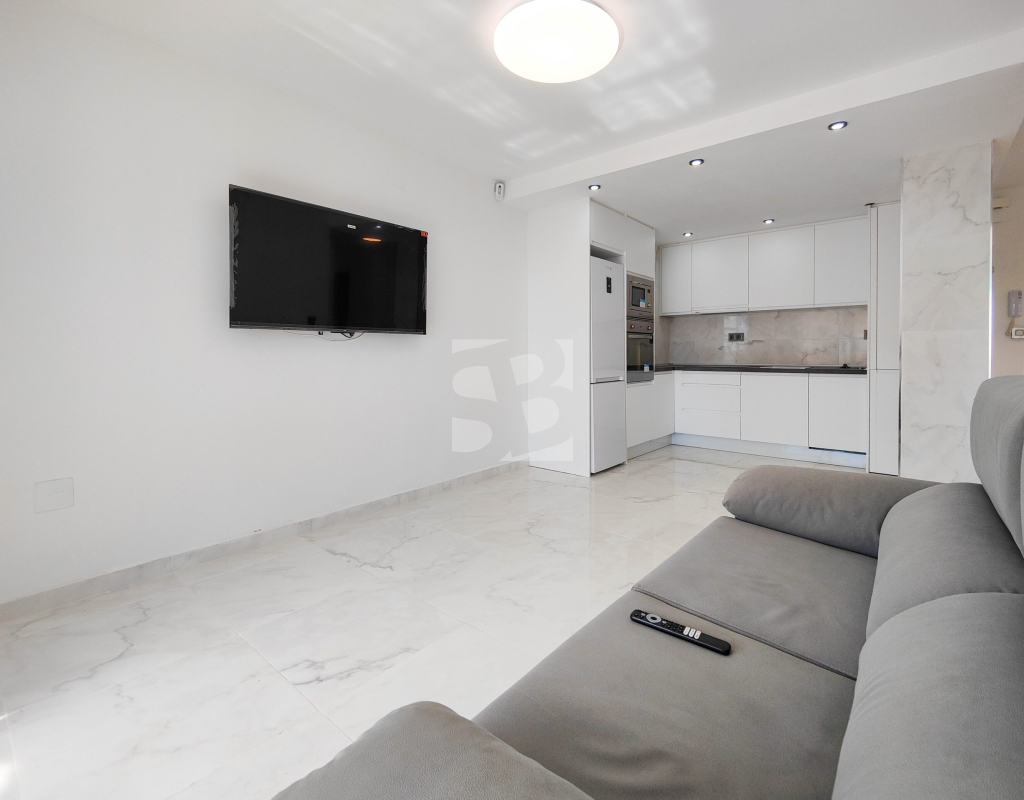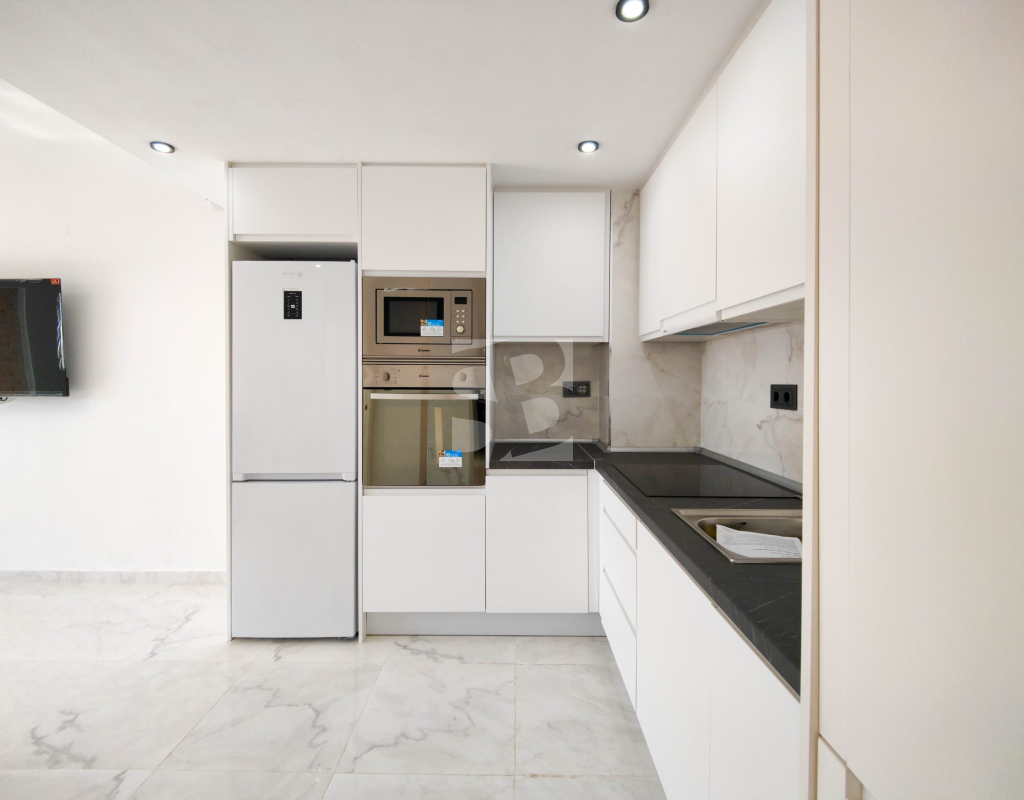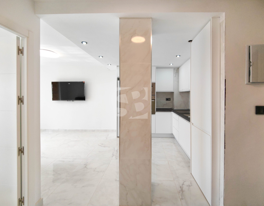 Beautiful completely renovated south facing apartment with views over the swimming pool for sale in Rocío del Mar - Punta Prima - Torrevieja. Located in a building with elevator, covered and fenced parking for residents and a huge communal swimming pool with lifeguard. Very well kept building, recently reinforced. This wonderful apartment has been completely renovated, including electrical installation and plumbing, ready to move into.The apartment has 2 large bedrooms with fitted wardrobes and access to the terrace, 2 bathrooms (both with shower), a bright living / dining room with a beautiful brand new integrated kitchen. The bedrooms and the terrace enjoy an excellent SOUTH orientation, which gives them a lot of natural light. From the terrace we have unobstructed views over the communal pool, ideal for keeping an eye on the children. Privileged location, a few steps from the bars, restaurants, supermarkets and the beaches of Punta Prima. Do not miss the opportunity to buy this beautiful completely renovated south facing apartment with the best orientation and on the best location in Punta Prima!