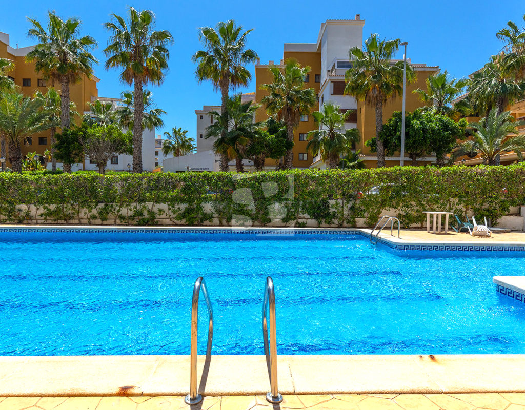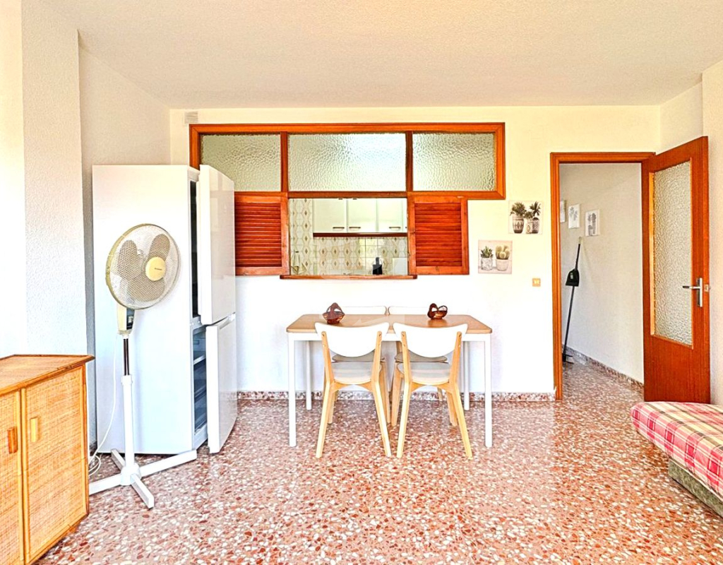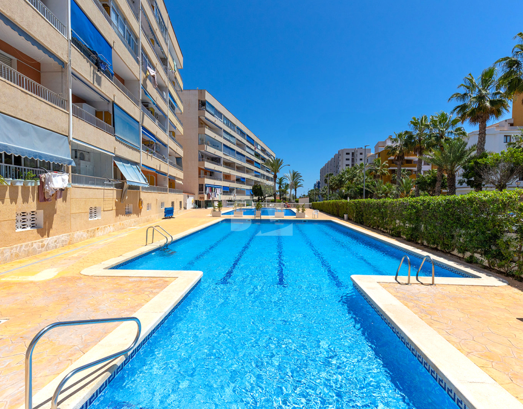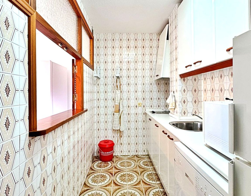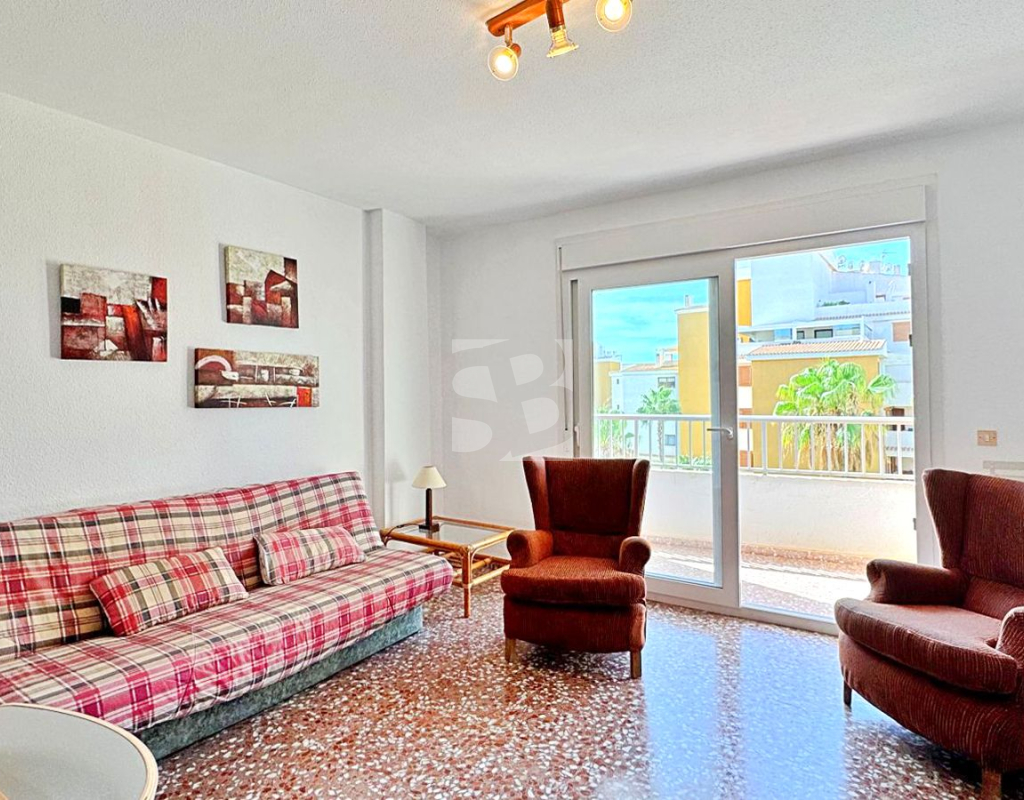This cozy 4th-floor apartment with 1 bedroom and 1 bathroom is in its original condition but well maintained, ready to move into and enjoy. With a built area of approximately 50 m², it offers a bright atmosphere thanks to its orientation and its terrace with side sea views. The living-dining room is spacious and functional, with direct access to the terrace, an ideal place to relax outdoors while enjoying the Mediterranean breeze. The independent kitchen keeps its original design, well distributed and connected to the living area through a serving hatch, which adds comfort to daily life. The bedroom includes a built-in wardrobe and receives plenty of natural light, while the bathroom maintains its classic original style. Edificio Lyon, located in the sought-after area of Rocío del Mar, offers a community swimming pool and parking area, providing comfort and tranquility. The urbanization is surrounded by all necessary services: supermarkets, restaurants, public transport, and leisure facilities. Its location is excellent, just a few minutes’ walk from Rocío del Mar and Punta Prima beaches, making this apartment an ideal option as a permanent residence, holiday home, or rental investment.