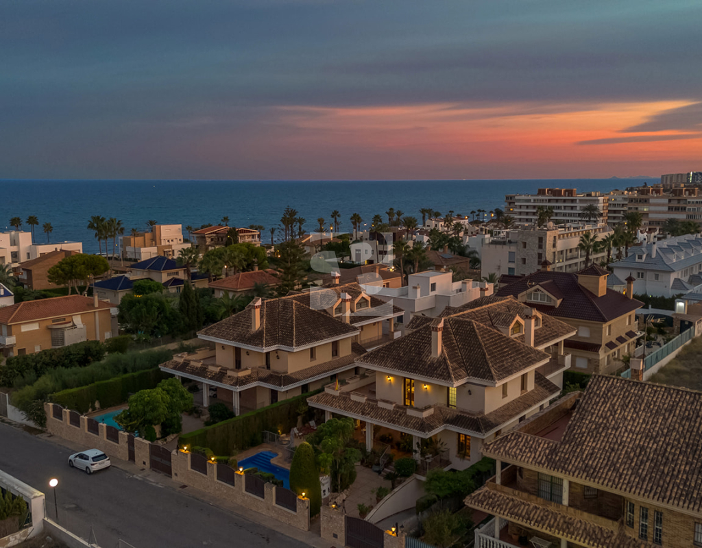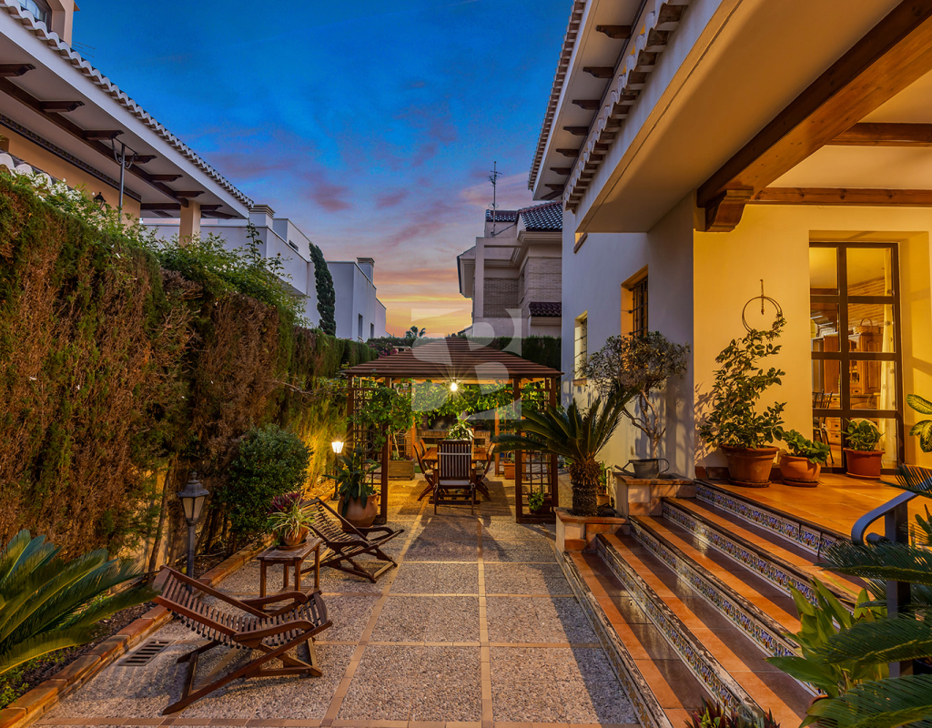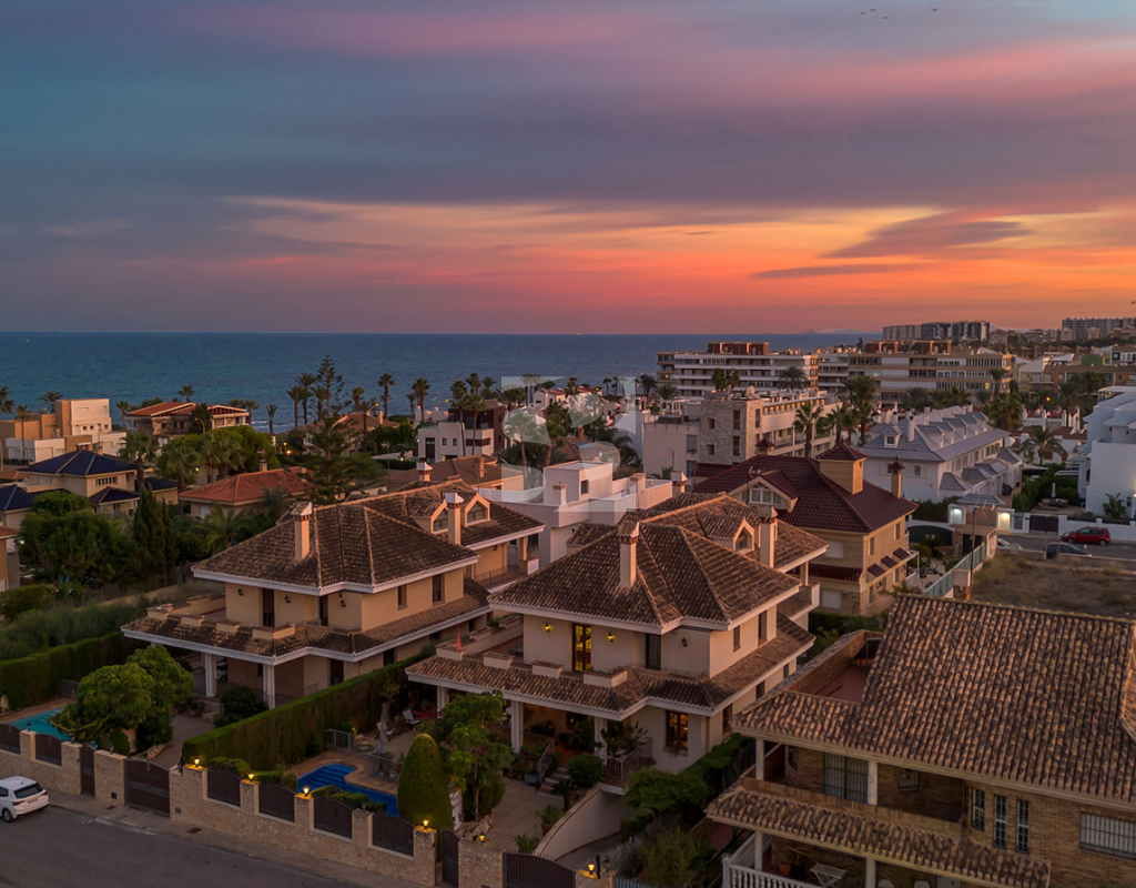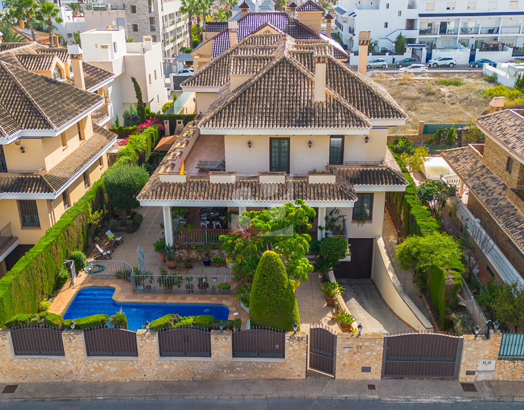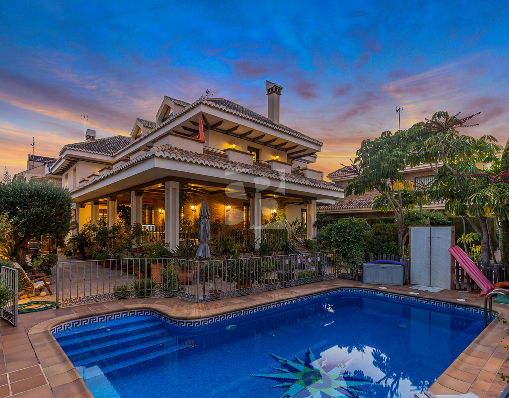 Discover this luxury detached villa for sale in La Veleta, Torrevieja (Costa Blanca South) — one of the most exclusive and sought-after areas for international buyers looking to buy a property near the sea in Spain. Built on a 700 m² plot, this stunning home offers more than 700 m² of constructed area across several levels, combining elegant Mediterranean architecture with the comfort of a modern home. The exterior features traditional tiled roofs, wooden beams, and spacious terraces surrounded by lush greenery. On the main floor, you’ll find a bright living room with fireplace, an elegant dining area, a charming music room, and a fully equipped kitchen finished in natural wood and granite. The interiors are warm and inviting, with handcrafted ceramic floors, ironwork details, and abundant natural light. Upstairs, the villa features large, sunlit bedrooms, including a master suite with private bathroom and terrace. The attic level offers a versatile open space, perfect as an office or leisure area. Outside, the property offers a private swimming pool, covered terraces, a built-in barbecue and wood oven, and a beautifully landscaped Mediterranean garden. The basement includes a spacious garage for multiple vehicles, storage, and a utility room. Located in the prestigious La Veleta residential area, this property enjoys peace, privacy, and proximity to the sea — just a few minutes from Torrevieja’s best beaches, international schools, supermarkets, and restaurants. A perfect opportunity for those seeking to buy a luxury villa in Spain — ideal as a permanent residence, holiday home, or exclusive investment on the Costa Blanca. Keywords: luxury villa for sale in La Veleta, villa for sale in Torrevieja, Costa Blanca property for sale, Spanish villa near the sea, detached villa with private pool, buy villa in Spain.