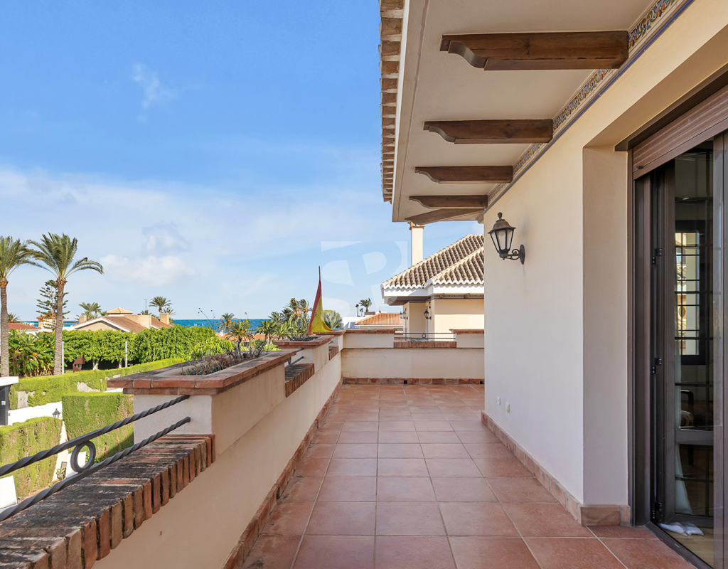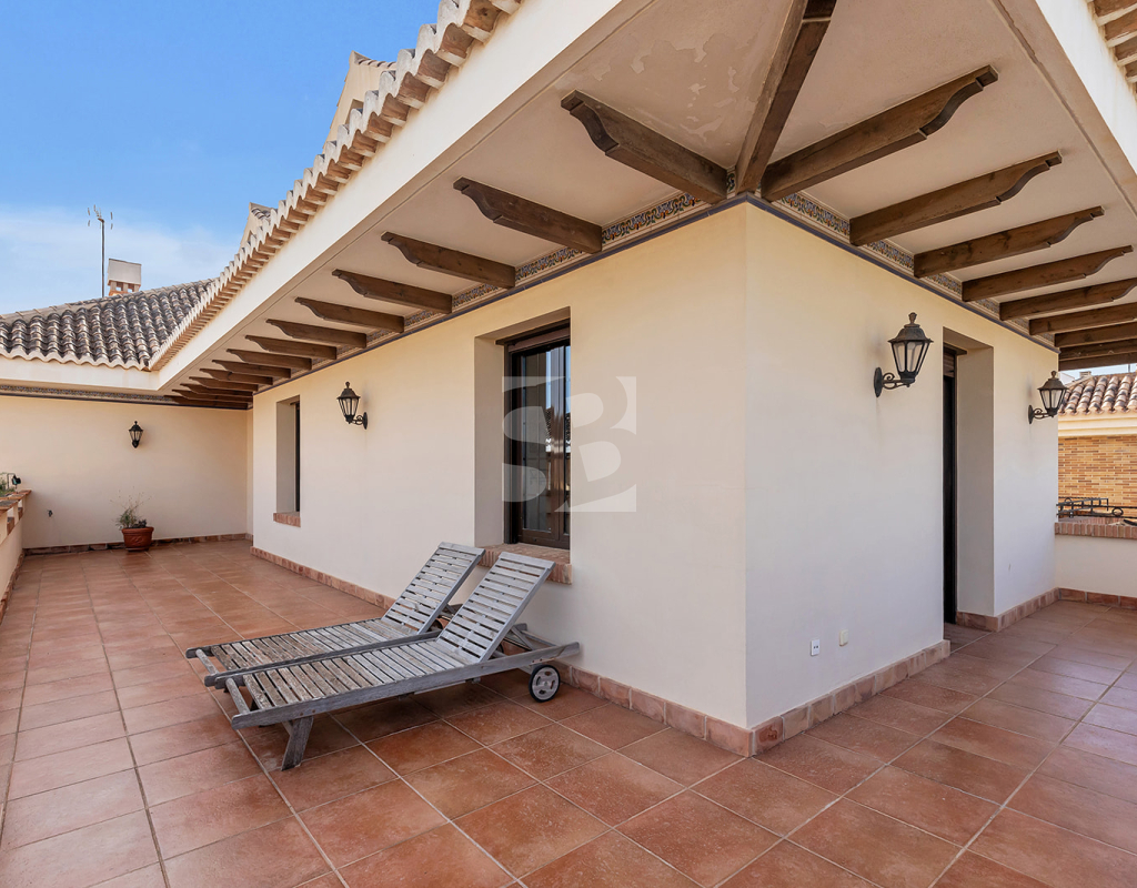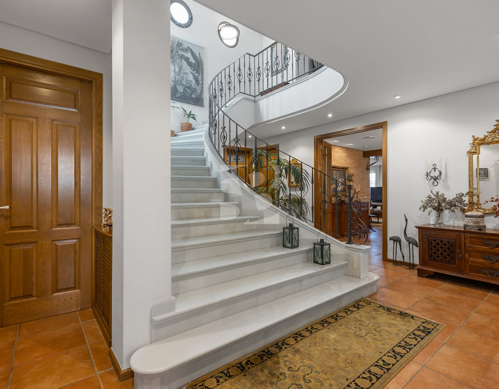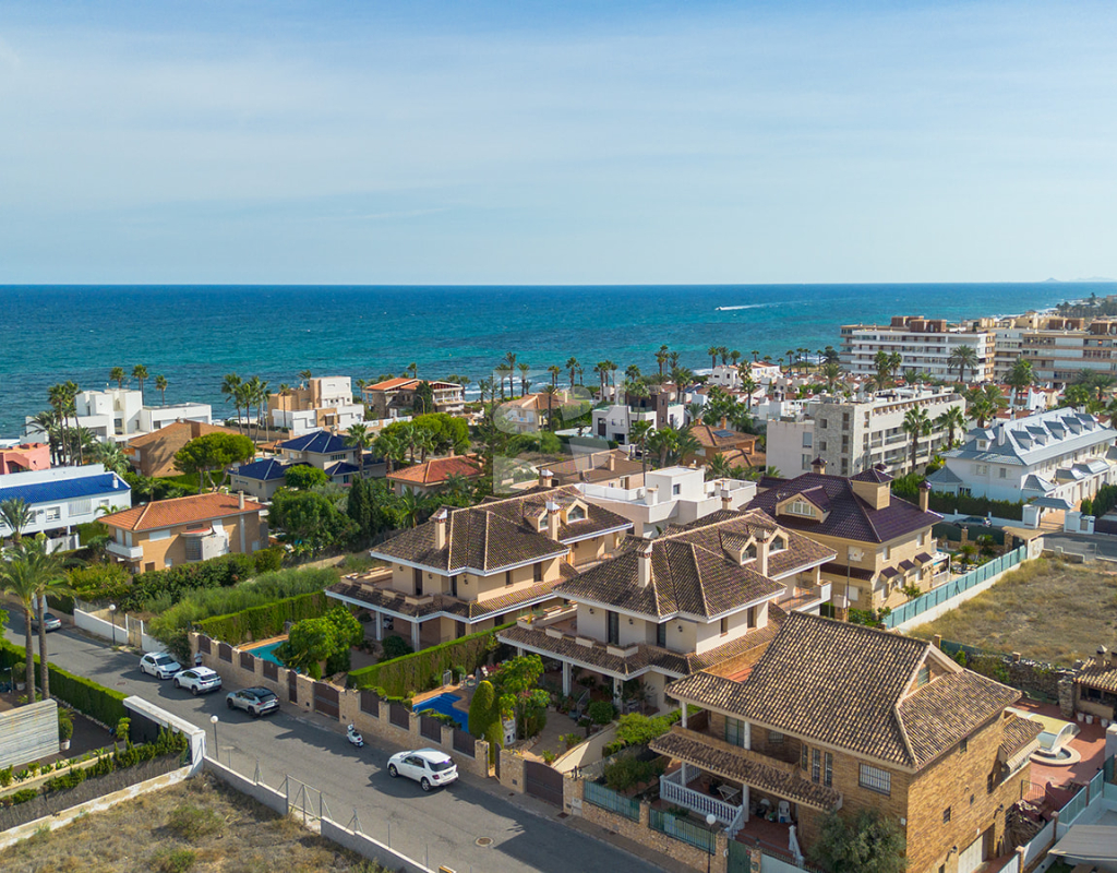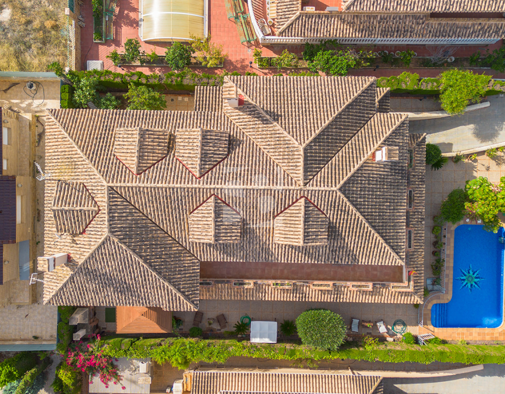 Discover this luxury detached villa for sale in La Veleta, Torrevieja (Costa Blanca South) — one of the most exclusive and sought-after areas for international buyers looking to buy a property near the sea in Spain. Built on a 700 m² plot, this stunning home offers more than 700 m² of constructed area across several levels, combining elegant Mediterranean architecture with the comfort of a modern home. The exterior features traditional tiled roofs, wooden beams, and spacious terraces surrounded by lush greenery. On the main floor, you’ll find a bright living room with fireplace, an elegant dining area, a charming music room, and a fully equipped kitchen finished in natural wood and granite. The interiors are warm and inviting, with handcrafted ceramic floors, ironwork details, and abundant natural light. Upstairs, the villa features large, sunlit bedrooms, including a master suite with private bathroom and terrace. The attic level offers a versatile open space, perfect as an office or leisure area. Outside, the property offers a private swimming pool, covered terraces, a built-in barbecue and wood oven, and a beautifully landscaped Mediterranean garden. The basement includes a spacious garage for multiple vehicles, storage, and a utility room. Located in the prestigious La Veleta residential area, this property enjoys peace, privacy, and proximity to the sea — just a few minutes from Torrevieja’s best beaches, international schools, supermarkets, and restaurants. A perfect opportunity for those seeking to buy a luxury villa in Spain — ideal as a permanent residence, holiday home, or exclusive investment on the Costa Blanca. Keywords: luxury villa for sale in La Veleta, villa for sale in Torrevieja, Costa Blanca property for sale, Spanish villa near the sea, detached villa with private pool, buy villa in Spain.