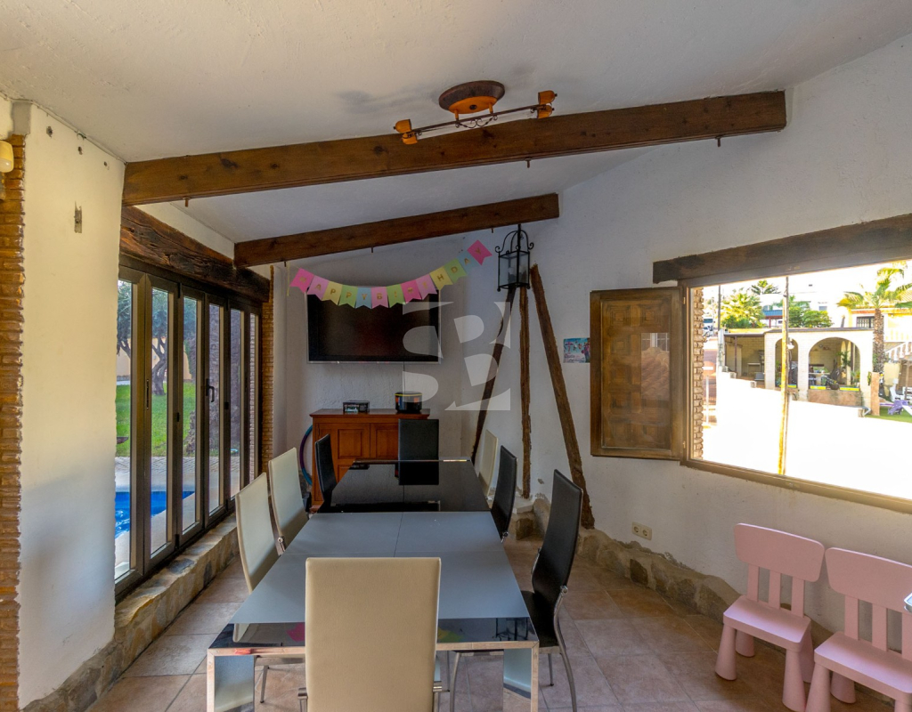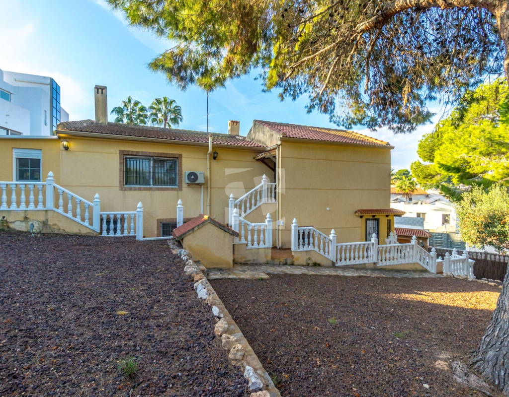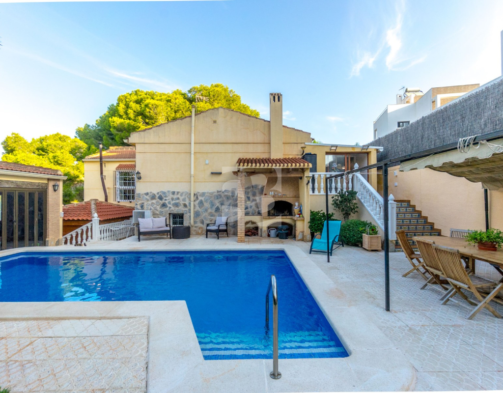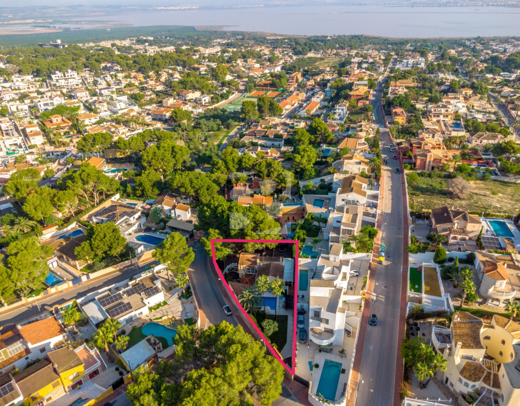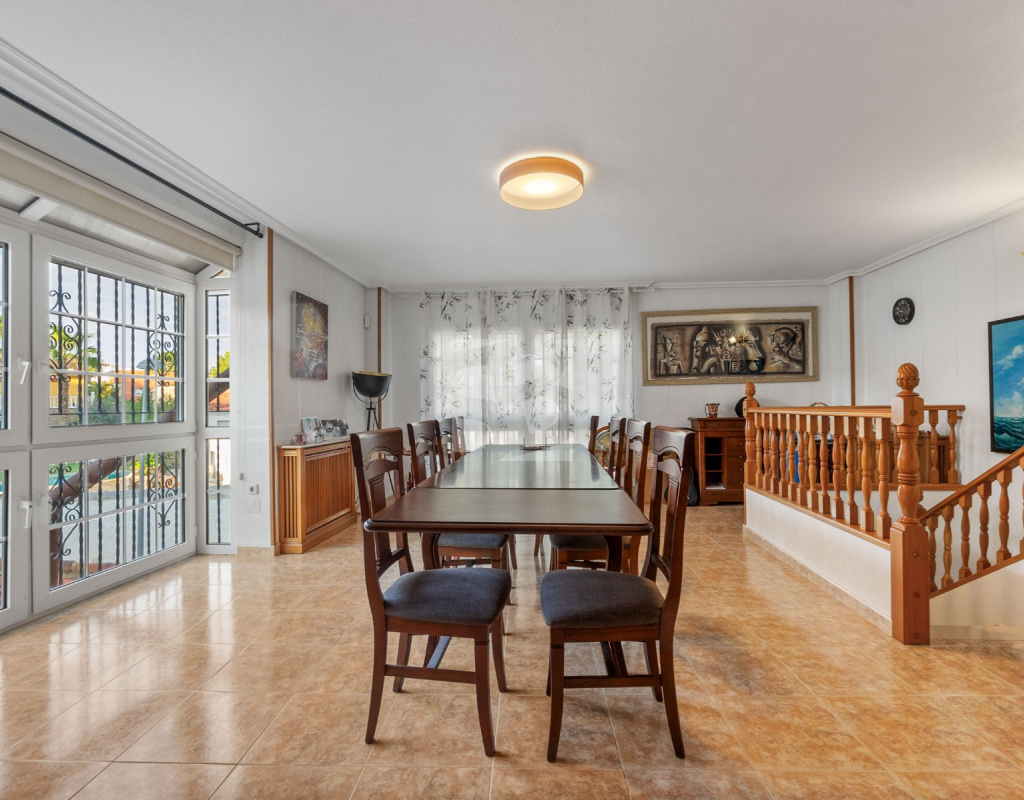 This detached villa, with a spacious plot, private pool, and wellness area, is ideal for year-round living. The property has a constructed area of approximately 200 m² and sits on a plot of over 800 m², located in the prestigious residential area of Los Balcones, a quiet and well-connected area of Torrevieja. It offers three bedrooms and three full bathrooms, as well as a bright living room and a separate kitchen. All rooms are equipped with radiator heating (oil-fired boiler) and air conditioning. Outside, the villa features a large garden with a private pool, a glazed terrace, and a sauna area, perfect for relaxation and comfort. It also has a closed garage with space for two vehicles.