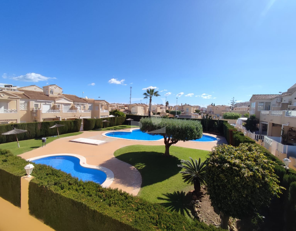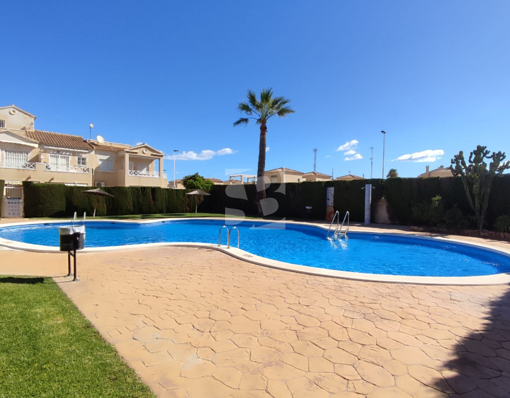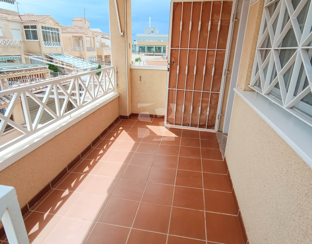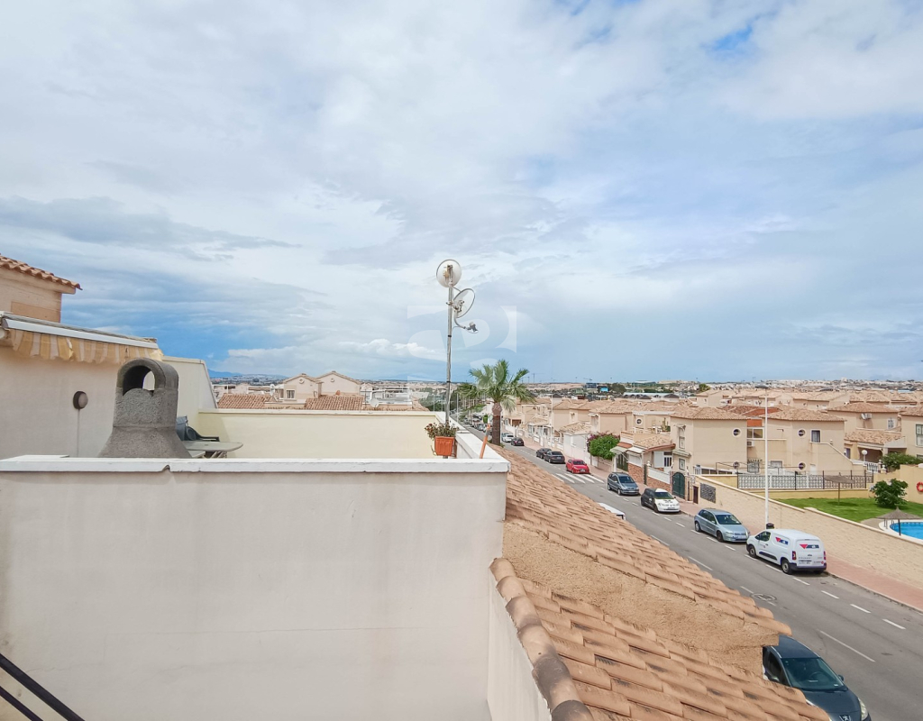 We offer this top-floor bungalow with a pool and solarium in Torrevieja, within walking distance of all amenities, 1 km from the sea and a few meters from the Habaneras/Carrefour shopping center.