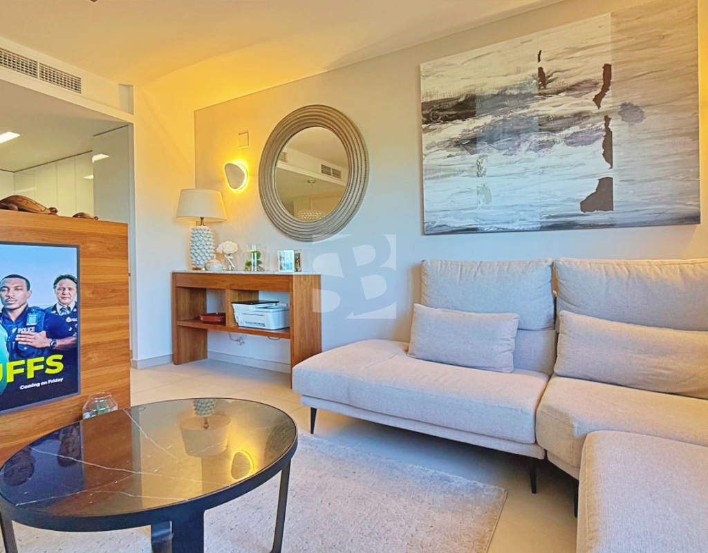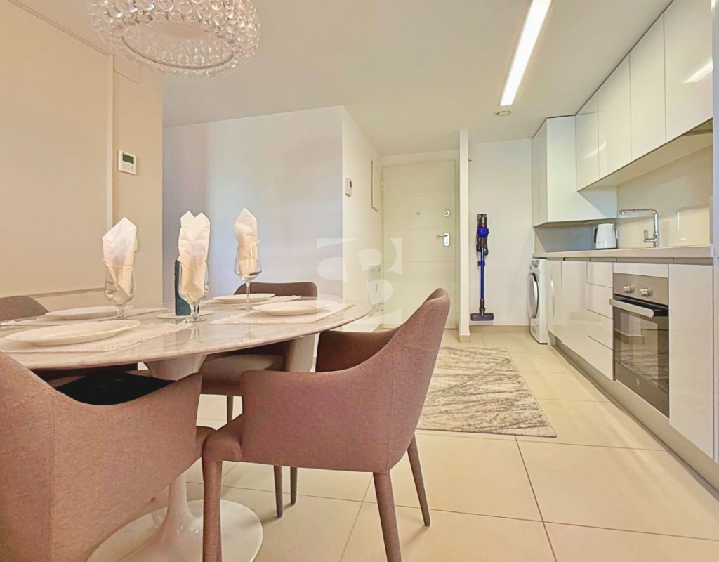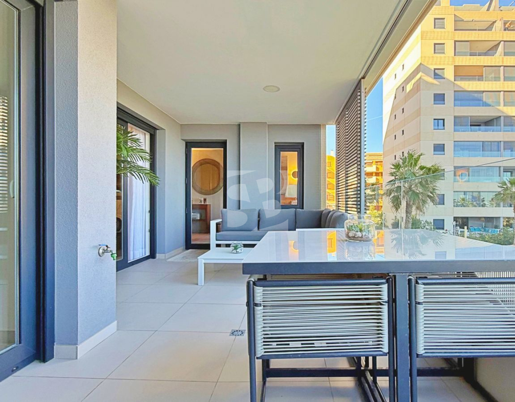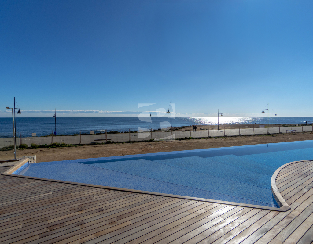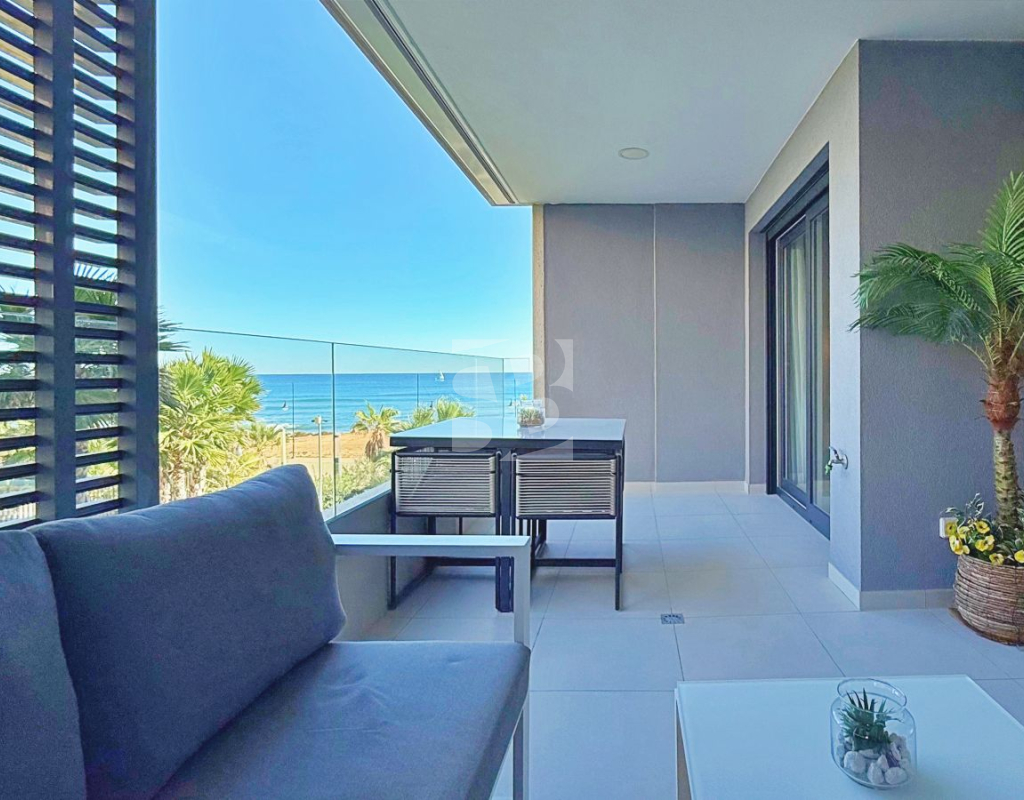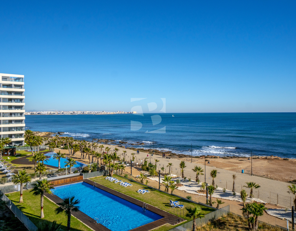 This elegant 2-bedroom, 2-bathroom apartment is located frontline, offering stunning open sea views. Its modern and bright design creates a cozy and relaxing atmosphere, ideal both for year-round living and for enjoying holiday stays. The apartment is sold fully furnished, equipped with high-quality furniture in harmonious tones and wooden details that add warmth and style. The layout is functional and comfortable, with spacious and well-utilized areas. In the area, you will find pools, including a heated pool, and a paddle tennis court, perfect for enjoying leisure time and sports activities without leaving the complex. This property also includes underground parking and a private storage room, providing additional practicality to your living experience. Located in Punta Prima, one of the most sought-after areas of the Costa Blanca, the apartment offers a peaceful and safe environment, close to the beach, with easy access to supermarkets, restaurants, bars, and local services. The area is ideal for sea and nature lovers and is a short drive from shopping centers, golf courses, and other Costa Blanca attractions.