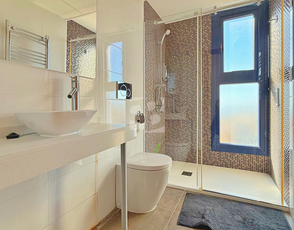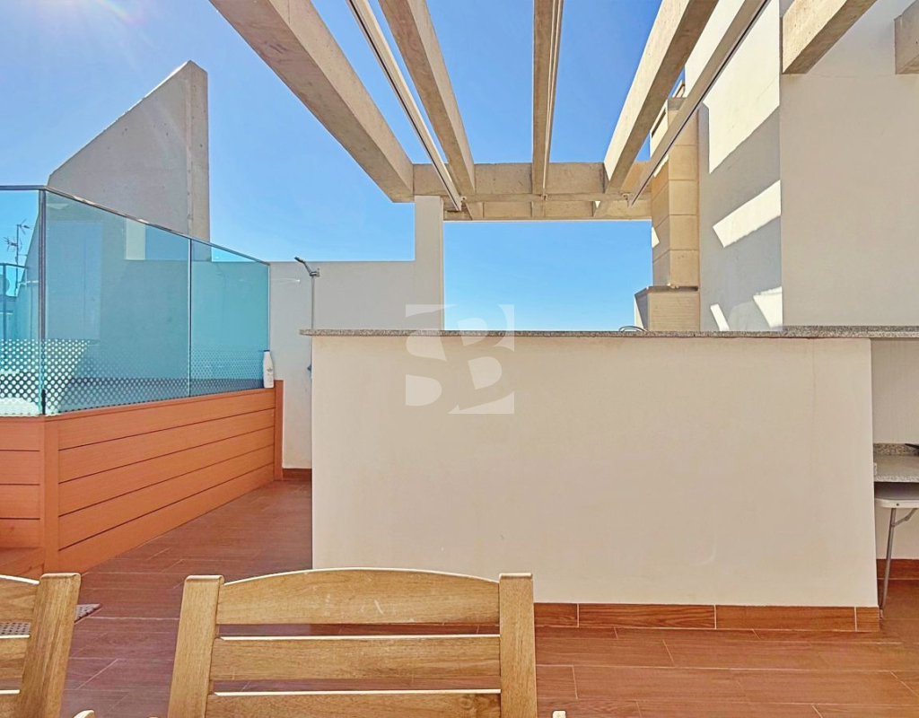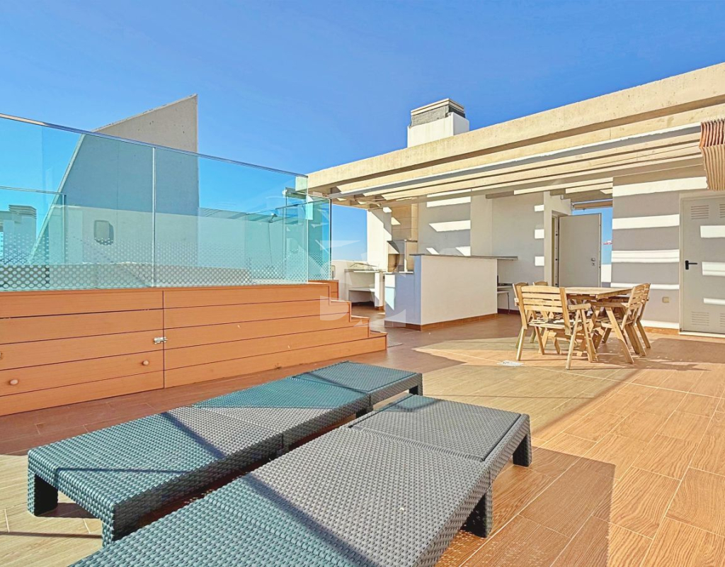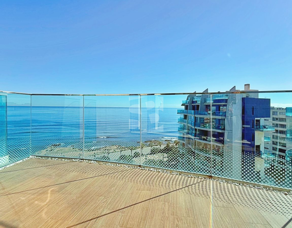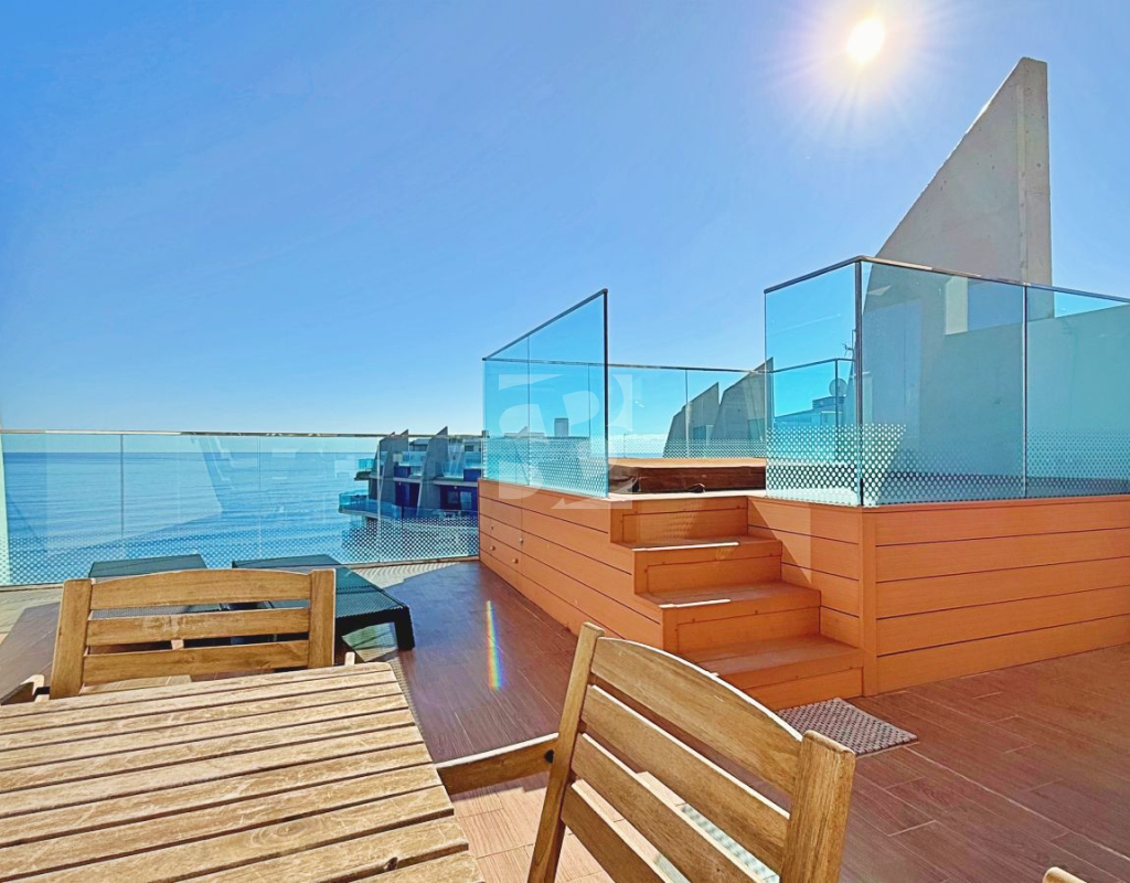 We present this stunning luxury penthouse located in the exclusive Sea Senses residential complex, one of the most sought-after developments in Punta Prima. With an unbeatable southeast orientation and panoramic views of the Mediterranean, this property offers a privileged seaside lifestyle. The property features 2 bedrooms and 2 bathrooms, designed in a modern and functional layout to ensure maximum comfort. From the bright living room, you access a charming 12 m² terrace, perfect for enjoying the sunrise and the sea breeze. The highlight of this penthouse is its spectacular private 83 m² solarium, equipped with a jacuzzi and relaxation areas—an authentic private oasis with endless sea views, ideal for enjoying the Mediterranean climate all year round. The property includes an underground parking space and a storage room, adding convenience and extra storage capacity. Sea Senses is one of the most prestigious residential complexes on the Costa Blanca South, offering top-class communal areas with infinity pools facing the sea, a gym, spa, jacuzzis, sports courts, and landscaped spaces. A setting designed to provide privacy, luxury, and well-being. Located in the renowned area of Punta Prima, this penthouse is just a few steps from the beach and surrounded by year-round services: supermarkets, restaurants, cafés, public transport, and leisure areas. It is also close to shopping centres such as Zenia Boulevard, prestigious golf courses, and main connections to Torrevieja and Orihuela Costa. A truly unique home, where exclusivity, comfort, and sea views come together to offer an unparalleled living experience.