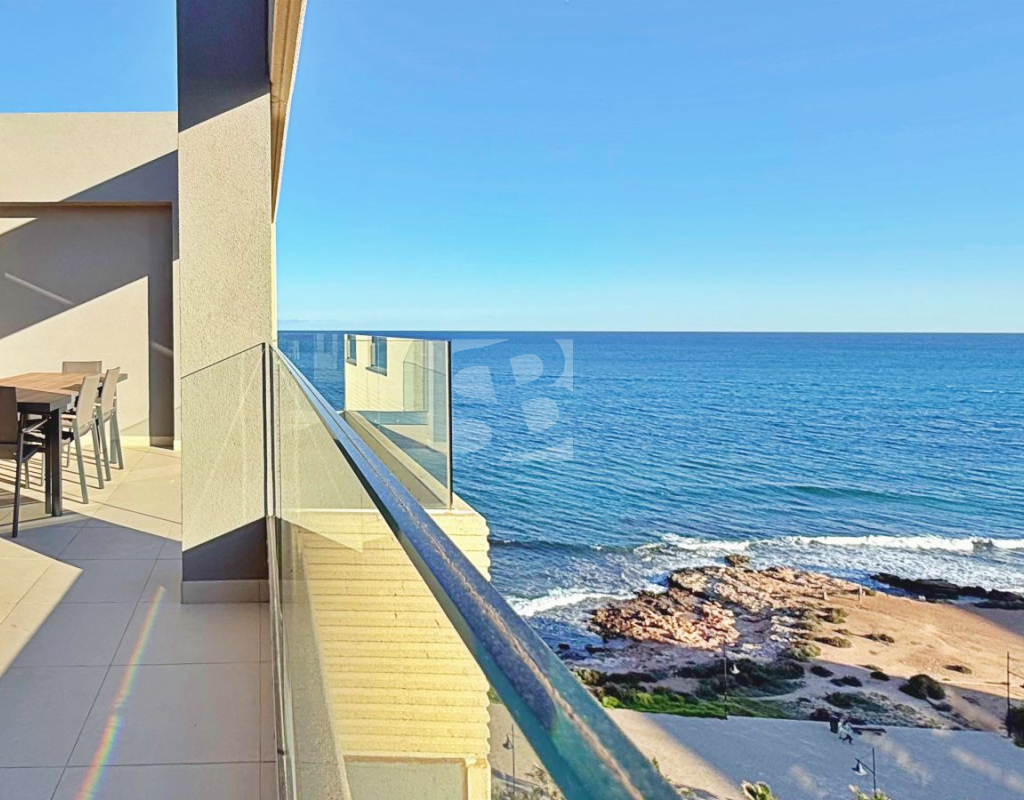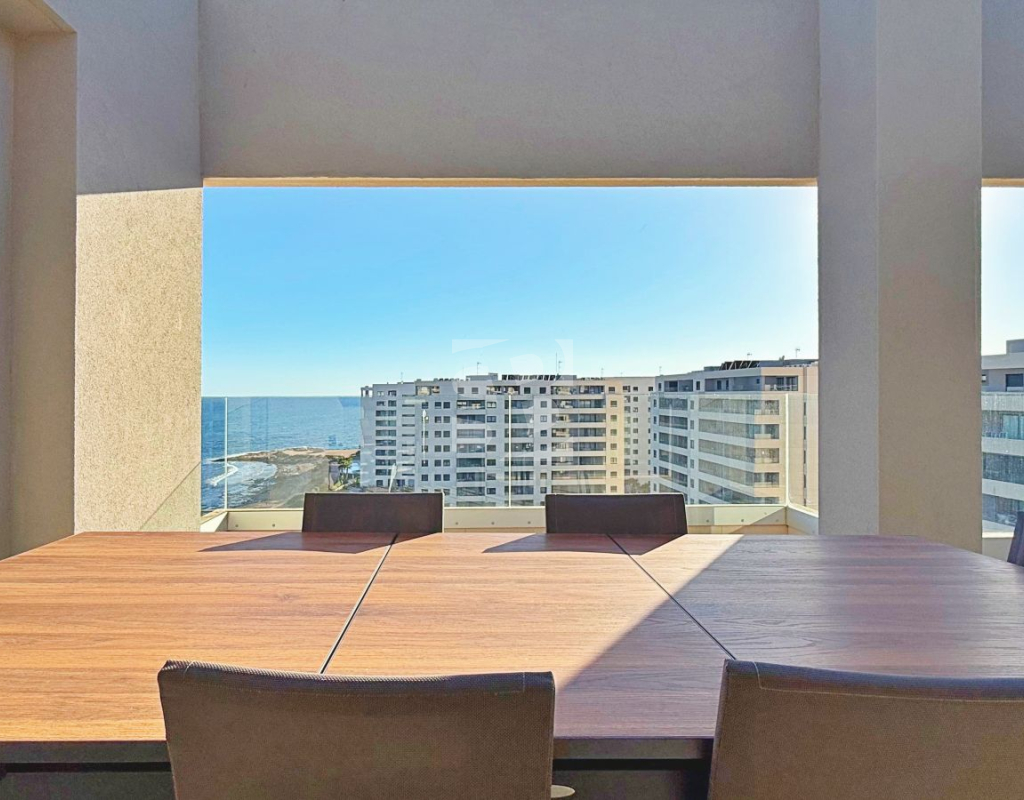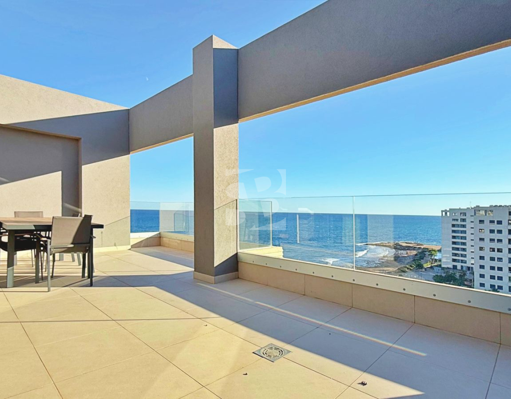 We present this magnificent 3-bedroom, 2-bathroom penthouse with 139 m², located in the prestigious Panorama Mar residential complex, one of the most modern and highly regarded developments in Punta Prima. Situated frontline, it offers stunning open views of the Mediterranean and a privileged setting for those seeking quality, comfort, and exclusivity by the sea. The property features a spacious and bright 28 m² south-facing terrace, perfect for enjoying the sun all day, the sea breeze, and unbeatable panoramic views. The interior layout is modern and functional, with generous rooms filled with natural light, designed to maximize comfort. The penthouse includes an underground parking space and a storage room, providing additional convenience and extra storage. Panorama Mar is a modern frontline complex that stands out for its large swimming pools, including a heated pool, landscaped areas, and relaxation zones with sea views. It offers an exclusive, secure, and well-maintained environment, ideal for enjoying the Mediterranean lifestyle all year round. Located in one of the most privileged areas of the Costa Blanca, Punta Prima combines tranquility and convenience. The property is just a few steps from the beach and surrounded by restaurants, supermarkets, and leisure options, while being very close to Zenia Boulevard and several prestigious golf courses.