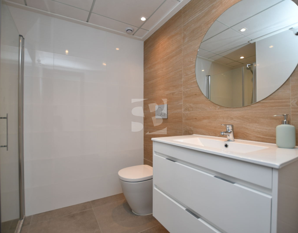 This complex comprises approximately 68 bungalows, available on the ground or upper floors. Currently, we are offering the first 16 bungalows in the first phase. Each bungalow features two bedrooms, two bathrooms (one en suite), an American style kitchen, and a living/dining area. Adding a third bedroom is available for an additional €7,800. This will involve installing the bedroom to the existing kitchen space, and converting the kitchen into an open-plan kitchen/living room (photos for reference).