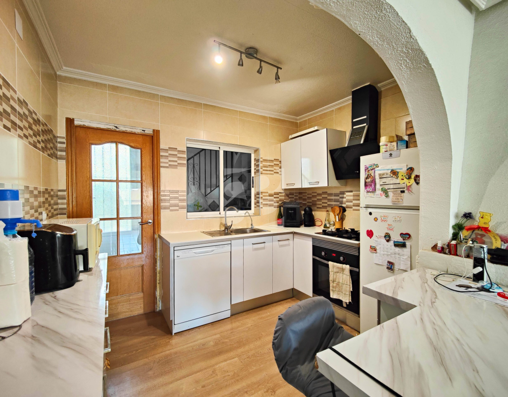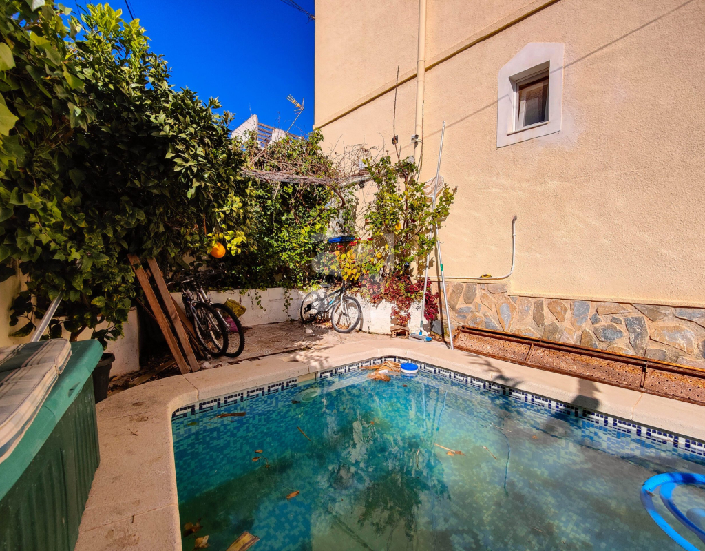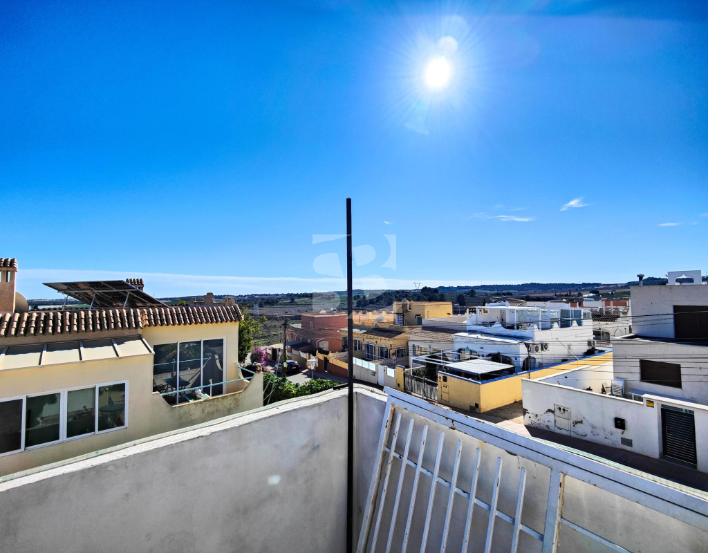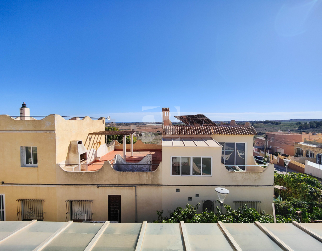 South facing semi detached house with private swimming pool for sale in San Miguel de Salinas This charming property is located in a tranquil neighborhood, just a short distance from schools, supermarkets, and the town center. The house offers a bright and spacious living room with a dining area, a fully equipped American-style kitchen, four comfortable bedrooms, a convenient laundry area, and a large solarium with breathtaking views of the surrounding landscape. Outside, you’ll find a generous private swimming pool, a barbecue area, and access to a large underbuild currently being used as a storage room. With its south-facing orientation, this home enjoys plenty of sunlight throughout the day. Do not miss the chance to buy this sunny south facing semi detached 4 bedroom house with private swimming pool for sale in San Miguel de Salinas.