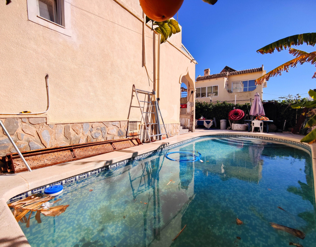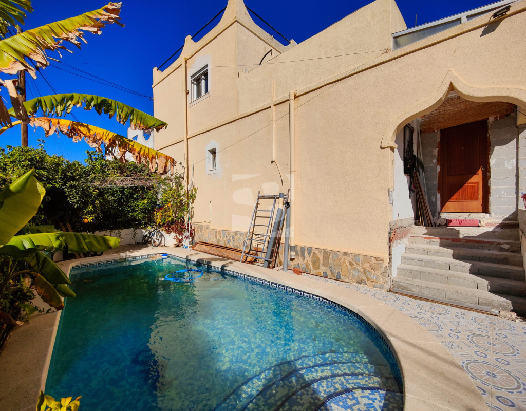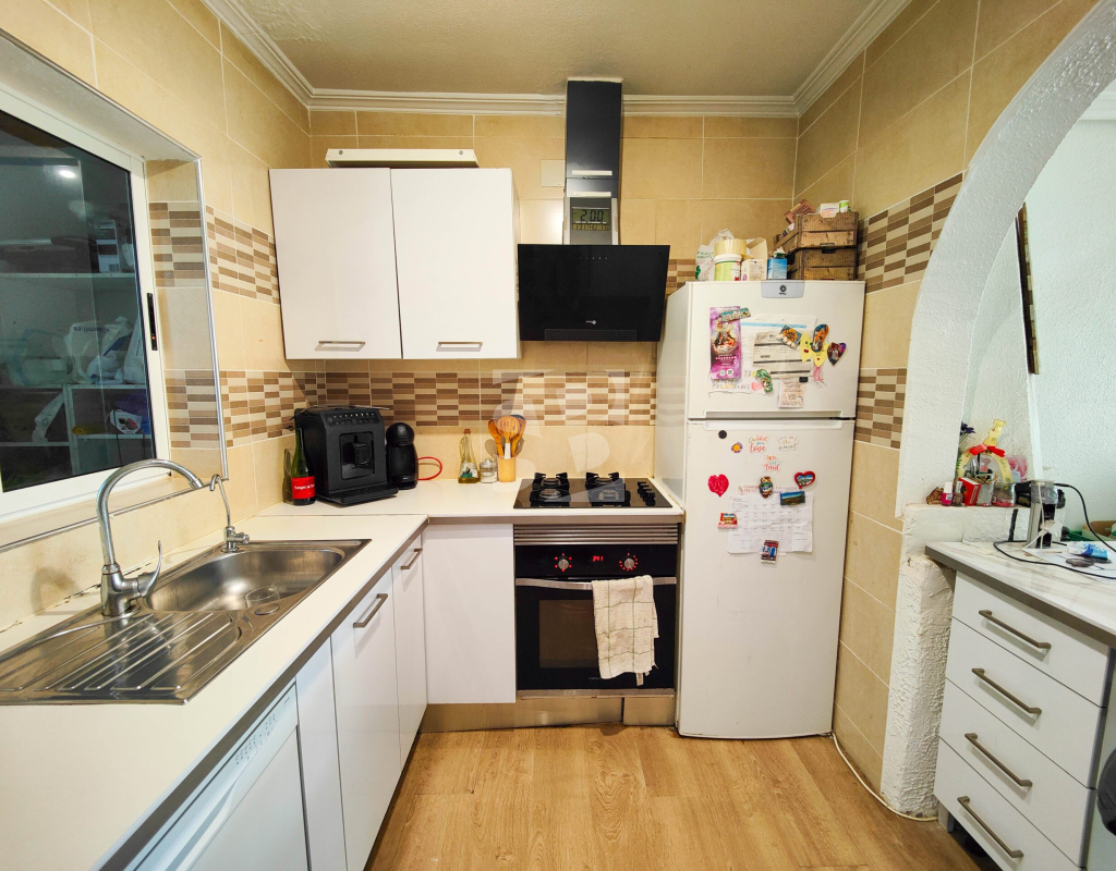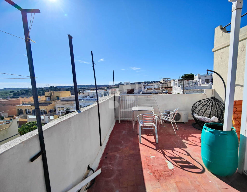 South facing semi detached house with private swimming pool for sale in San Miguel de Salinas This charming property is located in a tranquil neighborhood, just a short distance from schools, supermarkets, and the town center. The house offers a bright and spacious living room with a dining area, a fully equipped American-style kitchen, four comfortable bedrooms, a convenient laundry area, and a large solarium with breathtaking views of the surrounding landscape. Outside, you’ll find a generous private swimming pool, a barbecue area, and access to a large underbuild currently being used as a storage room. With its south-facing orientation, this home enjoys plenty of sunlight throughout the day. Do not miss the chance to buy this sunny south facing semi detached 4 bedroom house with private swimming pool for sale in San Miguel de Salinas.