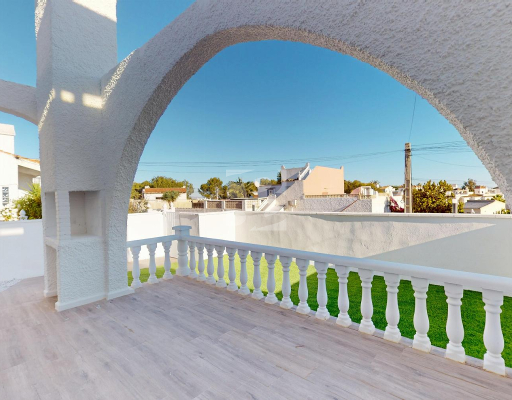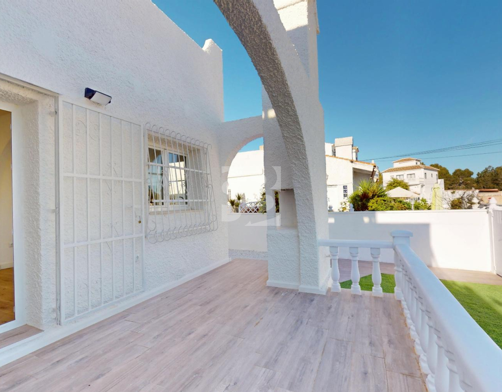 Discover an exceptional opportunity in Blue Lagoon a fully renovated bungalow, ready to move into, where Mediterranean charm and contemporary design meet in a prime location. Priced at €199,000, this property is an ideal choice both for living and for investment.Main features of the property202 m² plot with 147 m² of private garden58 m² built area48 m² private solarium with artificial grass and heather fencingPossibility to install a private swimming poolWood-effect laminate flooring2 bedrooms1 fully renovated bathroom with shower and screenNew kitchen fully equipped with appliances (washing machine and dishwasher)This bungalow has been carefully renovated to offer a turnkey home, balancing functionality, style, and warmth. The spacious garden invites you to enjoy outdoor living, while the solarium becomes a true private oasis for relaxation or social gatherings. very close to two golf courses, Villamartín Shopping Centre, and well-known leisure spots such as Marimba Blue Pool Lounge Bar and the iconic Greenlands Blue Lagoon.IBI 144 €COMUNIDAD 199 € APROX AL AÑOA property designed for those seeking comfort, quality living, and a solid investment from day one.
