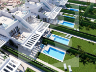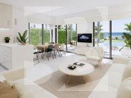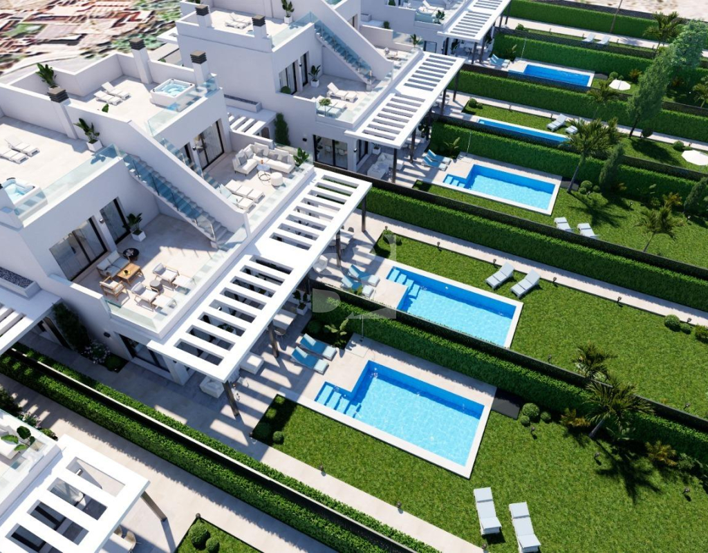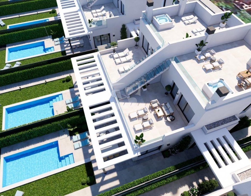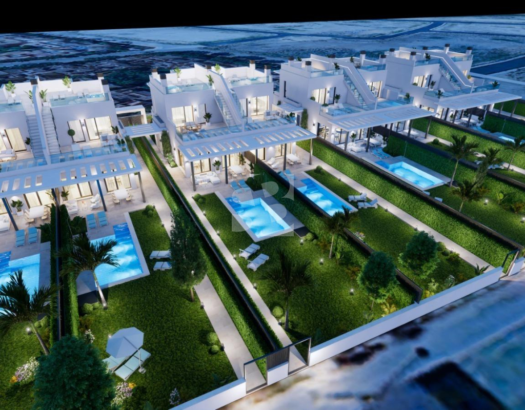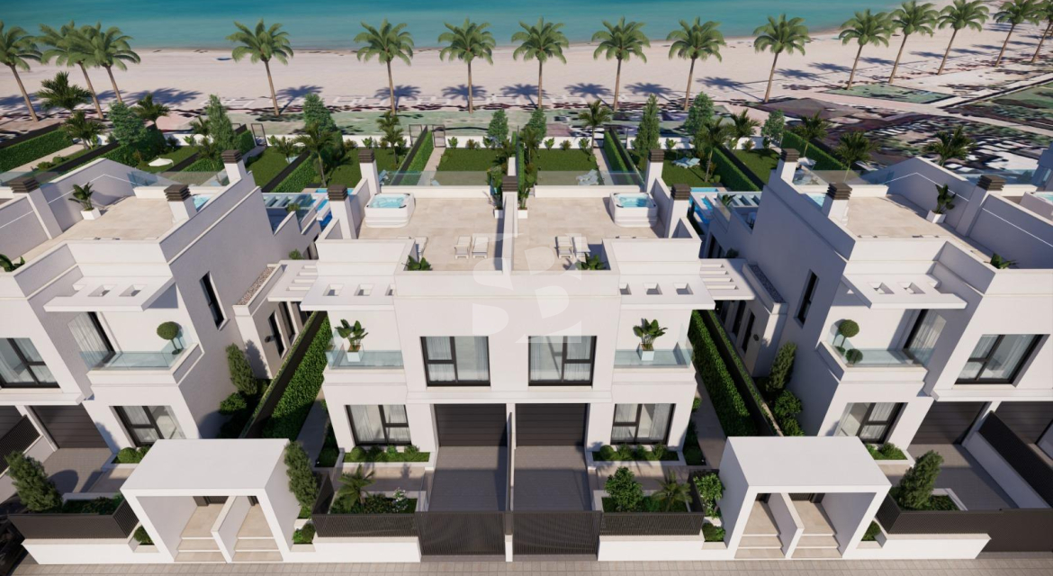 Villas de luxe en construction neuve au bord de l'eau à Los Alcázares Découvrez le summum de la vie méditerranéenne avec ce projet résidentiel exclusif, comprenant neuf villas contemporaines situées directement sur le front de mer dans la belle ville côtière de Los Alcázares, en Murcie. Situées dans le quartier recherché de Nueva Ribera, ces villas sont conçues pour le luxe, l'intimité et la commodité, avec un accès proche aux terrains de golf, aux centres commerciaux et aux centres de transport. Chaque villa offre des finitions haut de gamme, une vue imprenable sur la mer et une piscine privée, ce qui en fait le choix idéal pour ceux qui recherchent une retraite côtière moderne. Situation privilégiée à Los Alcázares Niché à Los Alcázares, une charmante ville de la Costa Cálida espagnole, ce projet résidentiel jouit d'une situation enviable avec un accès direct à la promenade du front de mer. Ce quartier paisible allie la tranquillité de la vie en bord de mer à un accès facile aux commodités. Le centre-ville animé de Los Alcázares se trouve à seulement 2 km, tandis que l'aéroport international de Murcie n'est qu'à 35 km, ce qui facilite les déplacements. Le célèbre Roda Golf Club se trouve à 4 km, offrant des options de loisirs à proximité de la maison, et l'autoroute AP-7 permet d'accéder rapidement aux villes et attractions voisines. Villas exclusives dotées d'équipements haut de gamme Le projet comprend neuf villas au total : huit jumelées et une indépendante, chacune occupant des parcelles de plus de 300 mètres carrés. Ces propriétés spacieuses ont été conçues dans un souci d'élégance et de confort : Une piscine privée et un solarium : Chaque villa dispose d'une piscine privée d'eau salée et d'un solarium sur le toit équipé d'un jacuzzi, d'un éclairage LED ambiant et d'une pré-installation pour une cuisine extérieure - idéal pour se divertir tout en profitant de la vue sur la Mar Menor. Cuisine moderne et entièrement équipée : La cuisine comprend des appareils intégrés de Bosch, notamment un four, un micro-ondes, une table de cuisson à induction et une hotte aspirante. Le design épuré comprend une péninsule et des plans de travail en Silestone ou en porcelaine. Climatisation sophistiquée : Profitez d'un confort tout au long de l'année grâce à un système de climatisation par conduits à chaque étage, utilisant des unités performantes de Mitsubishi ou Daikin. Salles de bains élégantes : les salles de bains haut de gamme comprennent des meubles-lavabos suspendus, des receveurs de douche en résine et des écrans de douche intégrés. Conception économe en énergie : Chaque villa est dotée d'une isolation avancée, de fenêtres acoustiques à double vitrage Guardian Sun et d'un système de chauffage de l'eau Aerothermal pour une efficacité énergétique optimale. Caractéristiques de la maison intelligente : Les volets électriques, l'éclairage extérieur LED et la pré-installation d'une station de recharge pour véhicule électrique ajoutent à la commodité moderne. Communauté privée et sécurisée Situées au sein d'une communauté privée et clôturée, avec une sécurité 24h/24, ces villas offrent un accès direct à la promenade de la plage depuis chaque jardin, garantissant à la fois intimité et connectivité. Découvrez la vie côtière à Los Alcázares - programmez une visite dès aujourd'hui ! Profitez du luxe de la vie côtière à Los Alcázares. Avec la proximité du Roda Golf et des centres commerciaux à moins de 5 km, ces villas offrent un style de vie inégalé. Contactez-nous dès aujourd'hui pour planifier une visite et obtenir la propriété de vos rêves au bord de l'eau.