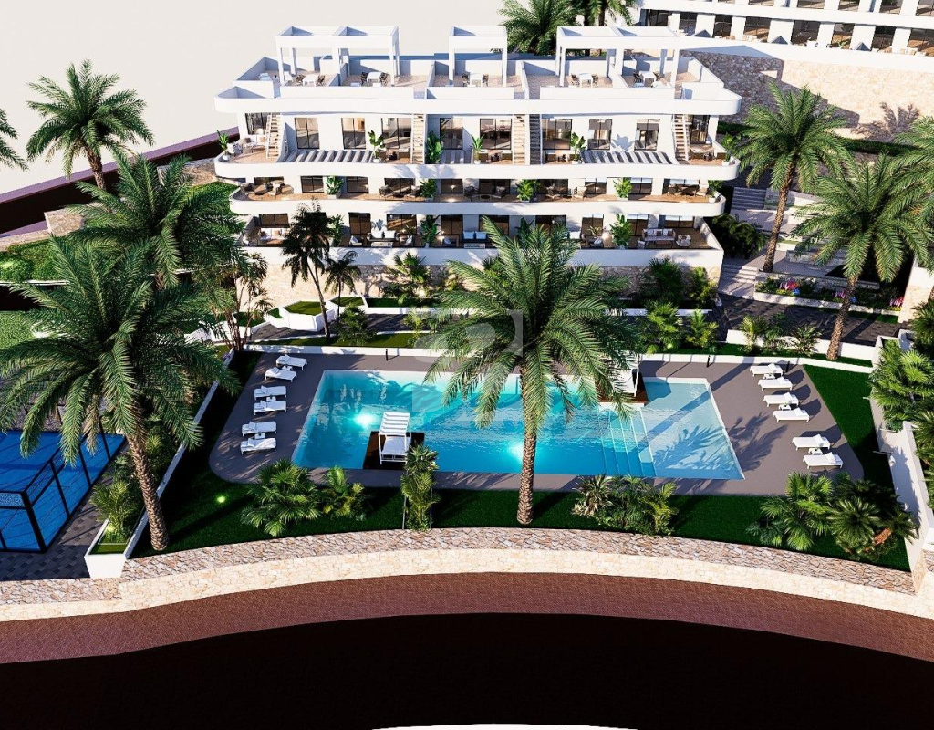 COMPLEXE RÉSIDENTIEL DE NOUVELLE CONSTRUCTION À FINESTRAT Nouveau complexe résidentiel à Balcon de Finestrat. Ce complexe d'appartements modernes avec 2 chambres, 2 salles de bains, cuisine ouverte sur le salon. Certains appartements auront une vue sur la mer. Les appartements du rez-de-chaussée disposent d'un jardin privé, ceux de l'étage intermédiaire d'une terrasse et ceux du dernier étage d'une terrasse et d'un solarium privé. Chaque propriété dispose d'un parking souterrain privé. Les propriétés ont accès à la zone commune avec 3 piscines, parking, paddle, aire de jeux, gymnastique suédoise. C'est une grande opportunité et un privilège de pouvoir vivre dans cet environnement de golf et de plage, proche de toutes les commodités de tous les services considérés comme l'un des meilleurs endroits pour investir. Finestrat est situé dans la région Marina Baixa de la Costa Blanca. Benidorm est à seulement cinq minutes en voiture des propriétés et offre tous les services dont vous avez besoin, y compris des magasins, des bars, des restaurants, des supermarchés, des banques, des pharmacies et plusieurs écoles privées internationales. Les plages de Levante, Poniente et Cala de Finestrat, qui s'étendent sur plus de 6 km, sont parmi les meilleures d'Europe et ont été récompensées par le drapeau bleu de l'Union européenne. Tous les services de loisirs tels que les parcs à thème Aqua Natura, Terra Mítica, Terra Natura, Aqualandia et Mundomar, les terrains de golf Sierra Cortina et Villaitana, la randonnée et l'escalade à Puig Campana, un cadre naturel incomparable, ou encore les sports nautiques. Distance de la mer 4 km, de l'aéroport 26 km et du golf 1km.