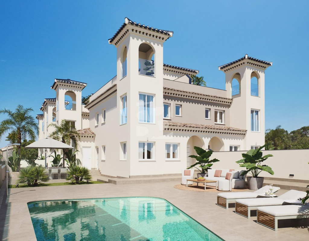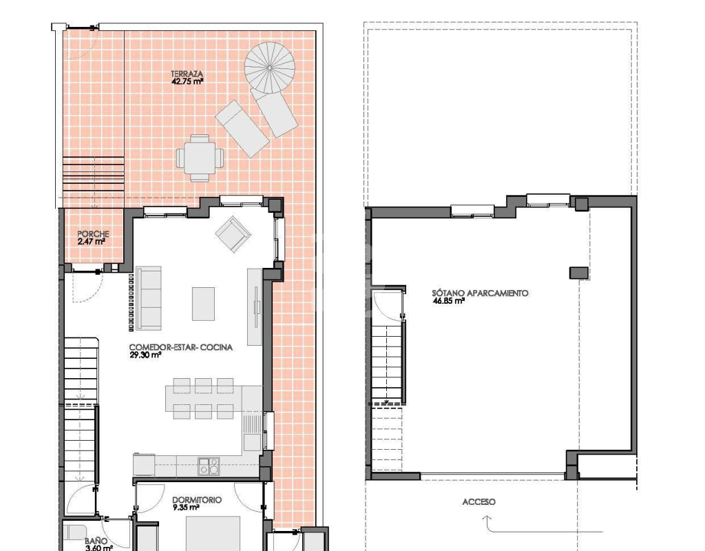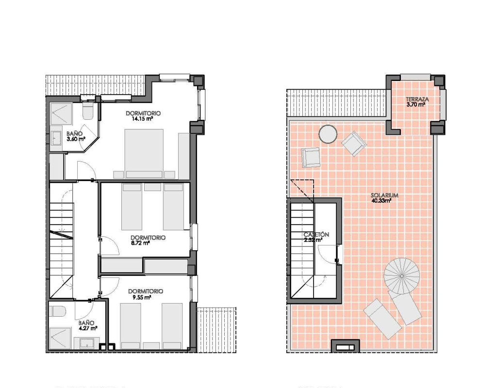 Villas jumelées et quads exclusifs à Bigastro, Alicante Maisons de style méditerranéen au cœur de la Vega Baja Ce nouveau complexe résidentiel à Bigastro, un charmant village de la Vega Baja, propose 8 quads et 2 villas jumelées conçues dans un élégant style méditerranéen. Situées dans un quartier calme et bien desservi, ces propriétés sont idéales pour ceux qui recherchent une combinaison parfaite de confort, d'intimité et de proximité de toutes les commodités. Conception spacieuse et fonctionnelle Chaque propriété a été conçue pour offrir espace et confort, avec 4 chambres et 3 salles de bains réparties sur 2 étages. Rez-de-chaussée : une chambre, une salle de bains, une cuisine ouverte sur le salon, une buanderie et un accès au jardin. A l'étage : 3 chambres, dont la chambre principale avec salle de bains attenante. Solarium privé de 40 m², idéal pour profiter du climat méditerranéen et des vues dégagées. Jardin privé avec possibilité de piscine, moyennant un supplément. Garage privé de plus de 60 m² en sous-sol, avec accès direct à la propriété. Bigastro : Tranquillité et connectivité Bigastro est une commune accueillante du sud d'Alicante, connue pour son environnement paisible et son excellente connexion avec les principales villes et plages de la Costa Blanca. Orihuela - 5 km (5 minutes en voiture). Plages de Guardamar - 25 km (15 minutes en voiture). Torrevieja - 30 km (25 minutes en voiture). Aéroport d'Alicante - 55 km (30 minutes en voiture). Centre commercial Zenia Boulevard - 30 km (25 minutes en voiture). La municipalité dispose de tous les services essentiels, tels que des supermarchés, des écoles, des centres sportifs et une riche offre gastronomique, ce qui en fait un endroit parfait pour une résidence permanente ou pour profiter d'une résidence secondaire. Découvrez votre nouvelle maison sur la Costa Blanca Si vous êtes à la recherche d'une maison moderne et spacieuse dans un endroit calme mais bien desservi, ces villas et quads à Bigastro sont le choix idéal. Contactez-nous dès aujourd'hui pour plus d'informations ou pour organiser une visite.