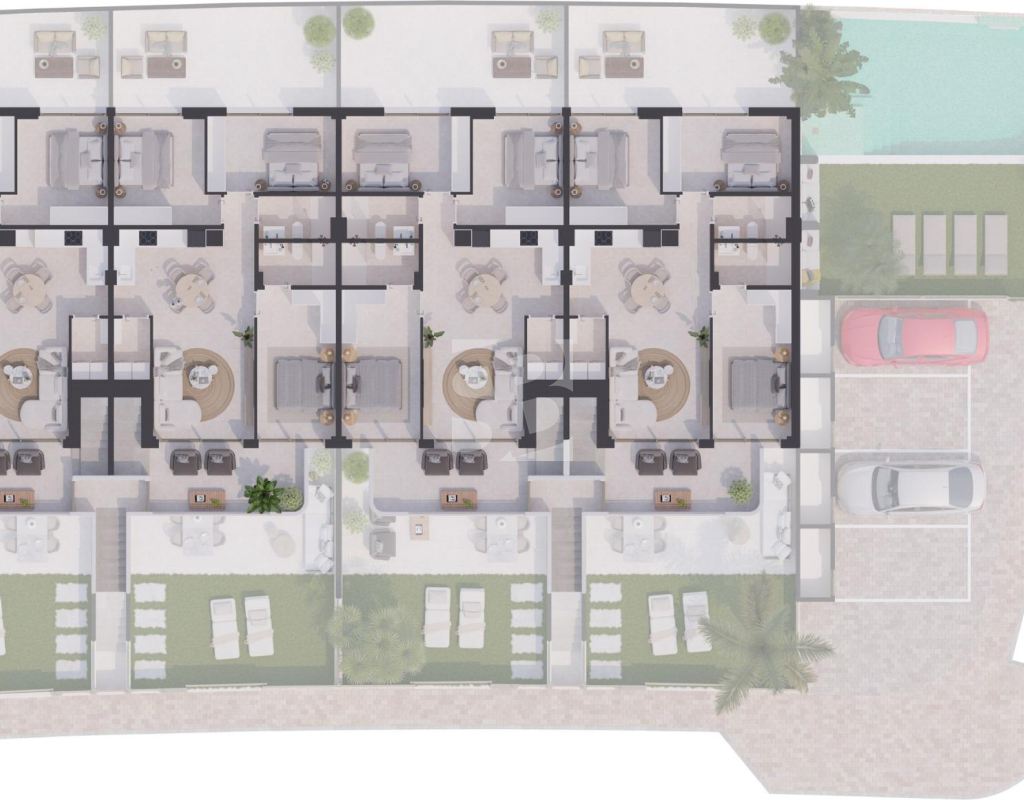 Bungalows nouvellement construits à San Pedro del Pinatar - Vie moderne au bord de la mer Complexe résidentiel exclusif de bungalows modernes Découvrez ce nouveau complexe résidentiel de 8 bungalows modernes à San Pedro del Pinatar, l'un des endroits les plus prisés de la Costa Cálida. Ces maisons contemporaines offrent 3 chambres à coucher, 2 salles de bains, une cuisine ouverte avec un espace de vie spacieux, des armoires encastrées et une terrasse privée. Vous avez le choix entre Bungalows au rez-de-chaussée avec jardin privé et parking sur le terrain. Des bungalows au dernier étage avec un solarium privé, idéal pour profiter du climat méditerranéen. Des caractéristiques de haute qualité dans chaque maison Chaque bungalow est doté de finitions haut de gamme et d'équipements modernes pour un maximum de confort : Unité de climatisation incluse. Système aérothermique pour une production d'eau chaude économe en énergie. Cuisine entièrement équipée avec des appareils BOSCH. Salles de bains entièrement équipées avec meubles, miroirs, parois de douche et chauffage électrique par le sol. Volets électriques sur toutes les fenêtres. Éclairage LED à l'intérieur et à l'extérieur de la propriété. Caractéristiques supplémentaires pour les bungalows du dernier étage : Pergola en aluminium pour l'ombre et le style. Cuisine d'été extérieure, idéale pour recevoir. Parking privé et local de rangement pour les vélos. Commodités de la communauté Les résidents de ce complexe exclusif apprécieront Un espace commun magnifiquement aménagé. Une piscine commune pour se détendre et se rafraîchir. Situation privilégiée à San Pedro del Pinatar San Pedro del Pinatar est une ville côtière privilégiée, située entre la Mar Menor et la mer Méditerranée. Elle est bien connue pour ses plages, ses bains de boue naturels et ses excellentes installations nautiques, y compris les marinas et les clubs nautiques. La région est un paradis pour les amateurs de sports nautiques et offre un style de vie méditerranéen détendu avec tous les services essentiels à proximité. San Pedro del Pinatar s'enorgueillit d'une communauté établie toute l'année, qui a accès à des installations sportives, à une piscine couverte et à une scène sociale animée, grâce au climat hivernal doux de la région. Le célèbre quartier de Lo Pagán s'est considérablement développé, offrant une gamme complète d'équipements, de boutiques, de restaurants et d'options de divertissement. Distances des principaux points d'intérêt Centre commercial Dos Mares - 5 minutes. Plages de Mar Menor - 10 minutes. Aéroport de Murcia-Corvera - 30 minutes. Aéroport d'Alicante - 1 heure. Investir dans la qualité et le style de vie Ces bungalows modernes offrent une opportunité exceptionnelle de devenir propriétaire d'une maison dans l'une des zones les plus recherchées de la Costa Cálida. Qu'il s'agisse d'une retraite de vacances, d'un investissement ou d'une résidence permanente, c'est votre chance d'embrasser le style de vie méditerranéen. Contactez-nous dès aujourd'hui pour planifier une visite et trouver la maison de vos rêves à San Pedro del Pinatar !