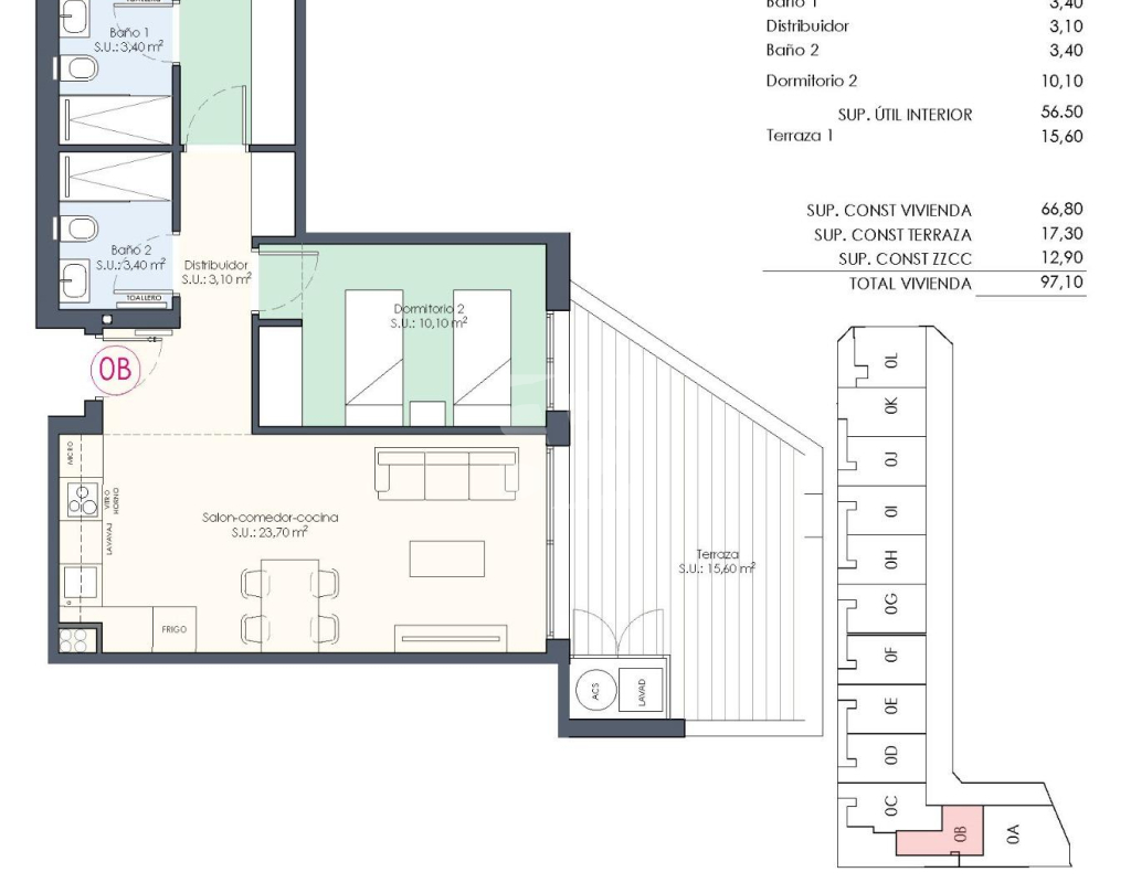 NOUVELLE CONSTRUCTION COMPLEXE RÉSIDENTIEL À BENIJOFAR Complexe résidentiel nouvellement construit dans la zone tranquille de Benijofar. Résidence composée de 35 appartements et penthouses avec 2, 3 et 4 chambres et 2 salles de bains, cuisine ouverte sur le salon, armoires encastrées, terrasses. Les penthouses disposent également d'un grand solarium privé où vous pouvez profiter des magnifiques couchers de soleil en été. Le complexe résidentiel de nouvelle construction dispose d'un grand espace vert avec une piscine. Une option parking souterrain et stockage à un coût supplémentaire. Benijofar est un joli village avec une charmante église et tous les services tels que les supermarchés, les pharmacies, les banques, les restaurants et le parc naturel situé très près des villas. Plusieurs terrains de golf se trouvent à proximité, ainsi que des parcs aquatiques à Rojales et Torrevieja. Les meilleures plages de Guardamar ne sont qu'à 10 minutes en voiture, avec plus de 11 km de dunes de sable blanc et des eaux cristallines. Benijófar est situé à quelques minutes de la N-332 et de l'AP-7. A 30 minutes de l'aéroport d'Alicante, 10 minutes des plages de Guardamar et Torrevieja.