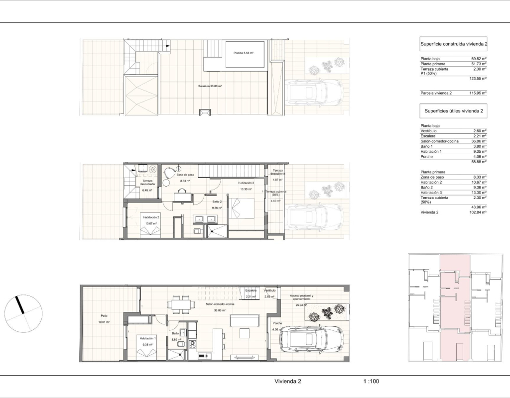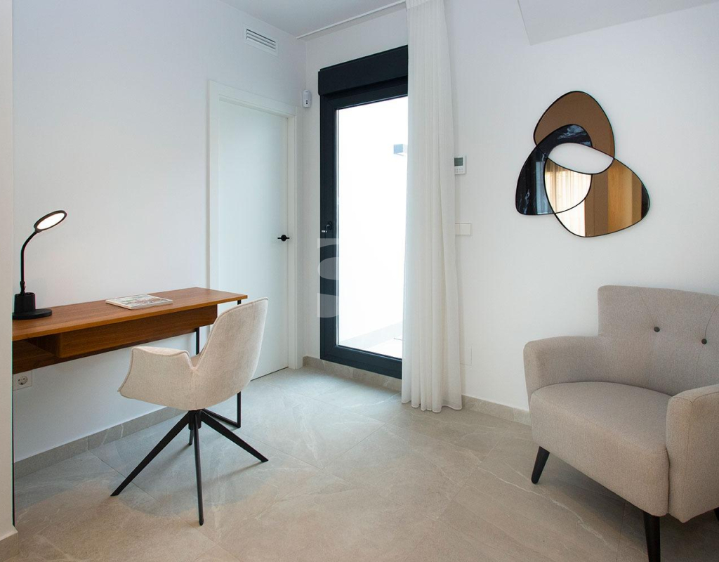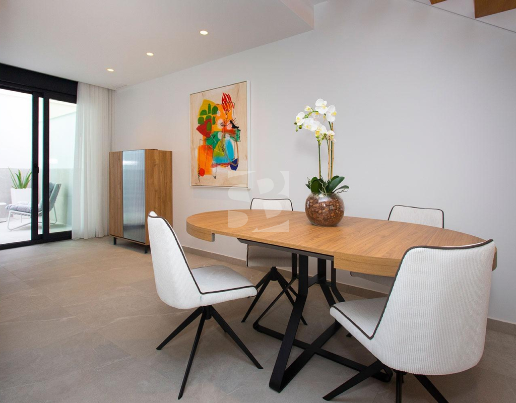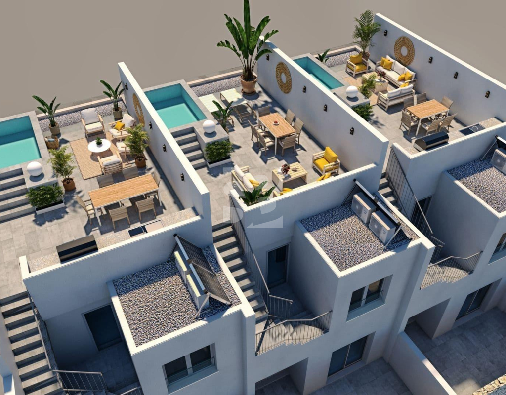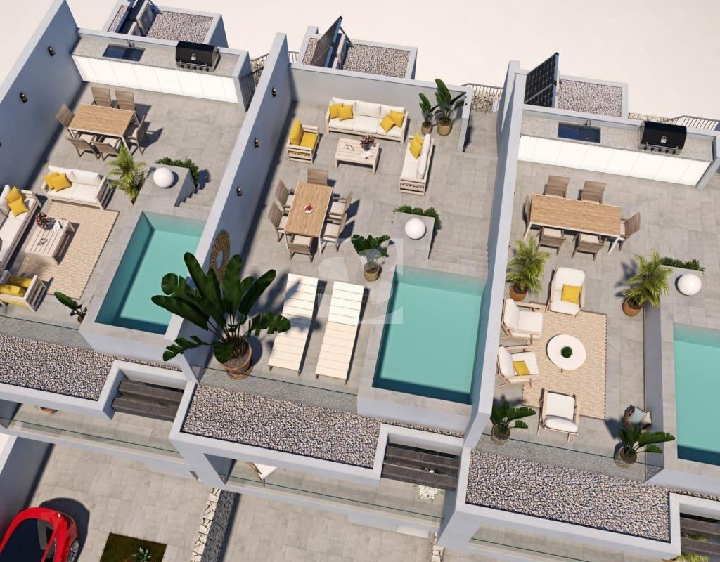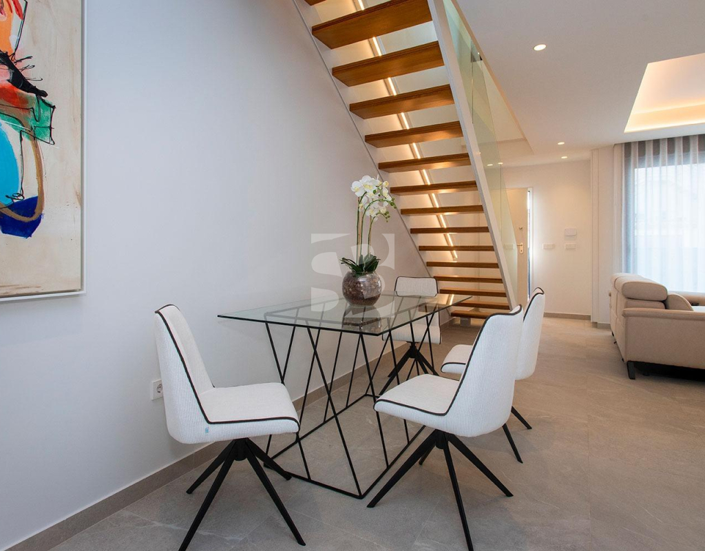 MAISONS DE VILLE NOUVELLEMENT CONSTRUITES À TORRE DE LA HORADADA JUSTE TERMINÉS : LIVRAISON IMMÉDIATE !! Ce projet de construction neuve se distingue par son design extérieur, une combinaison de lignes pures et d'éléments enduits, qui donnent un style unique, moderne et élégant à cette maison de bord de mer. Avec une orientation sud-est et située dans une zone résidentielle établie, c'est une maison idéale pour profiter de la vie méditerranéenne. Sa distribution intérieure mérite également une attention particulière, des détails qui ont été soigneusement pensés pour offrir un maximum de confort à ses propriétaires et améliorer l'esthétique de l'espace. Ainsi, au rez-de-chaussée, un espace "ouvert et lumineux" a été créé où le salon, la salle à manger et la cuisine sont reliés par des portes coulissantes à un patio intérieur permettant de profiter de l'extérieur tout au long de l'année. La simplicité est la clé de cette collection. Encore une fois, avec une simple structure métallique blanche et une rampe en verre, l'escalier devient le complément parfait pour maintenir la luminosité et l'espace de l'entrée. Une chambre avec accès au patio et une salle de bains complètent la distribution de cet étage. Cette maison de ville attend encore une partie très spéciale : son étage. En montant l'escalier, on accède à un espace de détente, antichambre du solarium : un coin confortable avec un coin lecture et un bureau. Ce palier multifonctionnel donne accès à deux chambres spacieuses, dont l'une avec terrasse privée, qui se partagent une élégante salle de bains de 10 m2. Torre de la Horadada est située au sud d'Alicante, dans un endroit magnifique sur la côte. Les belles plages de Torre de la Horadada et de Mil Palmeras ont du sable fin et une belle promenade. On y trouve de nombreux restaurants, bars et boutiques, ainsi que des sports nautiques, de la plongée et du snorkeling. La ville est bien desservie, à seulement 40 minutes des aéroports d'Alicante et de Murcias Corvera, avec de grands centres commerciaux et de nombreux terrains de golf, tous faciles d'accès.
