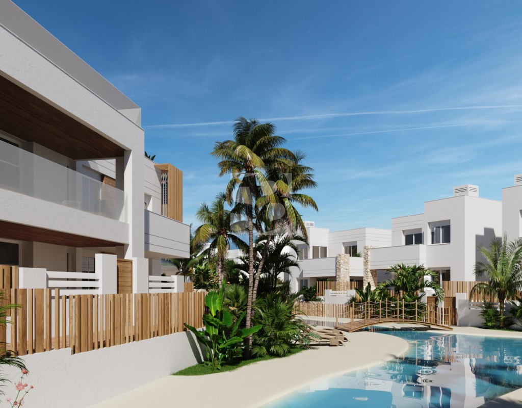 Villas et bungalows neufs à seulement 250 mètres de la plage à Mar de Pulpí Projet résidentiel exclusif avec villas et bungalows près de la mer Découvrez un nouveau projet exceptionnel situé à seulement 250 mètres de la plage de La Entrevista à Mar de Pulpí, Almería. Ce complexe résidentiel exclusif propose deux options de vie distinctes : 10 villas indépendantes et 8 bungalows, chacun conçu pour offrir des intérieurs spacieux et des espaces extérieurs de grande qualité. Situé dans l'une des zones les plus paisibles et pittoresques de la Costa de Almería, ce projet est idéal pour ceux qui recherchent une maison moderne et confortable près de la mer, entourée d'une beauté naturelle et des commodités essentielles. Villas de luxe avec garages en sous-sol et terrasses privées Les villas disposent de trois chambres spacieuses, chacune avec sa propre salle de bain. Au rez-de-chaussée, vous trouverez une chambre spacieuse, tandis que l'étage supérieur comprend deux autres chambres avec accès à des terrasses privées. Le garage en sous-sol, directement relié à la villa, offre de la place pour au moins deux véhicules et des vélos, avec un éclairage et une ventilation naturels, ainsi qu'un espace de rangement généreux. Bungalows élégants avec jardins privés ou solariums Choisissez entre des bungalows au rez-de-chaussée avec jardin privé ou des options au dernier étage avec solarium privé. Chaque bungalow comprend deux chambres, deux salles de bains et une piscine privée ou un jacuzzi. Ils sont également équipés d'ascenseurs, ce qui améliore l'accessibilité et le confort. Les chambres principales comprennent des dressings et de grandes armoires encastrées, tandis que les vastes terrasses avec coin bar rendent les moments de détente et de convivialité encore plus agréables. Confort, style et équipements haut de gamme Toutes les maisons du lotissement sont équipées de : Fenêtres à double vitrage avec protection solaire et rupture de pont thermique Chauffage électrique au sol dans toutes les salles de bains Climatisation (chaud et froid) Volets motorisés Salles de bains modernes avec meubles suspendus, miroirs et parois de douche Production d'eau chaude à haut rendement énergétique grâce à des systèmes aérothermiques La communauté résidentielle dispose également d'une piscine commune à plusieurs niveaux, offrant un espace partagé pour la détente et le plaisir. Emplacement privilégié sur la Costa de Almería Situé à seulement 250 m de la plage de sable et à 3 km de San Juan de los Terreros, les résidents peuvent profiter d'une gamme de commodités, notamment des supermarchés, des restaurants, des magasins et des services essentiels. Distances vers les principaux points d'intérêt : Plages de La Entrevista – 0,25 km San Juan de los Terreros – 3 km Parcours de golf Aguilón – 7 km Centre-ville et marina d'Águilas – 12 km Aéroport de Murcie-Corvera – 95 km Aéroport d'Almería – 115 km Assurez-vous la maison de vos rêves en bord de mer Que vous optiez pour une villa ou un bungalow, ce complexe résidentiel offre un mélange parfait entre qualité, emplacement et style de vie. Contactez-nous dès aujourd'hui pour obtenir plus d'informations ou pour organiser une visite. Votre maison idéale en bord de mer vous attend à Mar de Pulpí.