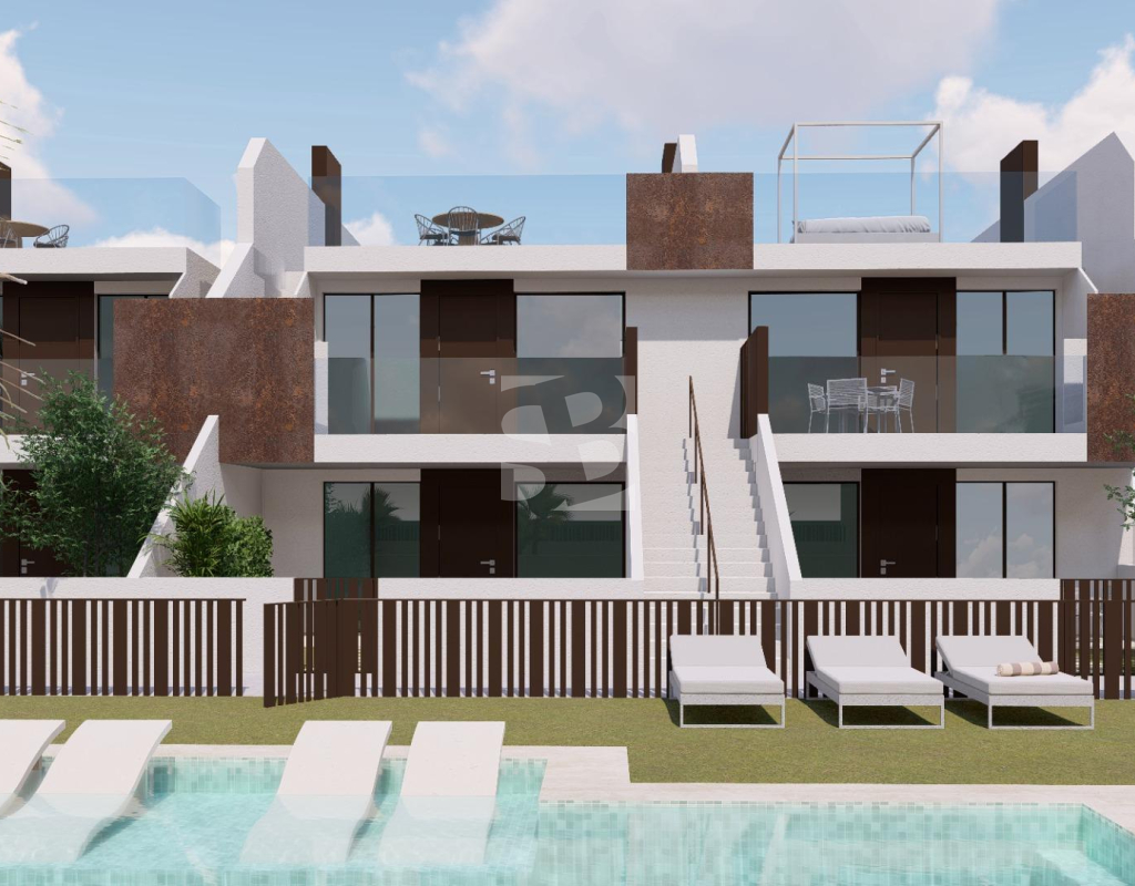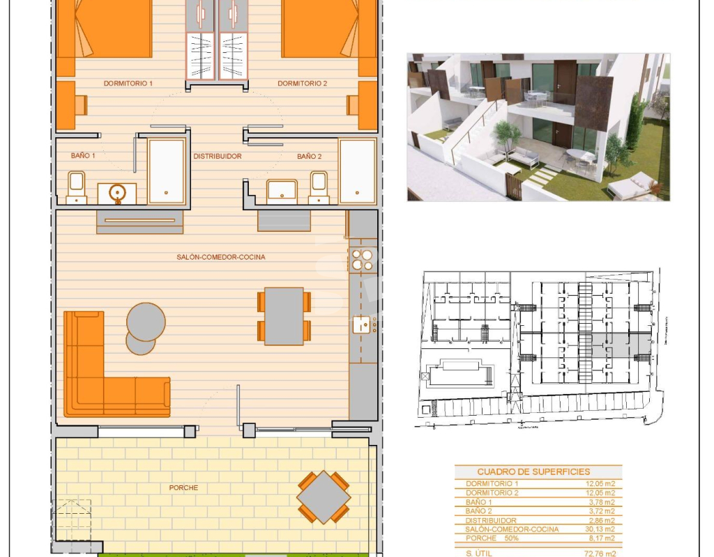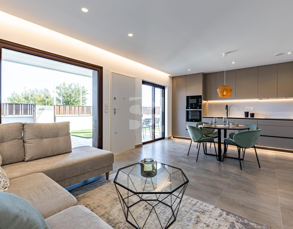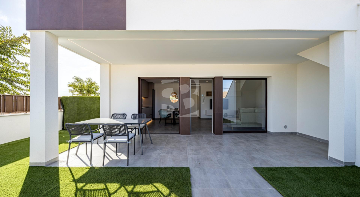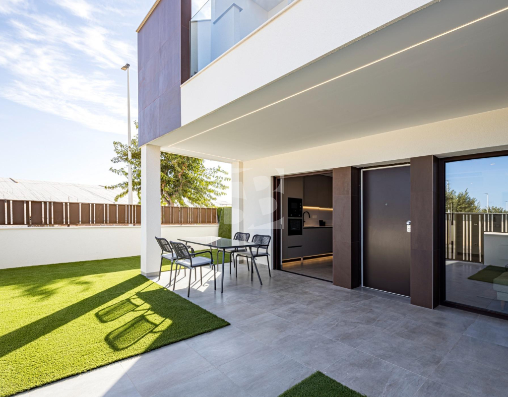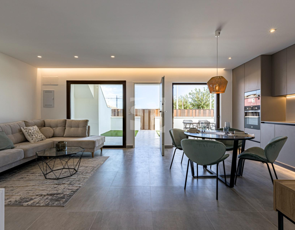 NOUVELLE CONSTRUCTION RÉSIDENTIELLE D'APPARTEMENTS DE PLAIN-PIED À PILAR DE LA HORADADA Nouvelle construction d'un complexe résidentiel exclusif composé de 22 appartements de plain-pied de qualité supérieure avec des finitions PORCELANOSA à Pilar de la Horadada. Des bungalows modernes de 2 chambres, 2 salles de bains, cuisine ouverte sur le salon, armoires encastrées. Les maisons du rez-de-chaussée disposent d'un grand jardin en gazon artificiel et au dernier étage, vous pourrez profiter du soleil toute l'année sur la terrasse et le solarium, ainsi que de la zone commune avec piscine et d'une place de parking pratique. Pilar de la Horadada est un village espagnol typique situé dans la partie la plus méridionale de la Costa Blanca. La grande rue principale abrite des supermarchés, de nombreux magasins, des restaurants et des bars, ainsi que de jolies places. Les belles plages de Torre de la Horadada et de Mil Palmeras, avec leur promenade de sable fin, ne sont qu'à 5 minutes. Les aéroports de Corvera (Murcia) et d'Alicante sont respectivement à 40 et 55 minutes.