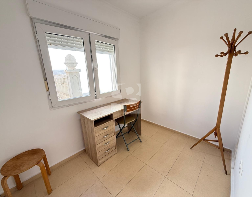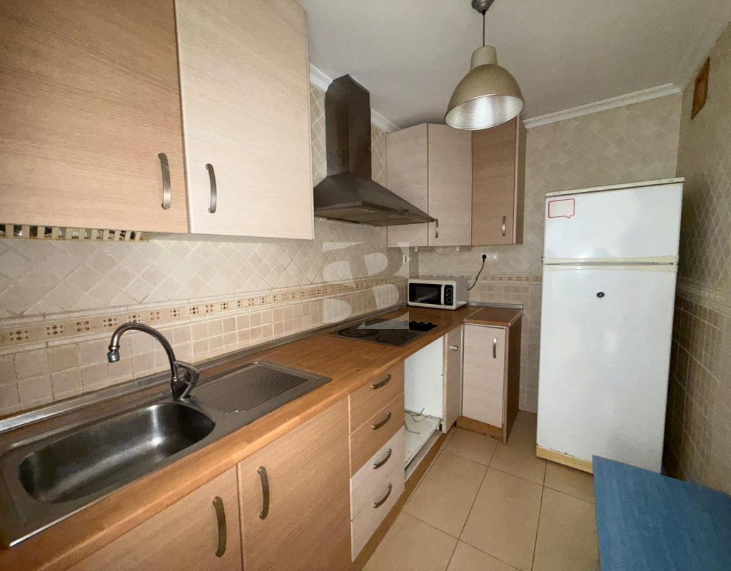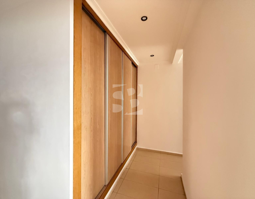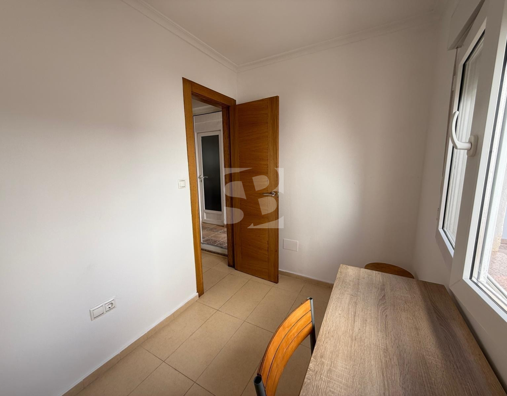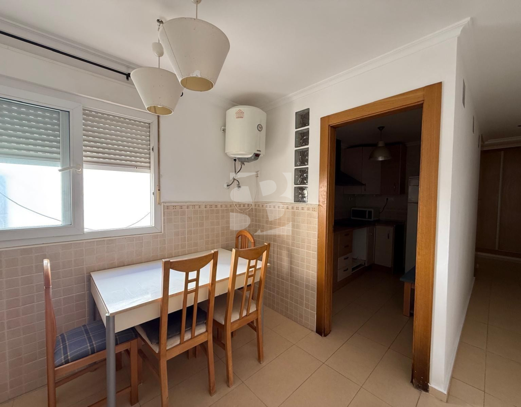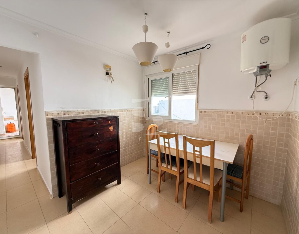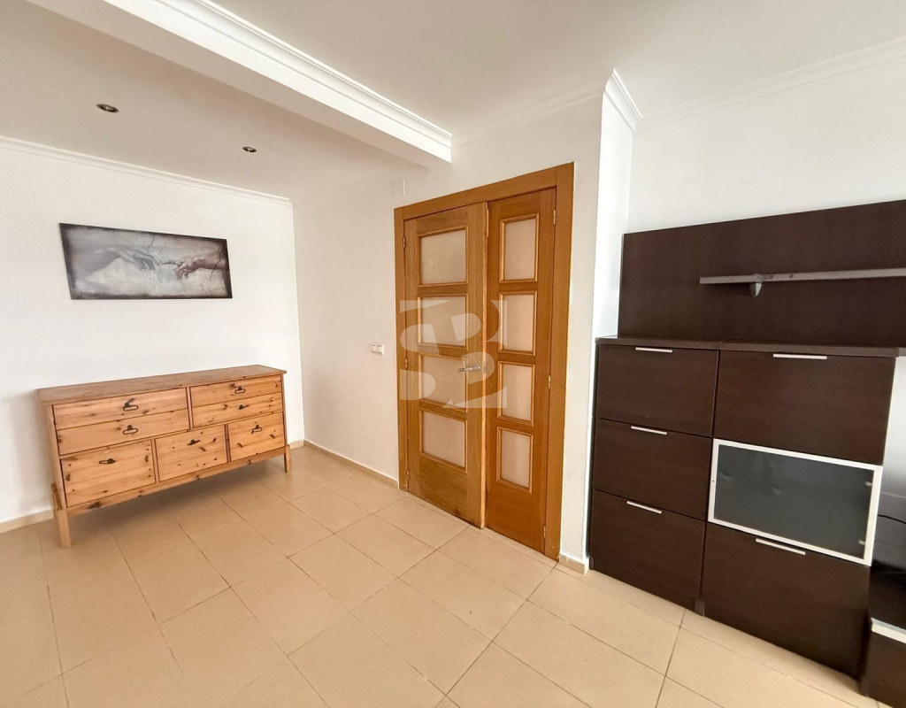 L'appartement bénéficie d'une distribution spacieuse et fonctionnelle, avec un grand séjour/salle à manger et une terrasse ensoleillée, idéale pour profiter du climat méditerranéen toute l'année. Il comprend une cuisine séparée, deux chambres doubles et une chambre simple avec placards intégrés, ainsi que deux salles de bains complètes.