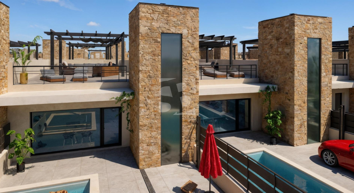 Nowa inwestycja mieszkaniowa składająca się z willi i domów szeregowych w Fuente Álamo, w regionie Murcja. Lokalizacja ta oferuje wyjątkowe otoczenie przyrody, z dala od zgiełku dużych miast i turystycznego natężenia na wybrzeżu. Ponadto jesteśmy zaangażowani w działania na rzecz zrównoważonego rozwoju, minimalizując nasz wpływ na środowisko i maksymalizując integrację z lokalną społecznością. Tutaj Twoje marzenia o spokojnym i zrównoważonym stylu życia stają się rzeczywistością. Wyobraź sobie, że każdego ranka budzisz się w imponującym otoczeniu natury, w spokoju i wśród wyjątkowego piękna murcyjskiej wsi. W tej inwestycji priorytetem jest energooszczędność, wykorzystanie materiałów przyjaznych dla środowiska oraz harmonijna integracja z otoczeniem. Od projektu nieruchomości po planowanie inwestycji – wszystko ma na celu zmniejszenie naszego śladu węglowego i promowanie odpowiedzialnych praktyk we wszystkich działaniach. Kompletna instalacja klimatyzacji kanałowej, chłodzenie/ogrzewanie. System wideodomofonu. Drzwi wejściowe w kolorze lakierowanym, z zamkiem i okuciami antywandalskimi. Szafy z bagażnikiem, wyłożone wewnątrz, lakierowane na biało. Meble kuchenne wraz z wyposażeniem AGD. Ciepła woda z aerotermii. Elektryczne rolety. Pergole w solarium. Prywatny basen o wymiarach 2,5 x 4,5 m z podwodnym oświetleniem i systemem oczyszczania chlorem solnym. Instalacja pod kuchnię zewnętrzną/jacuzzi w solarium. Fuente Álamo de Murcia to miejscowość i gmina w regionie Murcji, na południu Hiszpanii. Położona jest 22 km na północny zachód od Kartageny i 35 km na południowy zachód od Murcji. Miasto leży w dorzeczu Morza Menor, otoczone pasmami górskimi Algarrobo, Los Gómez, Los Victorias i Carrascoy. Woda z tych gór spływa w dół Rambla de Fuente Álamo, a następnie do Morza Menor. Fuente Álamo znajduje się 30 minut od lotniska Murcia - Corvera. Najbliższe sklepy znajdują się w odległości 6 km.