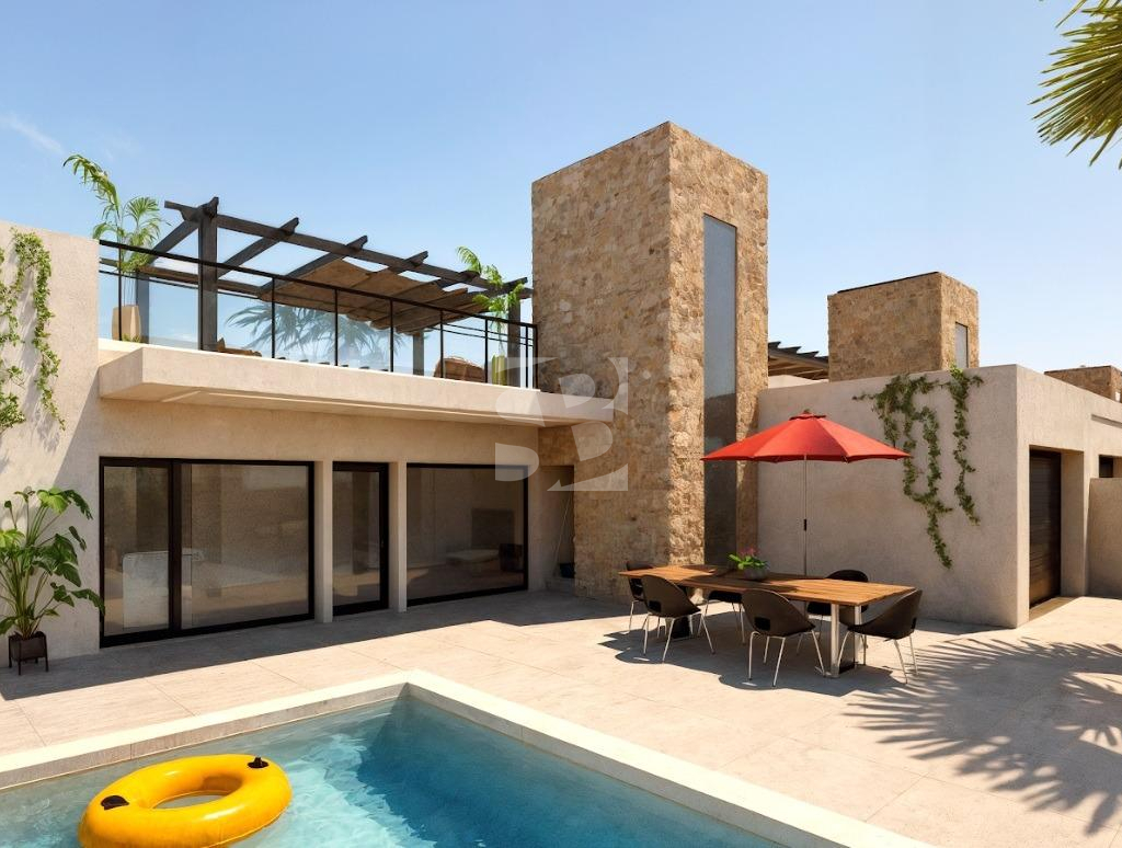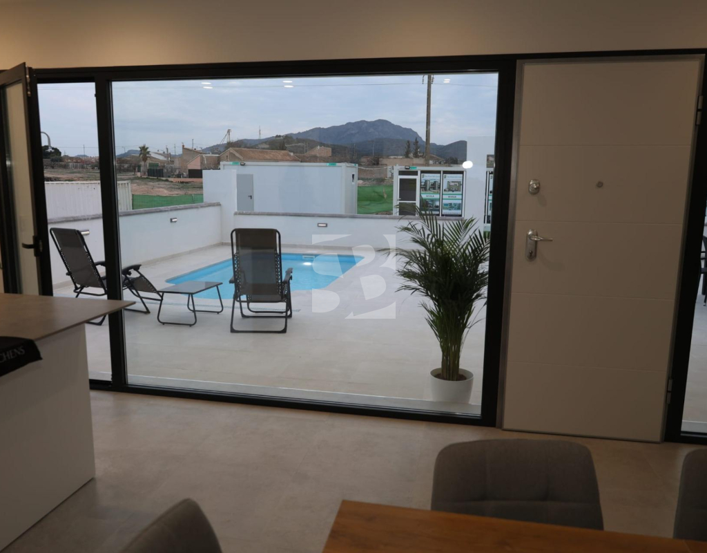 Nowa inwestycja mieszkaniowa składająca się z willi i domów szeregowych w Fuente Álamo, w regionie Murcja. Lokalizacja ta oferuje wyjątkowe otoczenie przyrody, z dala od zgiełku dużych miast i turystycznego natężenia na wybrzeżu. Ponadto jesteśmy zaangażowani w działania na rzecz zrównoważonego rozwoju, minimalizując nasz wpływ na środowisko i maksymalizując integrację z lokalną społecznością. Tutaj Twoje marzenia o spokojnym i zrównoważonym stylu życia stają się rzeczywistością. Wyobraź sobie, że każdego ranka budzisz się w imponującym otoczeniu natury, w spokoju i wśród wyjątkowego piękna murcyjskiej wsi. W tej inwestycji priorytetem jest energooszczędność, wykorzystanie materiałów przyjaznych dla środowiska oraz harmonijna integracja z otoczeniem. Od projektu nieruchomości po planowanie inwestycji – wszystko ma na celu zmniejszenie naszego śladu węglowego i promowanie odpowiedzialnych praktyk we wszystkich działaniach. Kompletna instalacja klimatyzacji kanałowej, chłodzenie/ogrzewanie. System wideodomofonu. Drzwi wejściowe w kolorze lakierowanym, z zamkiem i okuciami antywandalskimi. Szafy z bagażnikiem, wyłożone wewnątrz, lakierowane na biało. Meble kuchenne wraz z wyposażeniem AGD. Ciepła woda z aerotermii. Elektryczne rolety. Pergole w solarium. Prywatny basen o wymiarach 2,5 x 4,5 m z podwodnym oświetleniem i systemem oczyszczania chlorem solnym. Instalacja pod kuchnię zewnętrzną/jacuzzi w solarium. Fuente Álamo de Murcia to miejscowość i gmina w regionie Murcji, na południu Hiszpanii. Położona jest 22 km na północny zachód od Kartageny i 35 km na południowy zachód od Murcji. Miasto leży w dorzeczu Morza Menor, otoczone pasmami górskimi Algarrobo, Los Gómez, Los Victorias i Carrascoy. Woda z tych gór spływa w dół Rambla de Fuente Álamo, a następnie do Morza Menor. Fuente Álamo znajduje się 30 minut od lotniska Murcia - Corvera. Najbliższe sklepy znajdują się w odległości 6 km.