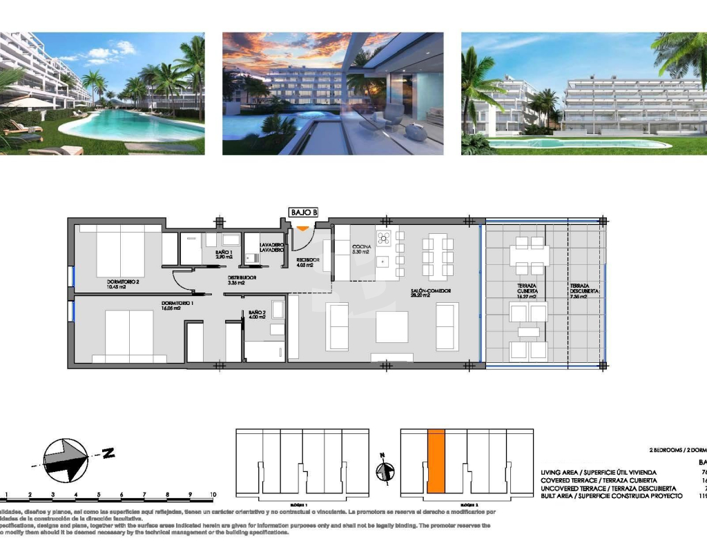 NOWY BUDYNEK KOMPLEKS MIESZKALNY W MAR DE CRISTAL New Build nowoczesny kompleks mieszkalny z apartamentów i penthouse'ów położony bardzo blisko promenady i długie piękne piaszczyste plaże Mar de Cristal. Możesz wybierać spośród apartamentów na parterze z prywatnym ogrodem, apartamentów w połowie piętra z tarasem i penthousów z prywatnym solarium. Apartamenty mają 2 lub 3 sypialnie i 2 łazienki. Apartamenty mają nowoczesny design, prezentują otwartą część dzienną, łącząc kuchnię, jadalnię i salon w dużą przestrzeń z dostępem do tarasu. Główna sypialnia posiada prywatną łazienkę. Zbudowany z najwyższej jakości wykończeniami, wyposażonymi szafami, wstępną instalacją klimatyzacji kanałowej, pomieszczeniem gospodarczym i podziemnym miejscem parkingowym. Wszystkie codzienne potrzeby, jak supermarkety, bary i restauracje, są dostępne przez cały rok i znajdują się w pobliżu kompleksu. Mar de Cristal ma piękne piaszczyste plaże, centrum tenisowe, marina, supermarkety, bary i restauracje. Park Narodowy Calblanque, gdzie można znaleźć dziewicze długie białe piaszczyste plaże, jak również słynny La Manga Club i tętniącego życiem miasta Los Belones są w ciągu 5 minut jazdy od wsi. Lotnisko Murcia jest 25 minut i Alicante 1 godzinę jazdy. Można również odwiedzić historyczne miasta Cartagena i Murcia.