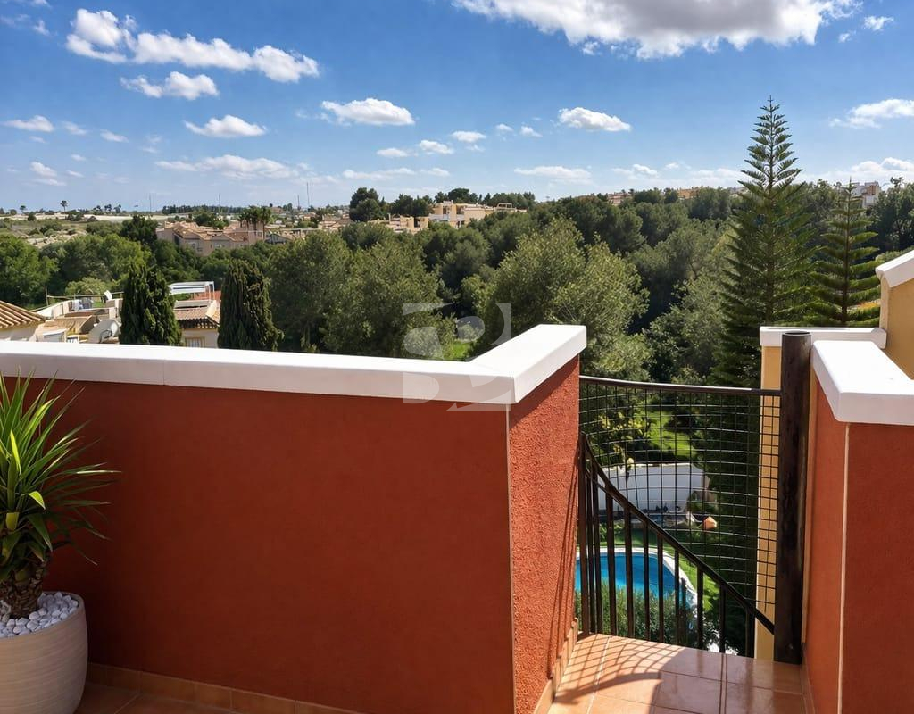 DOM W SZEREGÓWCE z OGRODEM, SOLARIUM i bezpośrednio naprzeciwko POLA GOLFOWEGO FINCA. Nieruchomość posiada wyłączny dostęp do ogrodu (z przodu i z tyłu) o powierzchni około 37 m², a także do prywatnego tarasu solarium na dachu.