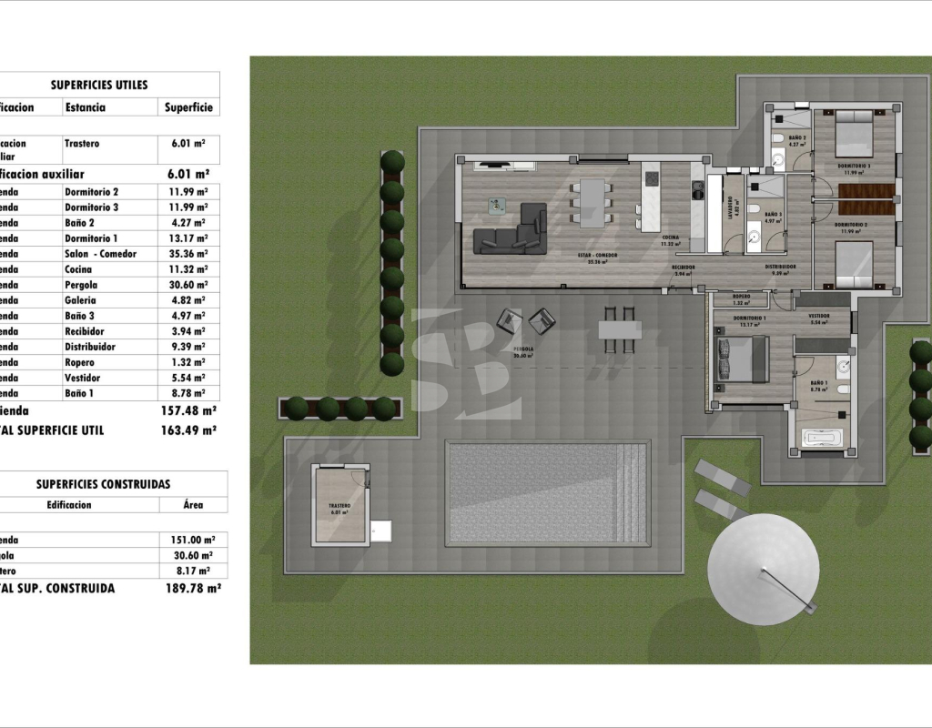 Villas de obra nueva situadas en término de Aspe. Villas de obra nueva con varios modelos a elegir entre 2, 3 o 4 dormitorios, de una o 2 plantas y construidas con losa o con estructura: dependiendo del modelo y la parcela elegida, se calculará el precio exacto. Todas las villas se construyen en parcelas rústicas de más de 10.000 m2 de los cuales se vallarán unos 2.500 m2. Las villas disponen de cocina americana con el salón, armarios empotrados, piscina privada, porche, trastero y plaza de parking exterior. Hay varias parcelas a elegir, para el cálculo del precio se ha considerado una parcela con un precio de 77.500 eur (si se elige otra parcela, se pagará o abonará la diferencia según el precio de la misma). Realizada en régimen de auto promoción, entrega en unos 12 meses desde la concesión de la licencia. Si busca un entorno tranquilo, cerca de pueblos típicos españoles alejados de la masificación turística, rodeado de montañas, con una amplísima parcela y a unos 30 minutos del mar, esta es su casa. Aspe es un típico pueblo español con todos los servicios para el día a día, rodeado de montañas y con varios parajes naturales en las cercanías donde se pueden hacer rutas de senderismo o mountain bike. Situado a 25 km de la playa, a 9 km de Elche y a unos 20 km del aeropuerto de Alicante.