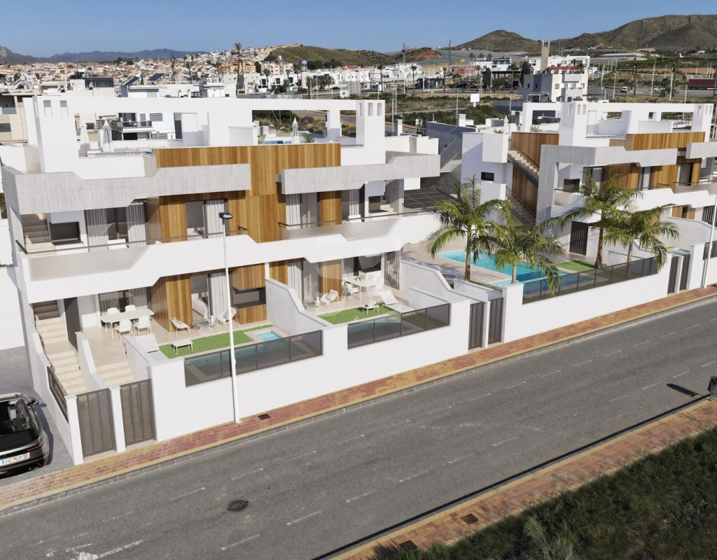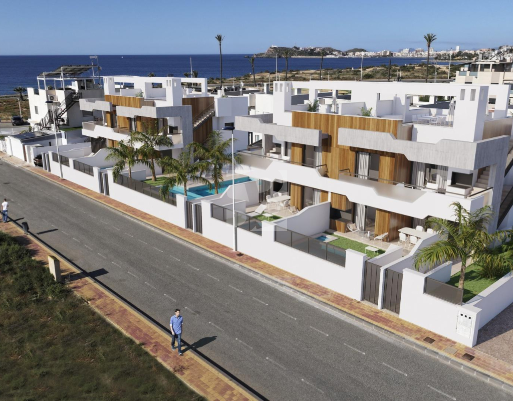 Viviendas de nueva construcción a solo 150 metros de la playa en Puerto de Mazarrón Exclusivo proyecto residencial cerca de Playa Negra Descubra esta urbanización boutique de solo 8 viviendas modernas situadas a solo 150 metros de Playa Negra, en Puerto de Mazarrón, Murcia. Este nuevo proyecto de construcción ofrece la combinación perfecta entre vida costera, privacidad y comodidad contemporánea, ideal tanto para vivir todo el año como para disfrutar de unas vacaciones. Disfrute de las vistas al mar, de un entorno tranquilo y de un fácil acceso a una de las zonas de playa más bonitas de la Costa Cálida. La urbanización está situada en una tranquila zona residencial con todos los servicios esenciales cerca, incluyendo supermercados, restaurantes, colegios y centros médicos. Tipos de viviendas y distribuciones La urbanización ofrece la posibilidad de elegir entre viviendas en planta baja o en ático: Viviendas en planta baja: 3 dormitorios y 2 baños con jardines privados. Piscina privada opcional disponible con un coste adicional. Viviendas en planta superior: 2 dormitorios y 2 baños con amplias terrazas y soláriums privados en la azotea, perfectos para tomar el sol y comer al aire libre. Todas las propiedades incluyen un trastero y una plaza de aparcamiento asignada en el garaje subterráneo. Características modernas y acabados de alta calidad Estas viviendas de nueva construcción están diseñadas con materiales de alta gama y detalles cuidados para mejorar el confort y la eficiencia: Carpintería exterior de PVC con doble acristalamiento y cámara de aire para mayor aislamiento. Puerta de entrada de seguridad reforzada. Calefacción eléctrica por suelo radiante en los baños. Cocinas totalmente equipadas con electrodomésticos incluidos. Sistema de aire acondicionado por conductos instalado. Piscina comunitaria con jardín paisajístico. Preinstalación para televisión por satélite. Ubicación privilegiada en Puerto de Mazarrón Puerto de Mazarrón es uno de los destinos costeros más codiciados de la región de Murcia, conocido por sus pintorescas playas, su animado puerto deportivo y su relajado ambiente mediterráneo. La zona ofrece una amplia gama de actividades al aire libre, desde la vela y el buceo hasta el senderismo y el ciclismo en la cercana Sierra de las Moreras. Distancias a los principales puntos de interés: Playa Negra: 150 metros Puerto deportivo de Mazarrón: 2 km Cartagena: 35 km Ciudad de Murcia: 70 km Aeropuerto de Corvera (Murcia): 45 km Campos de golf (Camposol, Hacienda del Álamo): 25-35 km Centro comercial Mazarrón Park: 5 km Haga de la costa su nuevo hogar No pierda esta oportunidad única de adquirir una vivienda a estrenar cerca de la playa en Puerto de Mazarrón. Póngase en contacto con nosotros hoy mismo para obtener más información o concertar una visita para ver las unidades disponibles y experimentar de primera mano el estilo de vida mediterráneo.