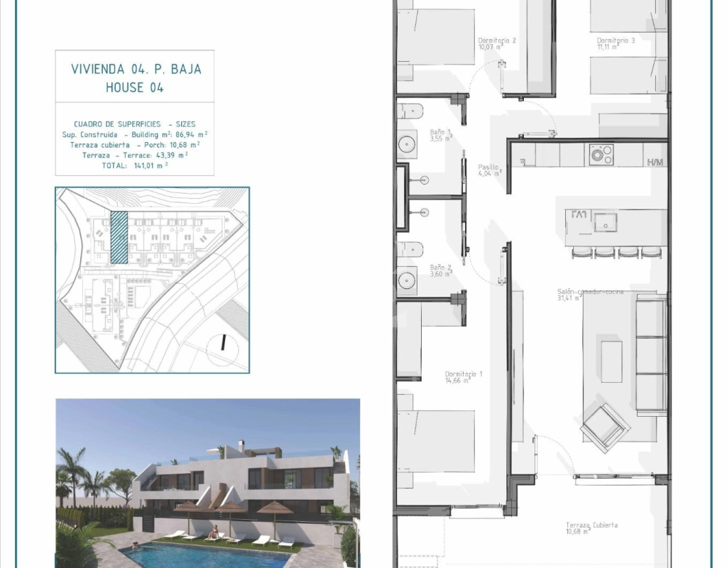 Bungalows de nueva construcción en Vera Playa, Almería: viviendas modernas cerca del mar Vida contemporánea en Pueblo Salinas, a solo 2 km de la playa Presentamos una impresionante nueva promoción residencial situada en la codiciada zona de Vera Playa, dentro de la exclusiva urbanización Pueblo Salinas. Este moderno complejo ofrece un estilo de vida privilegiado a solo 2 km de las playas de Vera (Almería), con espectaculares vistas al mar y un tranquilo entorno mediterráneo ideal para vivir todo el año o disfrutar de las vacaciones. Viviendas elegantes con comodidad y estilo modernos Esta nueva promoción consta de 18 bungalows de alta calidad. Elija entre distribuciones de 2 o 3 dormitorios diseñadas pensando en la funcionalidad, el confort y el estilo. Las opciones incluyen: Plantas bajas con jardines privados Plantas altas con grandes soláriums que incluyen cocina de verano y pérgola con paneles solares. Todas las viviendas cuentan con: Cocinas abiertas totalmente equipadas con frigorífico integrado, lavavajillas, placa de inducción, horno, microondas y campana extractora Espacios diáfanos y luminosos con iluminación LED en toda la vivienda (excepto en los dormitorios) Persianas motorizadas de aluminio en los dormitorios Baños con acabados modernos, incluyendo calefactores para toallas, platos de ducha con mamparas de cristal y muebles empotrados Preinstalación de aire acondicionado por conductos Sistema aerotérmico para una producción eficiente de agua caliente Puerta de entrada de seguridad Excepcionales servicios comunitarios Los residentes disfrutarán de acceso a una amplia gama de servicios diseñados para mejorar el confort y el ocio, entre los que se incluyen: Piscina comunitaria al aire libre perfecta para los meses de verano Plaza de aparcamiento privada y trastero incluidos con cada propiedad Ubicación privilegiada con excelentes conexiones Vera Playa es un popular destino costero conocido por sus amplias playas de arena y su estilo de vida relajado. La ubicación de la urbanización ofrece fácil acceso a los servicios y atracciones esenciales: Playa: 2 km Desert Springs Golf Resort: 8 km Centro de Vera: 5 km Puerto deportivo y restaurantes de Garrucha: 6 km Parque Comercial Mojácar: 10 km Aeropuerto de Almería: 85 km (1 hora en coche) Haga de Vera Playa su nuevo hogar Tanto si busca una residencia permanente, un refugio para las vacaciones o una inversión inteligente, estos apartamentos de nueva construcción ofrecen un valor inigualable en una de las zonas más deseadas de la Costa de Almería. Póngase en contacto con nosotros hoy mismo para obtener más información y programar su visita.