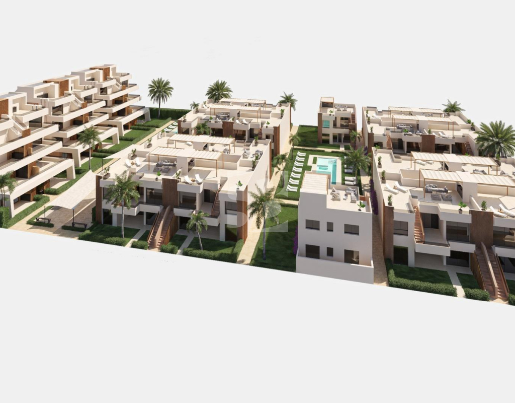 Apartamentos, bungalows y villas de nueva construcción en Condado de Alhama Golf Resort, Murcia Viviendas modernas junto al golf y la naturaleza Bienvenido a un nuevo complejo residencial de bungalows, apartamentos, áticos y villas independientes, situado en el prestigioso Condado de Alhama Golf Resort, en la región de Murcia. Este complejo privado ofrece seguridad las 24 horas, jardines paisajísticos y acceso directo al campo de golf diseñado por Jack Nicklaus, lo que lo convierte en un destino ideal para los amantes del golf y las familias que buscan un estilo de vida tranquilo y mediterráneo. Situado a pocos pasos del centro comercial Al Kassar, los residentes disfrutan de la proximidad a tiendas, restaurantes, bares y servicios esenciales dentro del complejo. Diseño contemporáneo y construcción de alta calidad La promoción ofrece bungalows de 2 o 3 dormitorios y 2 baños, disponibles en dos tipos: Bungalows en planta baja con jardín delantero y patio trasero. Algunas unidades también incluyen aparcamiento privado dentro del jardín. Bungalows en la planta superior con porche privado y amplio solárium en la azotea con espectaculares vistas al campo de golf y a las montañas circundantes. Todas las viviendas están construidas con altos estándares de calidad e incluyen: Cocina equipada con frigorífico, horno, microondas, campana extractora y lavavajillas integrados Preinstalación de aire acondicionado por conductos en el salón y los dormitorios Baños modernos con mamparas de ducha, tocadores, espejos y focos en el techo Armarios empotrados con cajones y estantes. Sistema de calefacción aerotérmica. Persianas eléctricas de aluminio en los dormitorios. Puerta de entrada de seguridad reforzada. Cocina exterior de verano en los bungalows de la última planta. Iluminación interior y exterior (excepto lámparas decorativas). Tomas de televisión y teléfono en todas las habitaciones. Estilo de vida en un complejo turístico rodeado de naturaleza Condado de Alhama es un complejo turístico seguro y bien establecido, rodeado de naturaleza y montañas, ideal para disfrutar de la vida al aire libre. Los residentes tienen acceso a una piscina comunitaria con zona de solárium, jardines mediterráneos y tropicales, y numerosas rutas para pasear y montar en bicicleta dentro del complejo. Excelente acceso a lugares clave Aeropuerto Internacional de Murcia (Corvera): 40 km Playas de Mazarrón: 25 km Centro de Murcia: 35 km Población de Alhama de Murcia: 15 km Asegure su nuevo hogar en la Costa Cálida Tanto si busca una escapada de vacaciones, una residencia para todo el año o una oportunidad de inversión, esta promoción ofrece la combinación ideal de diseño moderno, comodidad y ubicación. Póngase en contacto con nosotros hoy mismo para programar su visita y encontrar su propiedad perfecta en Condado de Alhama Golf Resort.