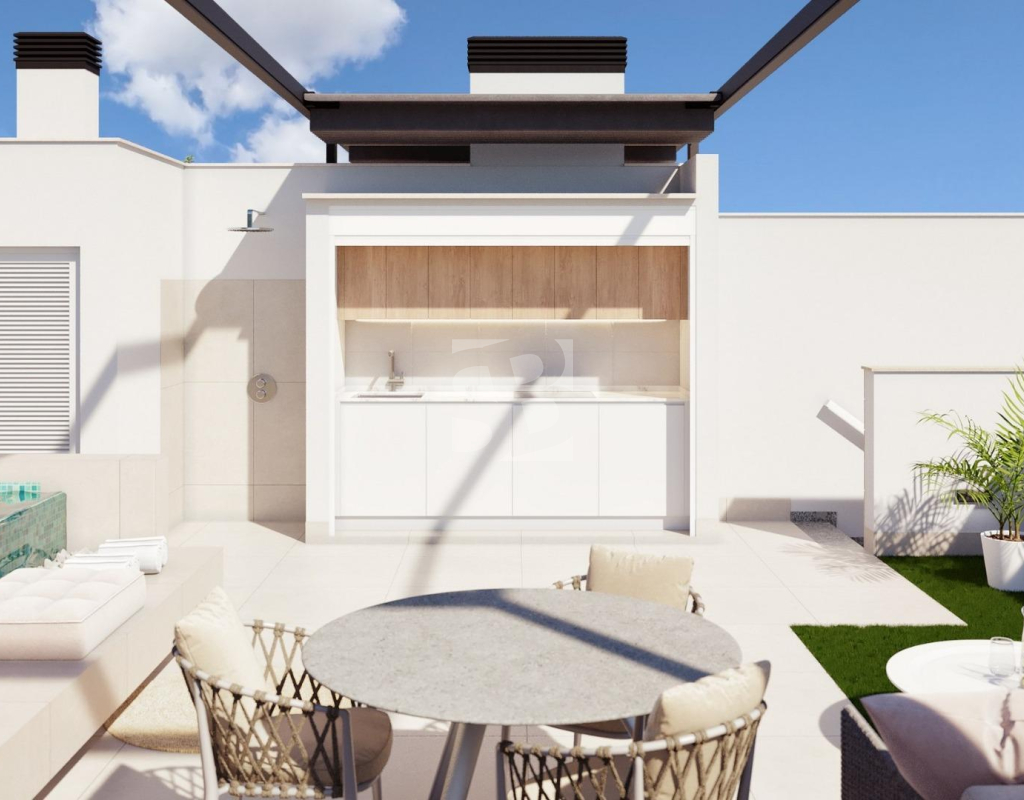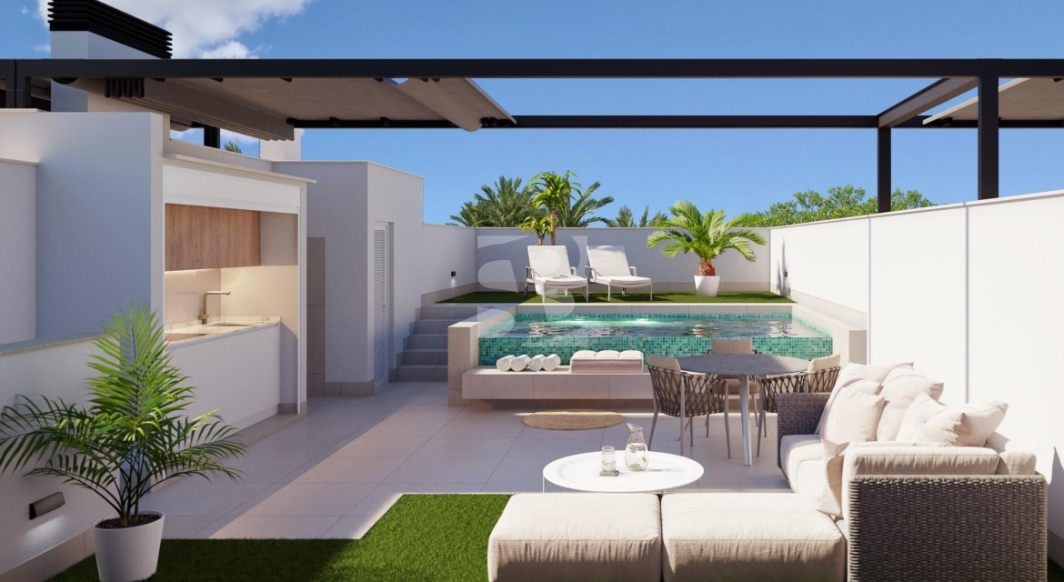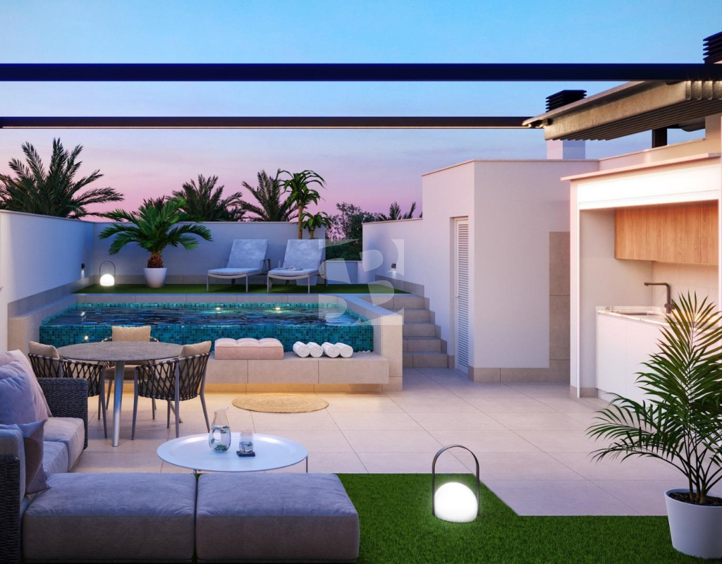 Promoción boutique de viviendas de nueva construcción con piscina privada en Pilar de la Horadada Residencia exclusiva en una ubicación privilegiada de la Costa Blanca Descubra esta promoción boutique de nueva construcción de solo 10 viviendas exclusivas en Pilar de la Horadada, una encantadora localidad costera al sur de la Costa Blanca. Situado a las afueras de la localidad, este moderno proyecto ofrece vistas abiertas a zonas verdes y parques, a solo 2 km de las playas mediterráneas de Torre de la Horadada. Disfrute de la comodidad de tener todos los servicios esenciales a poca distancia, incluyendo supermercados, restaurantes, bancos, colegios y servicios sanitarios. Diferentes distribuciones con espacios exteriores privados Esta nueva promoción ofrece una variedad de distribuciones de 2 y 3 dormitorios para adaptarse a diferentes necesidades y estilos de vida: Las viviendas de la planta baja cuentan con jardín privado, piscina con zona de playa y exteriores totalmente ajardinados con riego automático. Las viviendas de la planta superior cuentan con solárium privado con cocina de verano, pérgola, aseo exterior y piscina privada con jacuzzi integrado, además de un trastero para bicicletas en la planta baja. Las villas adosadas ofrecen amplios espacios interiores y exteriores con jardín y piscina privados, ideales para la vida familiar o estancias prolongadas. Todas las viviendas incluyen una plaza de aparcamiento privada. Características premium y acabados de alta calidad Diseñadas pensando en la comodidad, la eficiencia y el estilo, todas las viviendas están equipadas con: Aire acondicionado por conductos totalmente instalado Persianas eléctricas y puertas de entrada reforzadas Paquete de iluminación LED para zonas interiores y exteriores Cocinas equipadas con electrodomésticos BOSCH o SIEMENS Baños elegantes con calefacción por suelo radiante, espejos, muebles de baño y mamparas de ducha Diseño moderno que maximiza la luz natural y la funcionalidad Estas viviendas, cuidadosamente diseñadas, ofrecen una combinación perfecta entre el confort interior y la vida al aire libre, ideal para disfrutar del cálido clima mediterráneo durante todo el año. Distancias clave: Playas: 2 km Campo de golf Lo Romero: 6 km Centro comercial Dos Mares (San Javier): 10 km Centro comercial Zenia Boulevard (Orihuela Costa): 12 km Aeropuerto Internacional de Murcia: 40 km Aeropuerto de Alicante: 70 km Ideal para vivir o invertir Con disponibilidad limitada y una ubicación privilegiada, esta nueva promoción en Pilar de la Horadada representa una fantástica oportunidad tanto para vivir de forma permanente como para invertir. Tanto si busca una casa de vacaciones, un lugar para jubilarse o una propiedad para alquilar, estas modernas viviendas le ofrecen todo lo que necesita. Póngase en contacto con nosotros hoy mismo para asegurarse su nueva casa en la Costa Blanca.