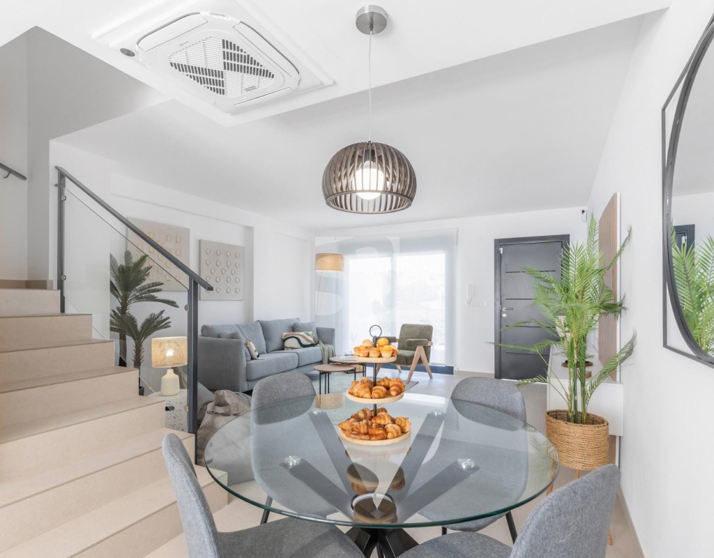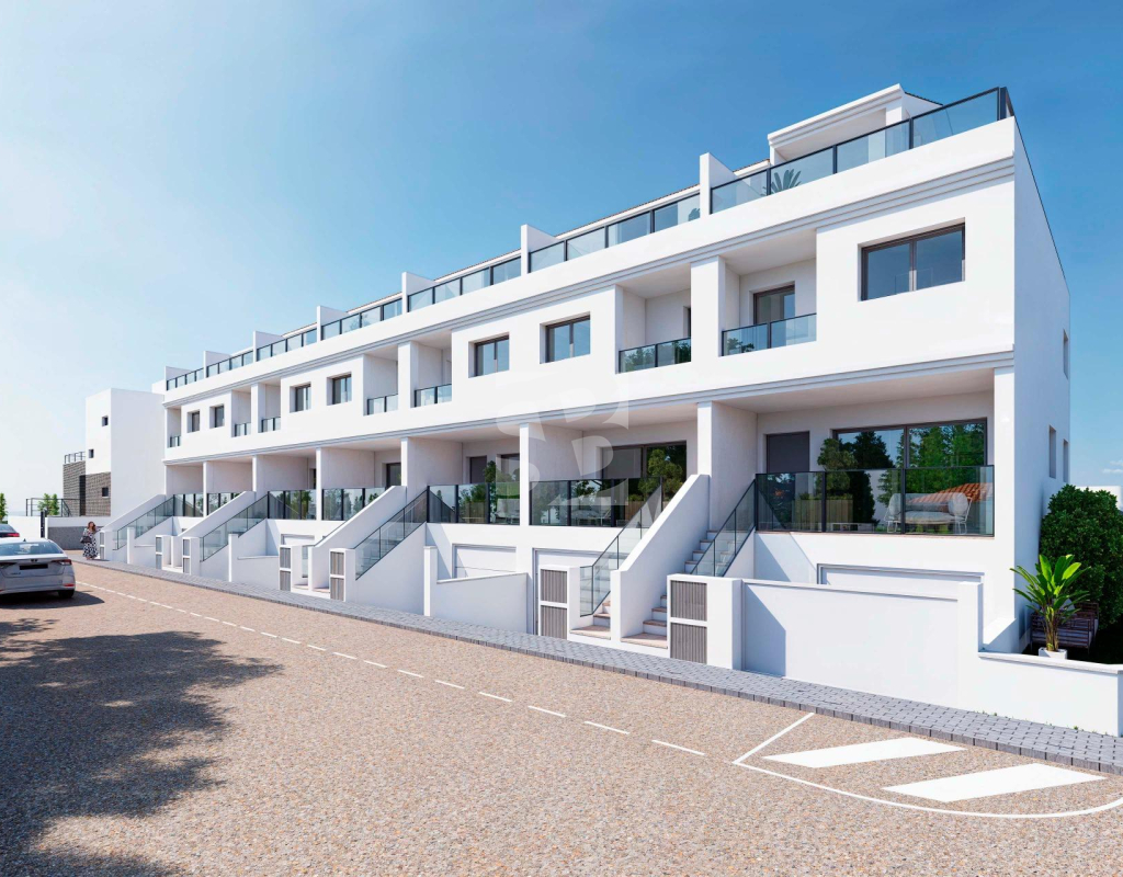 Modernas casas adosadas con solárium y sótano en Rafal, Alicante Amplias viviendas en un entorno tranquilo y bien comunicado Situada en la encantadora localidad de Rafal, en el corazón de la Vega Baja alicantina, esta urbanización de nueva construcción ofrece una oportunidad única para disfrutar del espacio, el confort y la calidad de vida en un entorno mediterráneo y tranquilo. Ubicada en una zona tranquila junto al polideportivo municipal, esta comunidad se encuentra a pocos pasos del centro del pueblo, donde encontrará todos los servicios esenciales para el día a día. Comunidad exclusiva de solo 9 casas adosadas Esta urbanización boutique consta de solo 9 amplias casas adosadas, cada una con más de 200 m² de superficie construida, incluyendo un sótano de 66 m² con aparcamiento privado para 2 vehículos. Las viviendas se distribuyen en tres plantas y cuentan con: 4 dormitorios 2 baños completos (uno en suite) 1 aseo en la planta baja Múltiples terrazas, incluyendo un solárium privado en la segunda planta Piscina comunitaria con zona de césped artificial Disfrute de las vistas al campo desde las plantas superiores y benefíciese de la abundante luz natural y los amplios espacios interiores diseñados para la vida familiar moderna. Acabados de alta calidad y eficiencia energética Estas viviendas se han construido pensando en la calidad y la sostenibilidad: Puerta de entrada de seguridad Ventanas de aluminio con rotura de puente térmico y doble acristalamiento Persianas motorizadas en dormitorios y salón Bandejas de ducha de resina con mamparas de cristal Aire acondicionado por conductos preinstalado Agua caliente mediante sistema aerotérmico. Aparcamiento privado fuera de la vía pública. ¡Venga a visitar la casa piloto y aprecie los maravillosos acabados! Con un excelente acceso a la autopista A-7, la urbanización está bien comunicada con las principales ciudades: Orihuela: 11 km. Elche: 25 km. Alicante: 45 km. Murcia: 50 km. Aeropuerto de Alicante-Elche: 47 km. Playas de Guardamar del Segura: 25 km La Finca Golf Resort: 14 km Un proyecto de renovación urbana sostenible Este proyecto es el resultado de una ambiciosa iniciativa de regeneración urbana. Inicialmente inconclusos debido a la crisis financiera, los edificios se han transformado en viviendas modernas, asequibles y sostenibles, conservando su esencia y adaptándolos a los estándares actuales. Esta promoción fomenta el crecimiento urbano responsable mediante la reutilización de terrenos existentes en lugar de consumir nuevos terrenos. Tu hogar ideal en la Vega Baja Si buscas una vivienda espaciosa, luminosa y moderna en una localidad tranquila y bien comunicada, esta colección limitada de solo 9 viviendas te ofrece comodidad, exclusividad y un estilo de vida sostenible. Ponte en contacto hoy mismo para reservar tu plaza en esta promoción única en el corazón del sur de Alicante.
