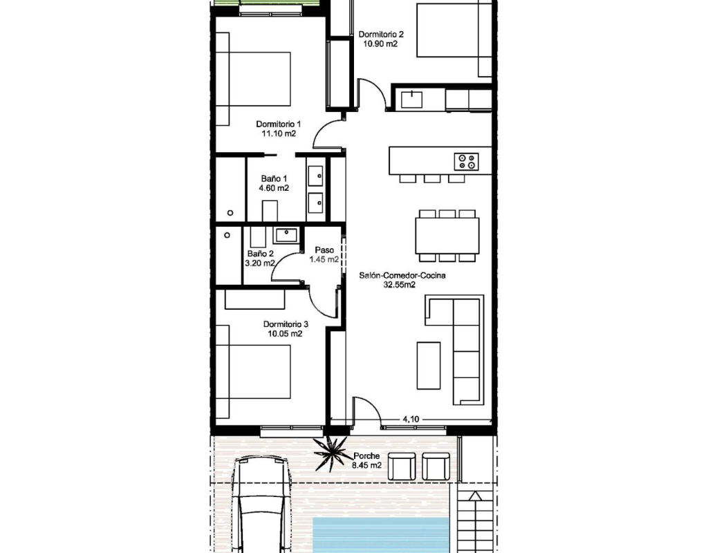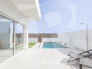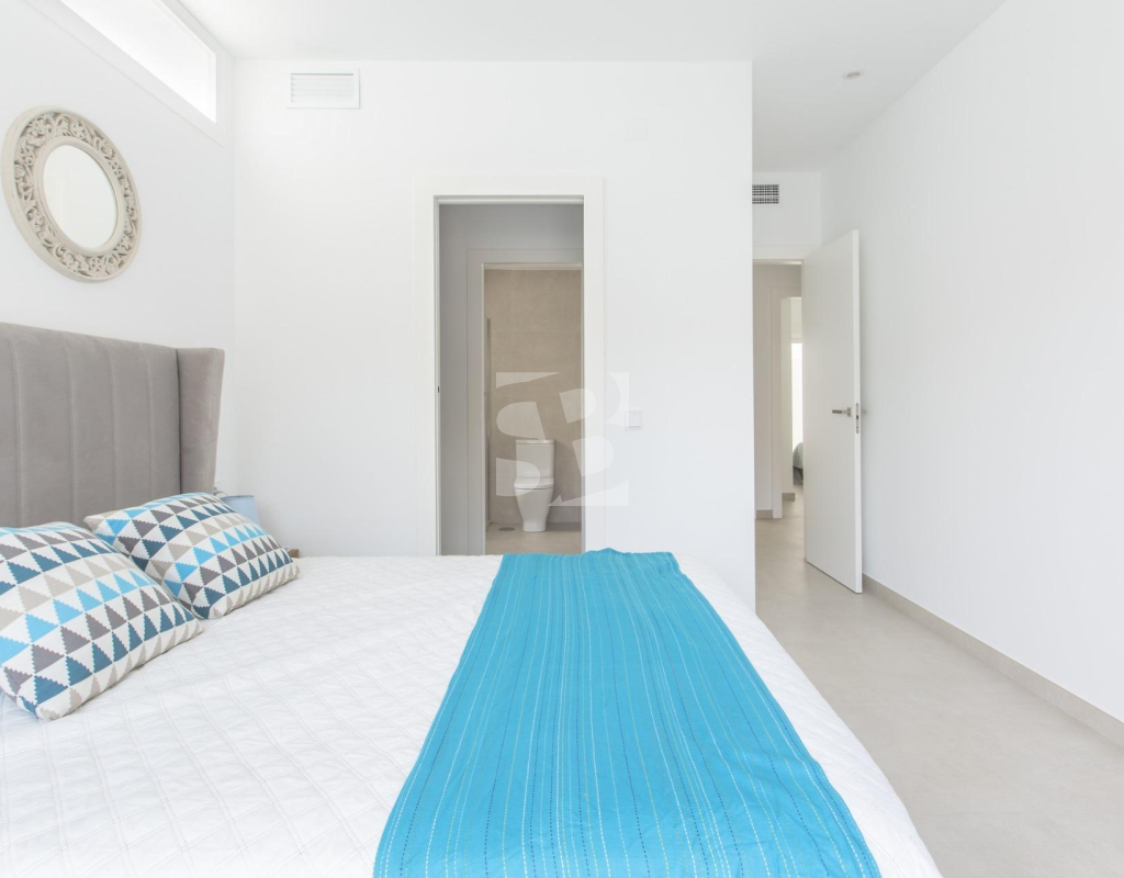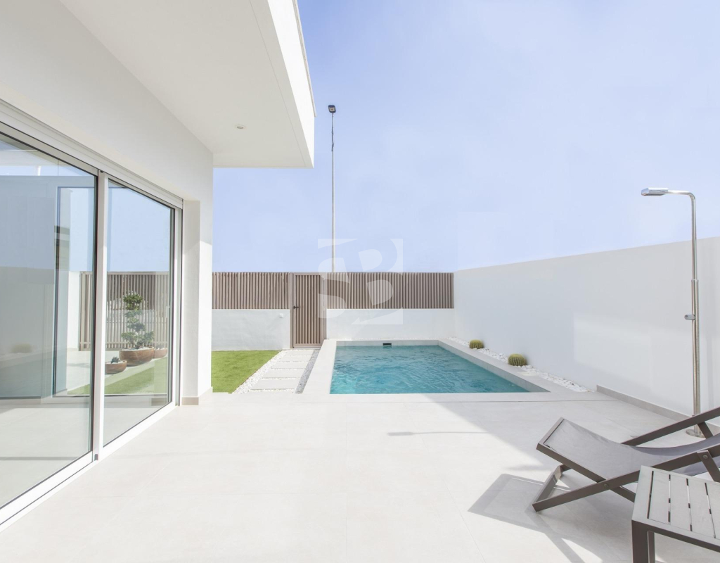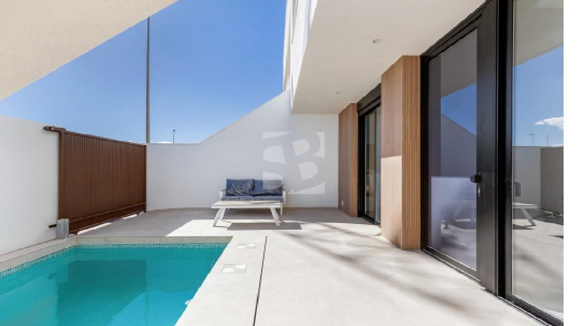 Bungalows de Obra Nueva con Piscina Privada en Santiago de la Ribera Viviendas modernas a sólo 800 m de la playa Descubra esta exclusiva promoción de ocho apartamentos contemporáneos en Santiago de la Ribera, a sólo 800 metros del mar. Diseñadas con una estética moderna y acabados de alta calidad, estas viviendas ofrecen amplios interiores, zonas exteriores privadas y servicios de primer nivel. Opciones de propiedad - Planta baja o ático Elija la vivienda que mejor se adapte a su estilo de vida: Bungalows en planta baja: Disfrute de jardín privado, plaza de aparcamiento y piscina privada. Áticos en planta alta: Cuentan con una plaza de aparcamiento exclusiva, terraza privada y un amplio solarium con piscina privada, perfecto para relajarse o entretenerse. Todas las viviendas están disponibles con 2 ó 3 dormitorios y 2 baños, lo que proporciona flexibilidad para diferentes necesidades. Acabados de alta calidad para mayor comodidad y estilo Cada vivienda está equipada con materiales de primera calidad y sistemas energéticamente eficientes, entre los que se incluyen: Puerta de entrada de seguridad reforzada Ventanas de aluminio con rotura de puente térmico para un mejor aislamiento Electrodomésticos de cocina Bosch Sistema aerotérmico para la eficiencia del agua caliente Mamparas de ducha de cristal en todos los baños Sistema de aire acondicionado por conductos totalmente instalado Ubicación privilegiada en Santiago de la Ribera Situada en la encantadora localidad costera de Santiago de la Ribera, esta promoción ofrece la combinación perfecta de tranquilidad y comodidad. Originalmente un pueblo pesquero tradicional, la zona se ha transformado en un destino codiciado en la Costa Cálida, conocida por su estilo de vida mediterráneo, playas de arena dorada, y excelentes servicios. La ciudad cuenta con 4 km de playas a lo largo del Mar Menor, con aguas tranquilas y cálidas ideales para nadar y practicar deportes acuáticos. Un hermoso paseo marítimo bordeado de palmeras se extiende a lo largo de la costa, proporcionando el escenario perfecto para pasear, montar en bicicleta y disfrutar de restaurantes junto al mar. Excelente conectividad y atracciones cercanas Playa (Playa de Santiago de la Ribera) - 800 m Aeropuerto de Murcia-Corvera - 30 km Aeropuerto de Alicante - 95 km Campos de Golf (Roda Golf, La Serena Golf, Lo Romero Golf) - 10-15 km Centro Comercial Dos Mares - 3 km Puerto Deportivo y Club Náutico - 1,5 km Le espera la casa de sus sueños junto al mar Tanto si busca un retiro vacacional, una oportunidad de inversión o una residencia permanente, estos bungalows ofrecen un confort moderno en una ubicación costera inmejorable. Póngase en contacto con nosotros hoy mismo para obtener más información y concertar una visita.