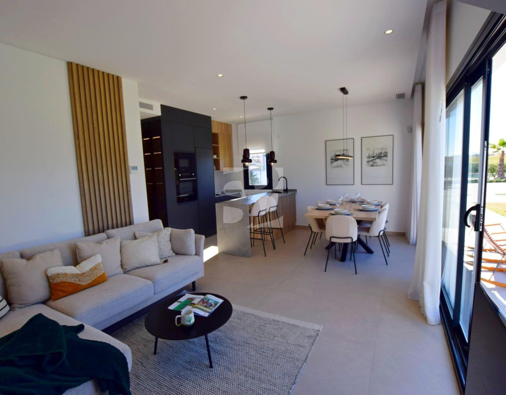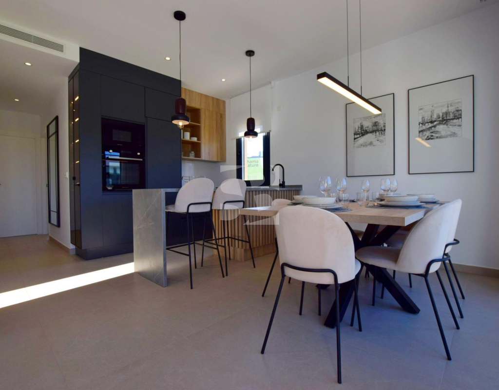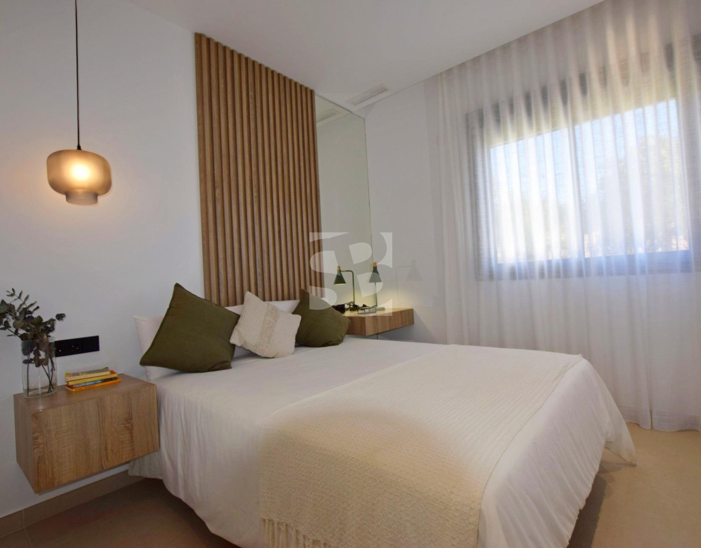 APARTAMENTOS DE OBRA NUEVA EN EL CAMPO DE GOLF DE CONDADO DE ALHAMA Complejo residencial de villas y apartamentos de nueva construcción en Condado de Alhama. Los 8 hermosos apartamentos se distribuyen entre planta baja, primera, segunda y tercera, con dos viviendas en cada planta y ascensor para pasar de un nivel a otro. Disponen de varias piscinas comunitarias, plaza de aparcamiento exterior para cada apartamento, trastero y terraza con cocina de verano. Las viviendas de la última planta tienen un solarium. Las dos viviendas de la planta baja tienen 3 dormitorios y 2 baños completos y el resto de las viviendas tienen 2 dormitorios y 2 baños completos también. Las viviendas han sido diseñadas con un estilo contemporáneo y un concepto abierto, compuesto por una cocina equipada y un salón-comedor. La promoción se encuentra en el Condado de Alhama, Murcia, dentro de un complejo turístico de lujo, con zonas deportivas y rodeado de naturaleza, todos los servicios, y varios Campos de Golf. La vivienda cumplirá con los más altos estándares y estará dotada de: Piscinas comunitarias con amplias zonas verdes. Cocina completamente amueblada y equipada con horno y microondas elevados y en columna, nevera y lavavajillas integrados, placa de inducción y campana extractora. Iluminación: en el interior de la vivienda (comedor, cocina, pasillos y baños), así como en las zonas exteriores. Armarios forrados con cajones y estantes. Cuartos de baño totalmente equipados con mueble de lavabo, inodoro suspendido, espejo, ducha mural y mamparas de ducha. Preinstalación de aire acondicionado por conductos. Cocina de verano en las terrazas. Solarium en las plantas superiores. Plaza de aparcamiento exterior con trastero. Ascensor (desde la planta baja hasta la 3ª planta). Condado de Alhama Golf Resort es un fantástico complejo de golf con muchas instalaciones y servicios. Un centro comercial, un centro deportivo, una variedad de bares y restaurantes, supermercados y más de 25 piscinas y jardines comunitarios. Condado de Alhama Golf Resort tiene su propio campo de golf diseñado por Jack Nicklaus y está a sólo 15 minutos de las hermosas playas de Bolnuevo y Mazarrón. Mazarrón tiene más de 35 km de costa, gran parte de la cual es costa virgen. Numerosas playas de la Bahía de Mazarrón han sido galardonadas con la Bandera Azul por su calidad. Condado de Alhama Golf Resort está a sólo 20 minutos del nuevo aeropuerto internacional de Corvera.