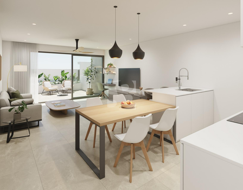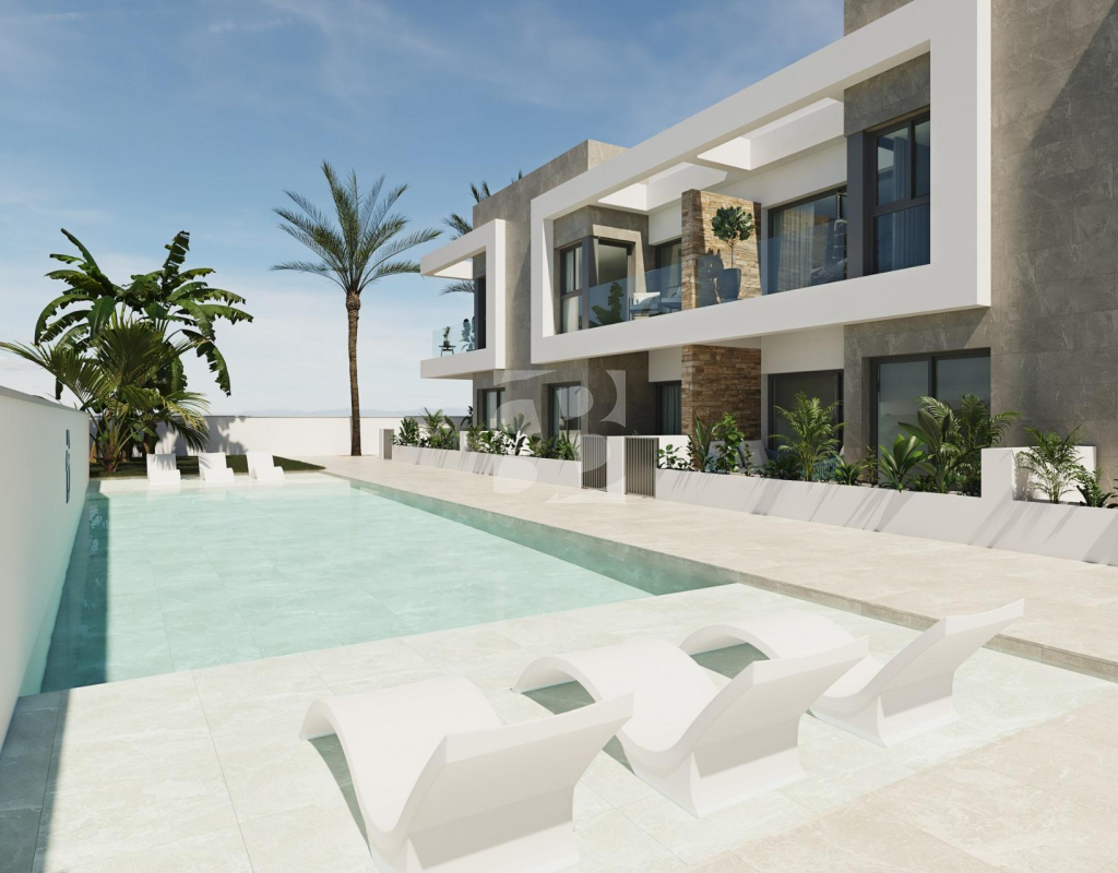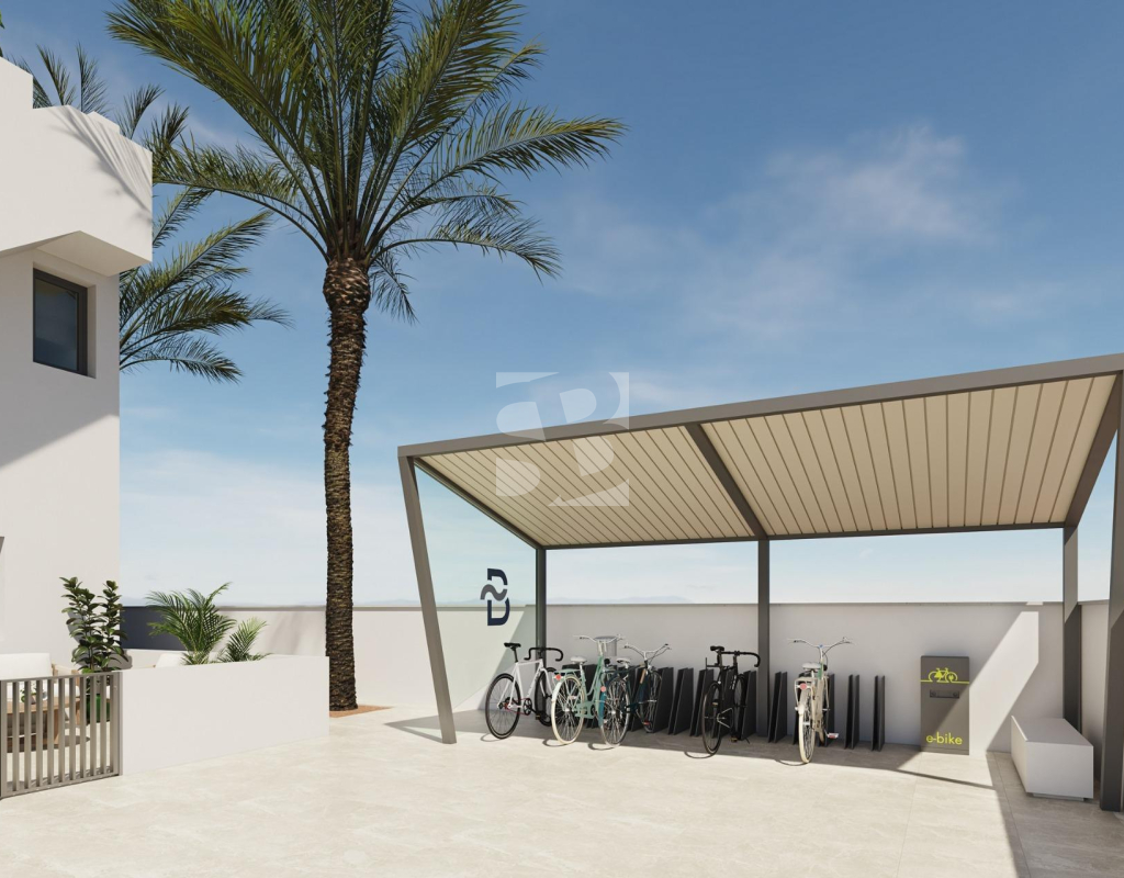 Apartamentos modernos en Pilar de la Horadada - Exclusivo complejo residencial de nueva construcción Descubra un nuevo complejo residencial de 12 elegantes apartamentos con amplias zonas comunes situado en la vibrante localidad de Pilar de la Horadada, Costa Blanca. Esta comunidad cerrada ofrece modernas instalaciones y está diseñada para proporcionar comodidad y conveniencia en una ubicación privilegiada, cerca de todos los servicios esenciales y atracciones populares. Servicios excepcionales para un estilo de vida confortable El complejo residencial cuenta con un garaje privado al aire libre, aparcamiento para bicicletas con puntos de carga eléctrica, amplios jardines paisajísticos y una moderna piscina con zona de playa y tumbonas. También hay vestuarios y aseos para mayor comodidad. El proyecto está construido con materiales de alta calidad, sistemas de ahorro de energía y tecnologías de vanguardia, como la apertura remota de puertas. Apartamentos cuidadosamente diseñados Elija entre apartamentos de 2 dormitorios con cocina americana, amplias zonas de estar y terrazas. Los apartamentos de la planta baja cuentan con jardines privados, mientras que los de la planta superior disponen de terrazas y solariums. Cada apartamento está diseñado para maximizar el espacio y la luz natural, con orientación sur para un confort óptimo. Las características modernas incluyen iluminación LED, aire acondicionado preinstalado, baños totalmente equipados y electrodomésticos de cocina contemporáneos. Ubicación privilegiada cerca de playas y campos de golf Pilar de la Horadada ofrece fácil acceso a las necesidades diarias, instalaciones deportivas y hermosas playas a sólo 3 km de distancia. La ciudad está bien comunicada, con el aeropuerto de Murcia a 40 km y el aeropuerto de Alicante a 75 km. Disfrute de campos de golf de categoría mundial, incluidos cinco en un radio de 15 km, y de las compras en La Zenia, a sólo 15 minutos en coche.