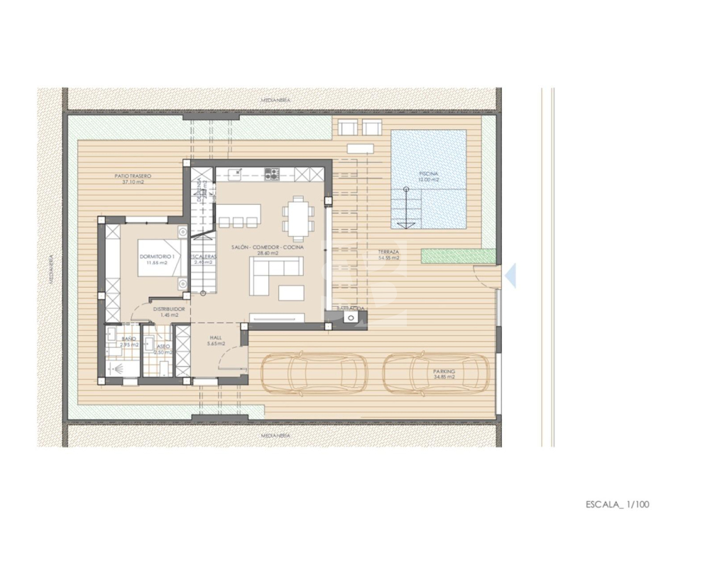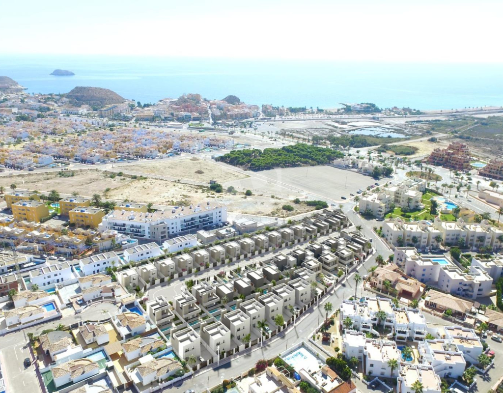 VILLAS DE OBRA NUEVA EN SAN JUAN DE LOS TERREROS La arquitectura contemporánea e innovadora de las villas modernas llega para crear un complejo residencial situado en la localidad de San Juan de los Terreros en Pulpí, Almería, en el sur de España. Estas cuidadas viviendas y complejo residencial combinan un excepcional nivel de diseño y calidad con los más altos estándares de sostenibilidad y bienestar. Viviendas meticulosamente diseñadas por el equipo técnico de arquitectos, para que la luz, la amplitud y la orientación doten a cada vivienda y parcela de un carácter especial. Espacios únicos que abren la puerta a un nuevo estilo de vida para disfrutar. La cimentación y estructura de las viviendas están resueltas con hormigón armado y bajo garantía decenal. Fachadas diseñadas para reducir la demanda energética de la vivienda, combinadas con diversos materiales para conseguir una estética coherente en cuanto a composición y color como se refleja en la infografía. Amplias terrazas dotadas de sólidos antepechos para proporcionar seguridad en las barandillas de las terrazas, otorgando amplitud y luminosidad. Los cerramientos exteriores de la parcela se tratarán con los mismos materiales utilizados en la vivienda, garantizando la integración en el conjunto residencial. Cubiertas planas ventiladas y aisladas sobre forjados, con diferentes acabados según su ubicación y uso. La puerta de entrada a la vivienda será blindada. Las puertas del dormitorio principal, baños secundarios y aseos incluirán cerraduras. La carpintería exterior constará de ventanas y balconeras de Aluminio lacado con persianas enrollables de lamas de aluminio, motorizadas en salones. Sistema de video portero, que garantiza el control de acceso individual para cada una de las viviendas. Los cuartos de baño estarán equipados con lavabo, inodoro y ducha, y los aseos dispondrán de inodoro y lavabo. Los baños cuentan con sanitarios de diseño moderno, de porcelana vitrificada acabada en blanco, de la marca Roca y modelo Gap, con grifería monomando cromada o negro mate a elegir. Las mamparas de ducha irán fijadas con cristal templado de 8mm con una longitud de 80cm. Cada preinstalación está diseñada para un sistema de hasta 10 paneles, que pueden instalarse con un inversor solar conectado a la red eléctrica de la vivienda para minimizar el consumo eléctrico. Estos paneles se integrarán en el tejado, en la zona de instalación, ocultos desde el exterior de la vivienda. La entrada de aire a las viviendas se asegurará mediante la incorporación de un sistema de microventilación en las ventanas de salones y dormitorios. Salida de humos independiente para campana extractora de cocina. Preinstalación de domótica en la vivienda con preparación para una futura instalación de domótica para control de climatización y calefacción de habitaciones, persianas y posibles sistemas de alarma de intrusión. Preinstalación de videovigilancia en la zona de aparcamiento y zonas interiores de la parcela. Cada vivienda dispondrá de una cocina totalmente instalada y acabada en color blanco mate, según diseño, con sistema GOLA. Los armarios interiores serán blancos, con puertas abatibles y cajones con freno bajo placa vitrocerámica, listos para instalar electrodomésticos vistos. Los electrodomésticos no están incluidos. Los dormitorios con armarios empotrados se entregarán con puertas correderas en color blanco mate. Estas viviendas se caracterizarán por su eficiencia y ahorro energéticos, así como por su baja contaminación. Están diseñadas con un enfoque de mayor eficiencia para un menor consumo energético, promoviendo un uso racional de la energía a la vez que se cuida el medio ambiente, la calidad y el confort climático dentro de la vivienda. Los vidrios de baja emisividad evitan la pérdida de calor hacia el exterior, lo que se traduce en un ahorro económico al retener el calor en la vivienda durante el invierno y evitar la entrada de calor durante el verano. Los sistemas de climatización y agua caliente sanitaria están diseñados con sistemas individuales para maximizar el consumo y la eficiencia de cada vivienda. San Juan de los Terreros es una pedanía costera perteneciente al municipio de Pulpí. Es conocida por sus magníficas playas, las últimas de Andalucía. Frente a la costa de San Juan de los Terreros se encuentran dos pequeños islotes de naturaleza volcánica que forman el Monumento Natural de Isla de Terreros-Isla Negra. El monumento más característico de la localidad es el Castillo de San Juan de los Terreros, construido en 1764 sobre un promontorio desde el que, en días despejados, se divisa gran parte de las costas de Almería y Murcia. Integrado en la tranquilidad y belleza de su propia naturaleza, bañado por playas y calas de aguas cristalinas, clasificadas entre las mejores de España. Rodeado de paisajes naturales protegidos que nos llenan de calma y a la vez, nos recargan de energía, gracias a una vibrante oferta gastronómica, social y deportiva. Restaurantes exclusivos, clubes deportivos y, por supuesto, excelentes campos de golf con vistas al mar como Aguilón Golf. Un destino perfecto para disfrutar en familia durante todo el año.