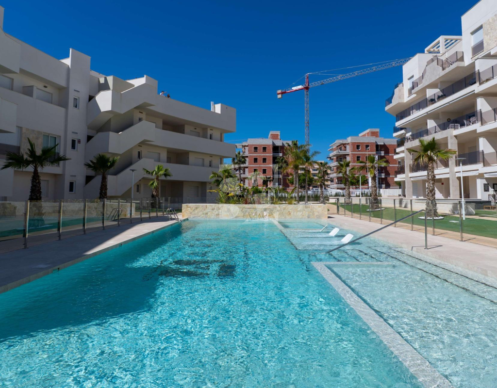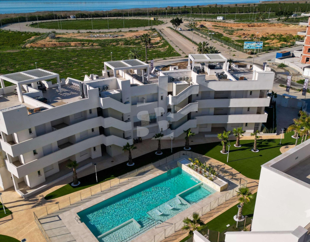 RESIDENCIAL DE OBRA NUEVA EN EL RASO, GUARDAMAR DEL SEGURA Complejo residencial privado de apartamentos de obra nueva en El Raso, Guardamar del Segura. Complejo formado por 135 viviendas de 2 ó 3 dormitorios en bloques de 3 ó 5 plantas más solarium, diseñadas de forma minimalista y con altos estándares de calidad, su moderna arquitectura armoniza con nuestros amplios espacios abiertos, naturaleza y piscinas, ofreciendo un ambiente único y tranquilo. Precioso conjunto residencial, que incluye una zona acristalada de GYM-Spa con vistas a zonas verdes, piscinas y desde su terraza a la laguna salada de La Mata, pista de pádel, etc. Pack de muebles incluido en el precio. Plaza de garaje incluida en el precio. La promoción se ubica en una parcela única e irrepetible, lindando con el paraje natural de la laguna salada, disfrutando de su biodiversidad y entorno único, en El Raso de Guardamar del Segura, con todo tipo de servicios y comodidades y cerca de las mejores playas del Mediterráneo. Al mismo tiempo, gracias a la proximidad de la playa de El Moncayo, podrá dar un paseo en bicicleta y disfrutar del mejor clima de la Costa Blanca. Adicionalmente y gracias a los cinco niveles de algunos de los bloques que componen el residencial, todos ellos orientados al sur, incluimos en nuestros áticos de lujo, cocina totalmente equipada en el solarium, ducha exterior (agua fría/caliente), y zona de jacuzzi, para completar la experiencia única de vivir frente a un entorno natural único e irrepetible. El Raso forma parte de Guardamar del Segura. Guardamar del Segura es un municipio situado en la Costa Blanca Sur. Con sus 11 kilómetros de playa natural y su gran pinar. Guardamar del Segura tiene un gran puerto con actividades durante todo el año, tiene un gran polideportivo con padel, tenis, fútbol y una gran piscina climatizada que funciona todo el año. También tiene una biblioteca donde hay wifi gratuito y ordenadores. Guardamar del Segura se encuentra a tan solo 20km del aeropuerto de Alicante - Elche (El Altet), donde hay numerosos vuelos diarios con conexiones a las principales ciudades europeas, debido a la demanda turística de la Costa Blanca.