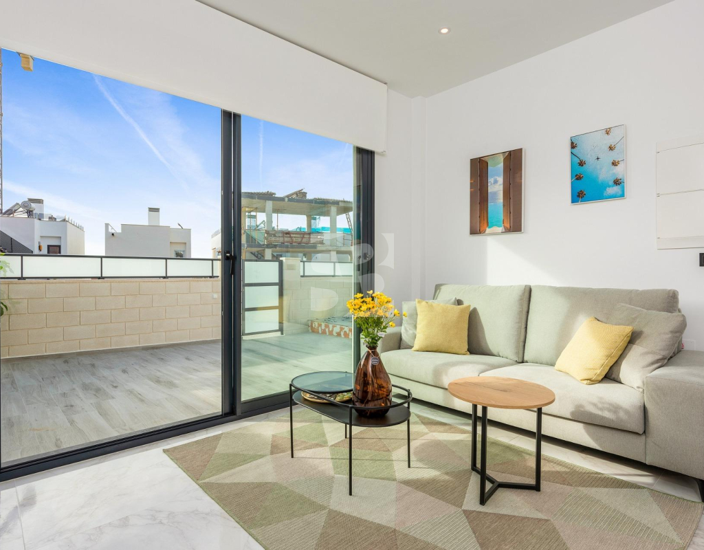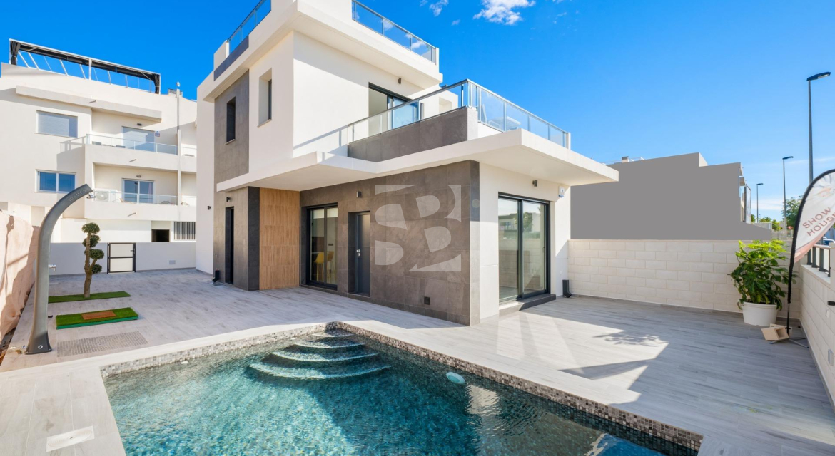 PAREADO DE OBRA NUEVA EN BENIJÓFAR CON PISCINA PRIVADA Pareado con 3 dormitorios, 3 cuartos de baños, cocina abierta al salon-comedor, parcela de 192 m2 con piscina privada y terraza en planta primera de 16 m2 con vistas despejadas. Posibilidad de habilitar un solárium privado de 46 m2 con un coste extra. Benijófar se encuentra en el margen derecho del río Segura, está bien comunicado con Orihuela y Guardamar del Segura por la carretera que te conducirá a sus estupendas playas de arena fina, a menos de 8km de distancia. Hay varios campos de golf en los alrededores (a menos de 4 km). También está comunicado mediante una carretera comarcal con Torrevieja. A 42 km. de Alicante y a 85 km. de Benidorm.