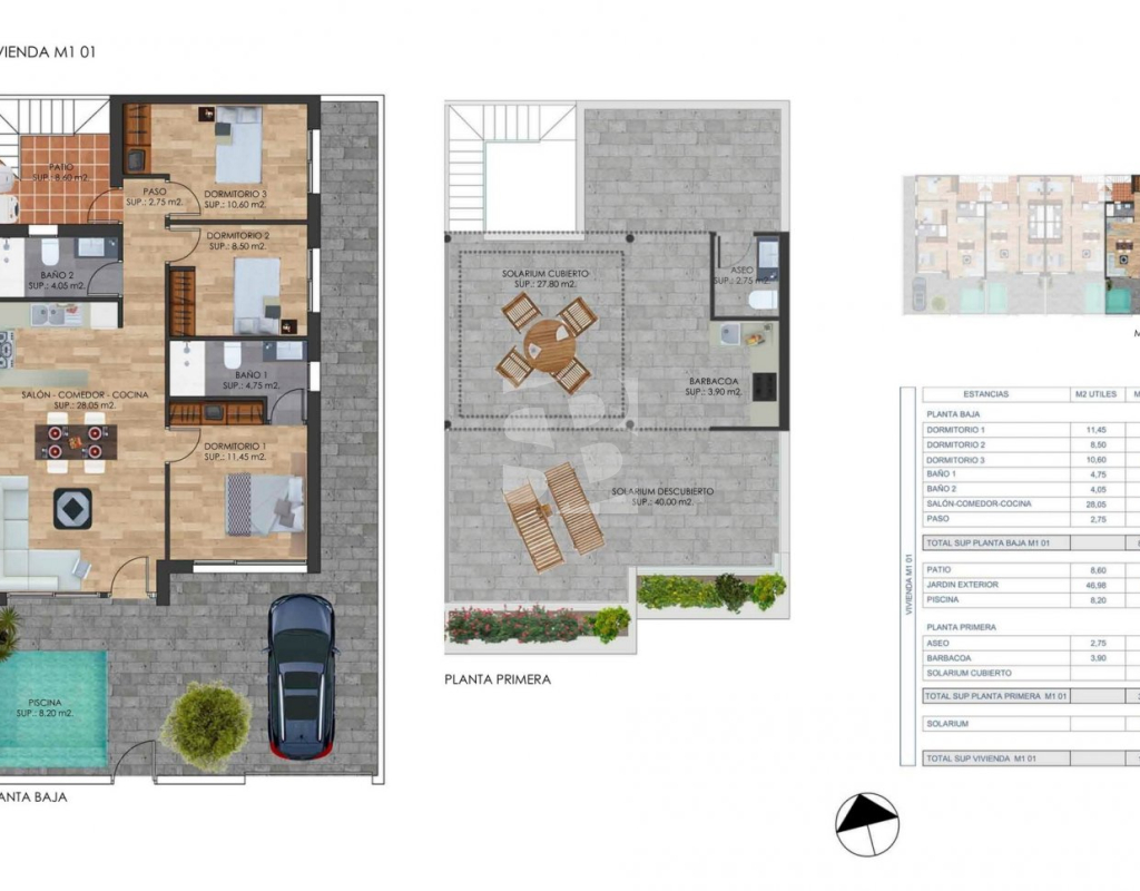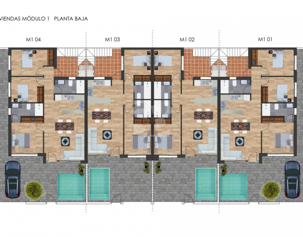 VIVIENDAS DE NUEVA CONSTRUCCIÓN EN TORRE-PACHECO Complejo de nueva construcción de 2 villas adosadas estilo bungalow en esquina y 2 adosados situados en Torre Pacheco, Costa Cálida, España. Propiedades de diseño a estrenar con fabulosas terrazas en la azotea con cocina exterior, barbacoa y aseo. Interiores de lujo y los mejores accesorios. Propiedades disponibles con una selección de estilos de unidades de cocina y azulejos. Las piscinas son un extra opcional y hay una gran zona de patio y aparcamiento seguro. Situado en una zona codiciada de Torre Pacheco, un pequeño pueblo tradicional español a 20 minutos del Mar Menor. Esta ubicación ideal le da mucho más por su dinero. A poca distancia de los servicios locales y muchos bares y restaurantes. Torre Pacheco está rodeado de galardonados campos de golf y toda la región está considerada como uno de los lugares más saludables de España. El sol brilla una media de 320 días al año. No en vano, esta franja costera recibe el nombre de "Costa Cálida". Los niveles de humedad son muy bajos. Todo ello da lugar a una combinación perfecta de mar, clima subtropical, mucha luz y aire limpio. Las fantásticas playas de la Costa Cálida están a 10 minutos. Red de autopistas en las cercanías para poder desplazarse a otras zonas de forma rápida y sencilla. El flamante aeropuerto internacional de Murcia está a 20 minutos.
