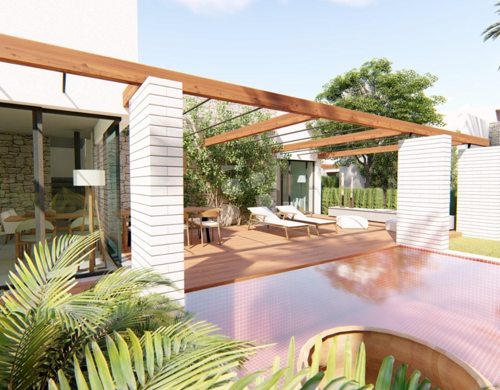 Villas de nueva construcción en Roldán: vida moderna con estilo mediterráneo Villas exclusivas de nueva construcción en El Alba Mediterranean Resort Descubra esta colección limitada de 3 villas independientes de nueva construcción en Roldán, situadas en el prestigioso El Alba Mediterranean Resort. Diseñadas en una sola planta para ofrecer el máximo confort y funcionalidad, cada villa ofrece la posibilidad de elegir entre 2 o 3 dormitorios e incluye 2 baños, una piscina privada y un solárium en la azotea. Estas viviendas contemporáneas combinan un elegante diseño interior con exteriores de inspiración mediterránea con elementos de piedra natural y madera. El resultado es una mezcla perfecta de estilo, calidad y comodidad en un entorno tranquilo y bien comunicado. Interiores amplios, luminosos y funcionales Cada villa cuenta con: Salón-comedor diáfano con moderna cocina americana Armarios empotrados en todos los dormitorios Jardín privado con piscina Solárium en la azotea ideal para tomar el sol y disfrutar al aire libre Dos plazas de aparcamiento privadas Preinstalación de aire acondicionado por conductos Cocinas equipadas con armarios altos y bajos La distribución en una sola planta garantiza una fácil accesibilidad y una distribución práctica en toda la vivienda, lo que hace que estas villas sean ideales tanto para vivir todo el año como para pasar las vacaciones. Ubicación inmejorable en Roldán, Murcia El Alba Mediterranean Resort es una comunidad residencial cerrada que ofrece una amplia gama de servicios, entre los que se incluyen: Club social con bar y salón Piscina comunitaria Pistas de pádel Zonas ajardinadas y calles peatonales Situado a pocos pasos del centro de Roldán, los residentes tienen acceso a supermercados, bancos, restaurantes y cafeterías. La tranquila localidad de Roldán ofrece todos los servicios necesarios para el día a día, conservando al mismo tiempo el encanto de un pueblo tranquilo. Lugares de interés cercanos Playas del Mar Menor: 15 km Campo de golf Terrazas de la Torre: 4 km La Torre Golf Resort: 6 km Centro comercial Dos Mares: 25 km Aeropuerto Internacional de Murcia (RMU): 20 km Centro de Cartagena: 35 km Centro de Murcia: 36 km Esta región de Murcia es conocida por su clima templado, su belleza natural y su alta calidad de vida. Gracias a las excelentes conexiones por carretera, se puede llegar a las ciudades, playas y campos de golf cercanos en pocos minutos. La casa de sus sueños al sol le está esperando. Póngase en contacto con nosotros ahora para concertar una visita o solicitar más información.
