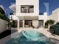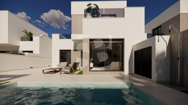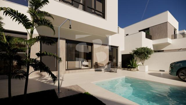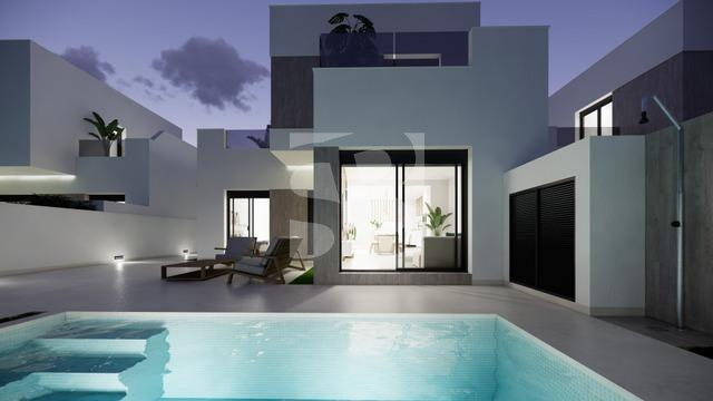 Villas de Obra Nueva en San Fulgencio con Piscina Privada y Diseño Moderno Exclusiva promoción de 7 villas independientes con orientación sur en la Costa Blanca Descubra esta atractiva promoción de 7 villas modernas e independientes en San Fulgencio, un encantador municipio de la provincia de Alicante. Diseñadas con un estilo contemporáneo y orientadas al sur para maximizar la luz natural, estas viviendas combinan confort, calidad y ubicación ideal en la Costa Blanca sur. Distribución funcional y espacios al aire libre Las villas se desarrollan en dos plantas y ofrecen una excelente distribución interior: 3 dormitorios amplios, uno de ellos en planta baja 2 baños completos y 1 aseo adicional Cocina de concepto abierto completamente amueblada con electrodomésticos incluidos Salón luminoso con acceso al exterior En el exterior, cada vivienda cuenta con: Piscina privada de 3x5 metros Parking dentro de la parcela Dos terrazas abiertas en la planta superior, ideales para disfrutar del sol todo el día Calidades superiores y eficiencia energética Las villas están construidas con materiales de alta gama y enfocadas en la sostenibilidad: Persianas eléctricas Carpintería exterior con doble acristalamiento Sistema de aerotermia para agua caliente Preinstalación de aire acondicionado por conductos Baños equipados con muebles, mamparas y espejos Ubicación estratégica en San Fulgencio San Fulgencio ofrece la tranquilidad de un entorno residencial con todos los servicios a mano, como restaurantes, supermercados, farmacias y más. Además, su excelente ubicación permite llegar fácilmente a los principales puntos de interés de la zona: Playa de La Marina – 7 km Guardamar del Segura – 10 km Campo de Golf La Marquesa (Ciudad Quesada) – 6 km Centro de Torrevieja – 18 km Aeropuerto Internacional de Alicante-Elche – 30 km Ideal para vivir, invertir o disfrutar las vacaciones Estas villas representan una oportunidad única tanto para residencia permanente como para inversión inmobiliaria en una de las zonas más demandadas del sur de la Costa Blanca. Ya sea para disfrutar del sol mediterráneo o como segunda vivienda, este proyecto ofrece calidad, diseño y una ubicación excelente. Contáctenos hoy mismo para más información o para agendar su visita y descubra su nuevo hogar en San Fulgencio.