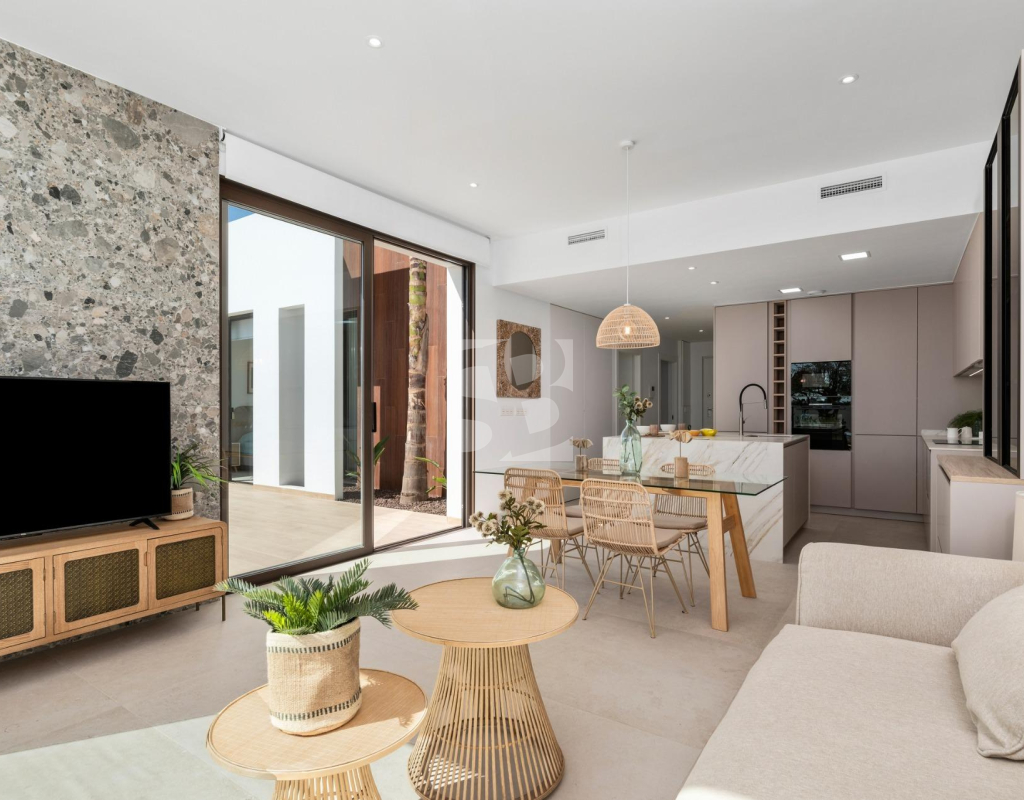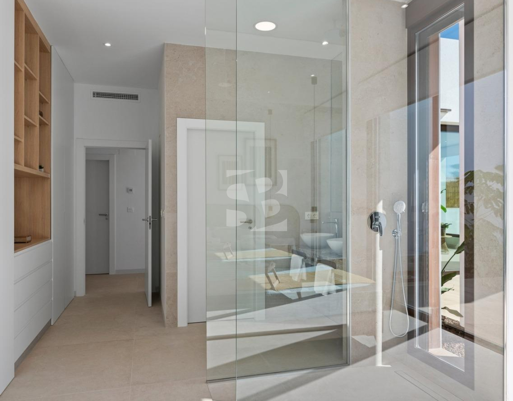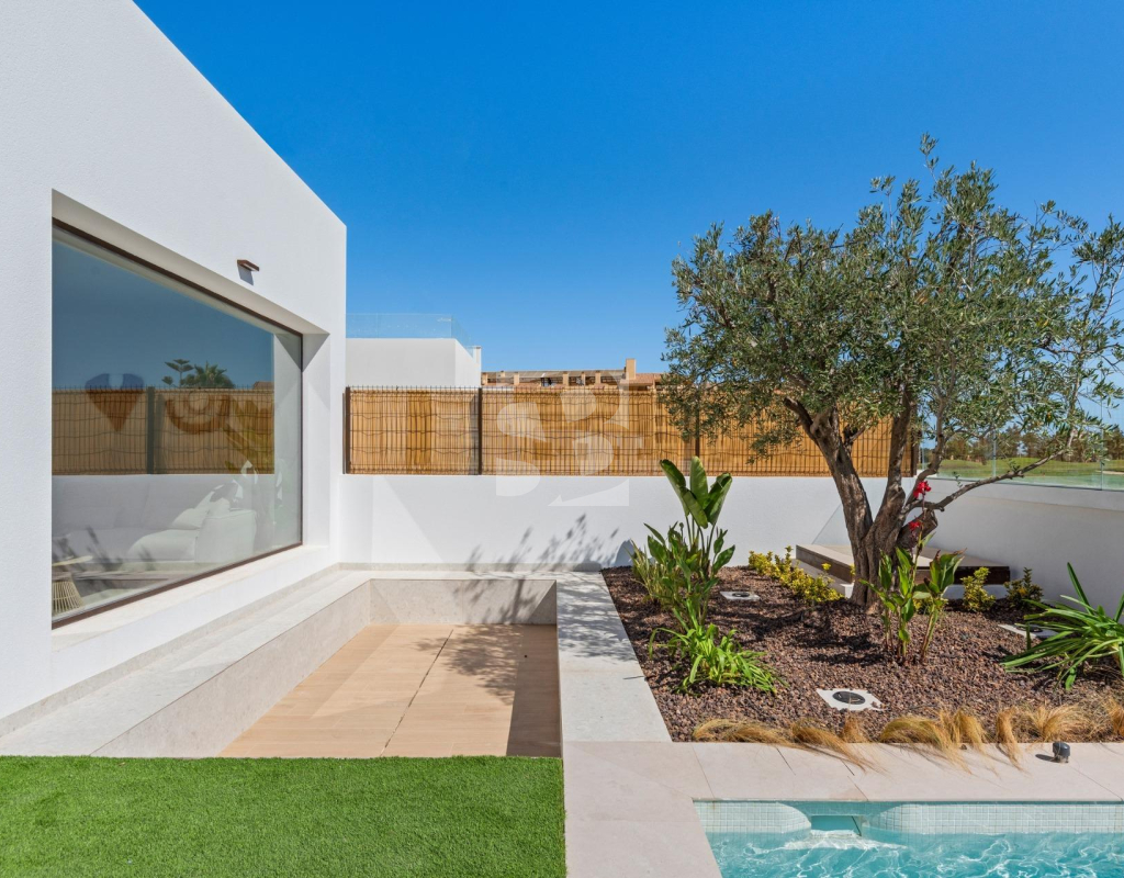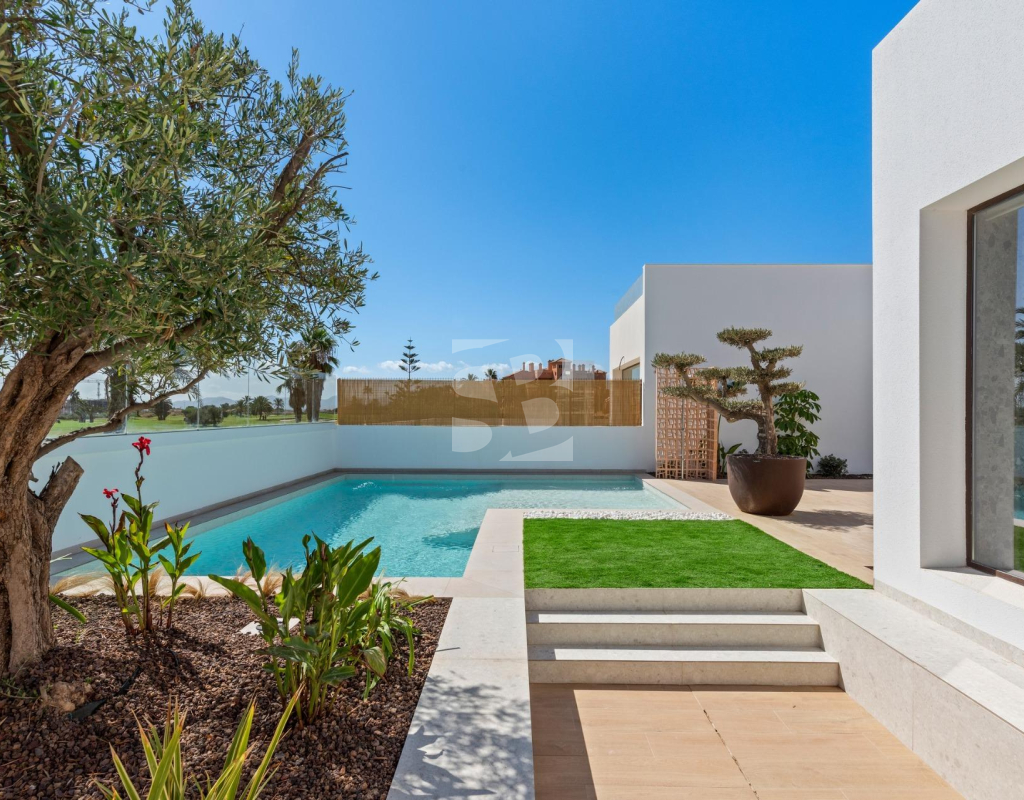 Villas de obra nueva en primera línea de La Serena Golf en Los Alcázares Descubra un nuevo complejo residencial en Los Alcázares, Murcia, con 16 modernos apartamentos y áticos de 2 y 3 dormitorios, además de 8 exclusivas villas. Esta promoción combina a la perfección diseño contemporáneo, alta calidad y funcionalidad. Su inmejorable ubicación ofrece impresionantes vistas a La Serena Golf y al Mar Menor. Lujosas villas con modernas instalaciones Las villas cuentan con 3 amplios dormitorios, 2 baños, cocina americana integrada en el salón, armarios empotrados, una gran terraza, piscina privada y plaza de aparcamiento. Algunas unidades también cuentan con un sótano, y un solarium está disponible como una opción. Ubicación privilegiada junto al campo de golf de La Serena Situado en el corazón del prestigioso campo de golf La Serena, conocido por su combinación única de lagos y exuberante vegetación, la zona residencial ofrece un estilo de vida tranquilo. El diseño estratégico del campo de golf incorpora elementos de agua en 16 de sus 18 hoyos, proporcionando una experiencia desafiante pero agradable para los golfistas. El campo se encuentra a poca distancia del centro de Los Alcázares, lo que ofrece el equilibrio perfecto entre tranquilidad y accesibilidad a los servicios locales. Puntos de interés cercanos La Serena Golf: 0 km Playa del Mar Menor: 1 km Aeropuerto de Murcia: 25 km Cartagena: 21 km Centro comercial local: 4 km Aeropuerto de Alicante: 55 km