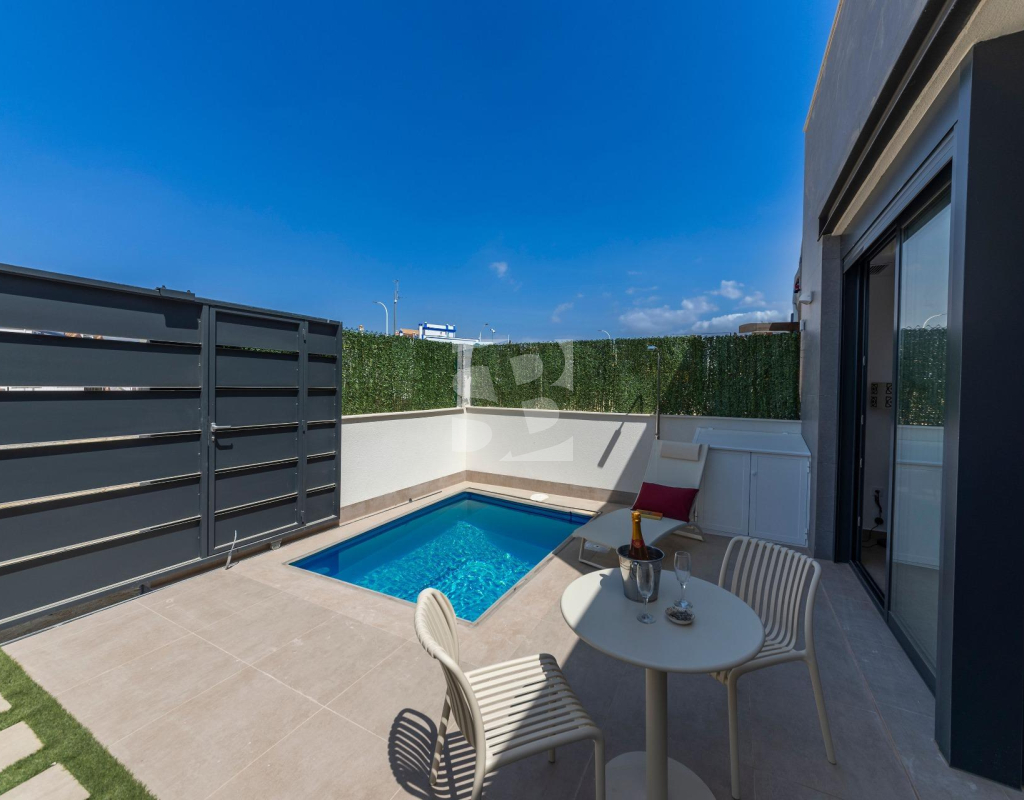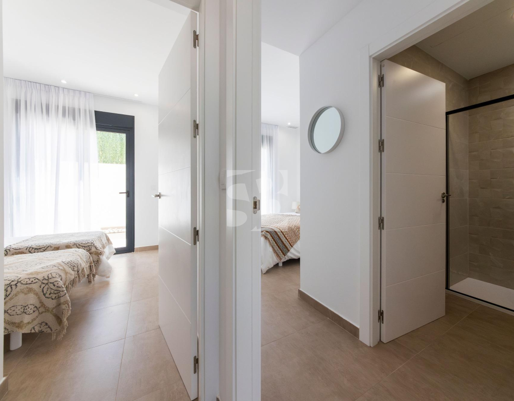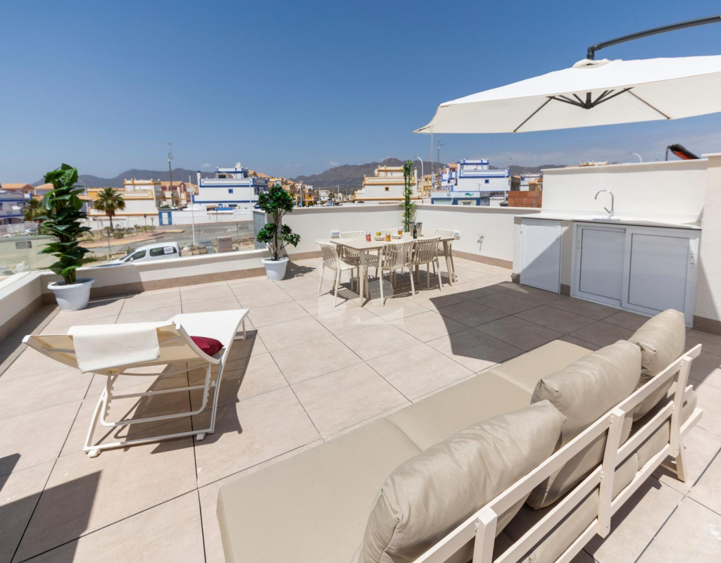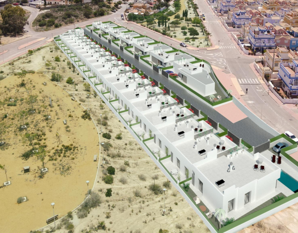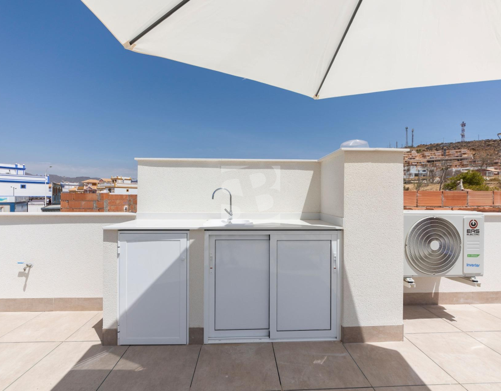 VILLAS DE OBRA NUEVA SAN JUAN DE LOS TERREROS, ALMERIA Obra Nueva de 26 Modernas villas de planta baja con solarium y piscina privada, de 2 y 3 dormitorios, a 500 metros de las playas. En pleno centro, gran acceso a todos los servicios del día a día, como restaurantes, bares con exquisita gastronomía, centros educativos, instalaciones deportivas, supermercados, tiendas y centro comercial a 10 min en coche. Villas situadas a 60 min del Aeropuerto Internacional de Corvera y a 60 min del Aeropuerto Internacional de Almería. El proyecto se va a desarrollar en una parcela elevada donde disfrutará de impresionantes vistas a zonas verdes, situada a tan sólo 500 metros de la playa, cerca de atractivos turísticos muy atractivos como nuestra Geoda, cubierta por enormes cristales de selenita, una variedad transparente o translúcida de yeso, la más grande del mundo que se puede visitar. Campos de golf: Aguilón Golf a 5′ en coche de la urbanización y Golf San Juan a 3′ en coche. Incluido en el precio: Piscina privada con iluminación y ducha exterior. Solarium equipado con cocina de verano. Zona ajardinada con césped artificial y alicatada según plano. Lavadero bajo la escalera con acceso al solarium. Iluminación LED interior y exterior. Tomas de TV en todas las habitaciones y porche. Persianas eléctricas en dormitorios. Portero automático. Sanitarios, espejo con LED y pantalla fija. Armarios empotrados acabados con cajonera y altillo. Cocina amueblada con encimera y frente de Silestone, electrodomésticos (lavadora, horno, vitrocerámica, campana extractora, lavavajillas, frigorífico y aerotermo). Las ventanas correderas son de alta seguridad, doble cámara. Preinstalación de conductos de aire acondicionado con rejillas de retorno. Preinstalación de placas fotovoltaicas. Plaza de garaje con césped artificial y zona de aparcamiento dentro de la parcela. Preinstalación para motor de puerta de parking. Muro perimetral con valla de simple torsión y seto artificial. Gas ciudad. San Juan de los Terreros, en Andalucía, es un destino costero de ensueño. Sus aguas cristalinas invitan a relajarse bajo el sol y disfrutar de la tranquilidad del mar. El estilo de vida en esta encantadora localidad es tranquilo y relajado, con un ritmo pausado que permite apreciar la belleza natural y la rica cultura de la región. Con una amplia oferta de restaurantes, bares y actividades al aire libre, San Juan de los Terreros es el lugar perfecto para disfrutar de la vida junto al mar.