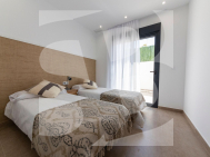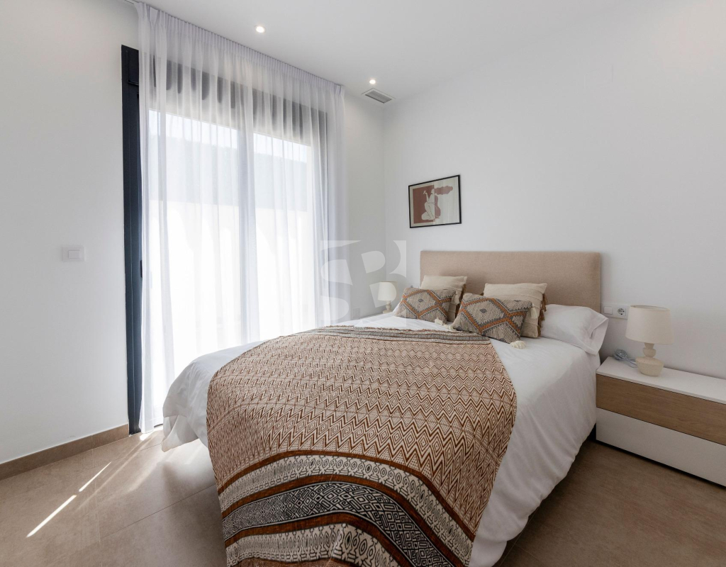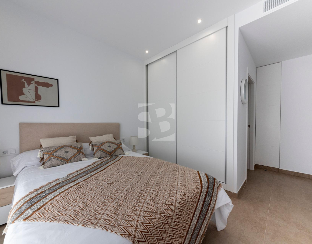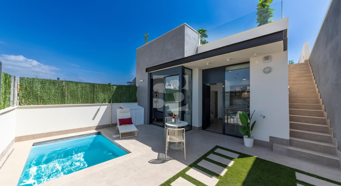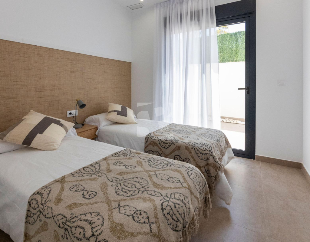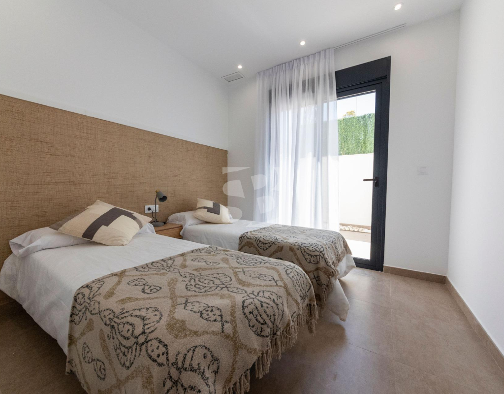VILLAS DE OBRA NUEVA SAN JUAN DE LOS TERREROS, ALMERIA Obra Nueva de 26 Modernas villas de planta baja con solarium y piscina privada, de 2 y 3 dormitorios, a 500 metros de las playas. En pleno centro, gran acceso a todos los servicios del día a día, como restaurantes, bares con exquisita gastronomía, centros educativos, instalaciones deportivas, supermercados, tiendas y centro comercial a 10 min en coche. Villas situadas a 60 min del Aeropuerto Internacional de Corvera y a 60 min del Aeropuerto Internacional de Almería. El proyecto se va a desarrollar en una parcela elevada donde disfrutará de impresionantes vistas a zonas verdes, situada a tan sólo 500 metros de la playa, cerca de atractivos turísticos muy atractivos como nuestra Geoda, cubierta por enormes cristales de selenita, una variedad transparente o translúcida de yeso, la más grande del mundo que se puede visitar. Campos de golf: Aguilón Golf a 5′ en coche de la urbanización y Golf San Juan a 3′ en coche. Incluido en el precio: Piscina privada con iluminación y ducha exterior. Solarium equipado con cocina de verano. Zona ajardinada con césped artificial y alicatada según plano. Lavadero bajo la escalera con acceso al solarium. Iluminación LED interior y exterior. Tomas de TV en todas las habitaciones y porche. Persianas eléctricas en dormitorios. Portero automático. Sanitarios, espejo con LED y pantalla fija. Armarios empotrados acabados con cajonera y altillo. Cocina amueblada con encimera y frente de Silestone, electrodomésticos (lavadora, horno, vitrocerámica, campana extractora, lavavajillas, frigorífico y aerotermo). Las ventanas correderas son de alta seguridad, doble cámara. Preinstalación de conductos de aire acondicionado con rejillas de retorno. Preinstalación de placas fotovoltaicas. Plaza de garaje con césped artificial y zona de aparcamiento dentro de la parcela. Preinstalación para motor de puerta de parking. Muro perimetral con valla de simple torsión y seto artificial. Gas ciudad. San Juan de los Terreros, en Andalucía, es un destino costero de ensueño. Sus aguas cristalinas invitan a relajarse bajo el sol y disfrutar de la tranquilidad del mar. El estilo de vida en esta encantadora localidad es tranquilo y relajado, con un ritmo pausado que permite apreciar la belleza natural y la rica cultura de la región. Con una amplia oferta de restaurantes, bares y actividades al aire libre, San Juan de los Terreros es el lugar perfecto para disfrutar de la vida junto al mar.