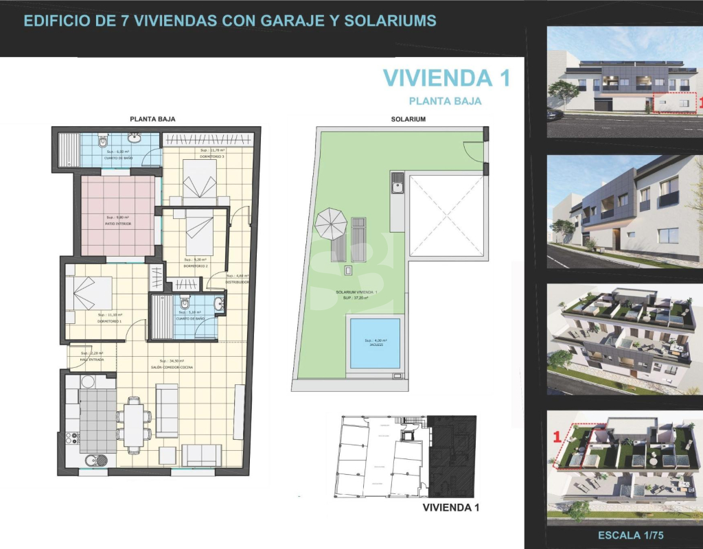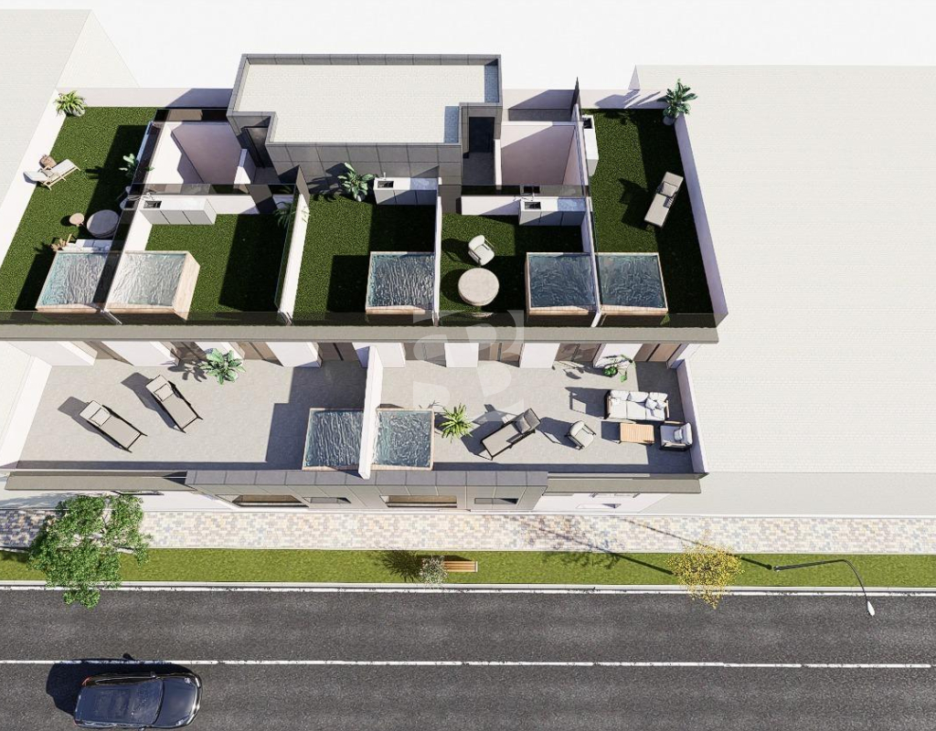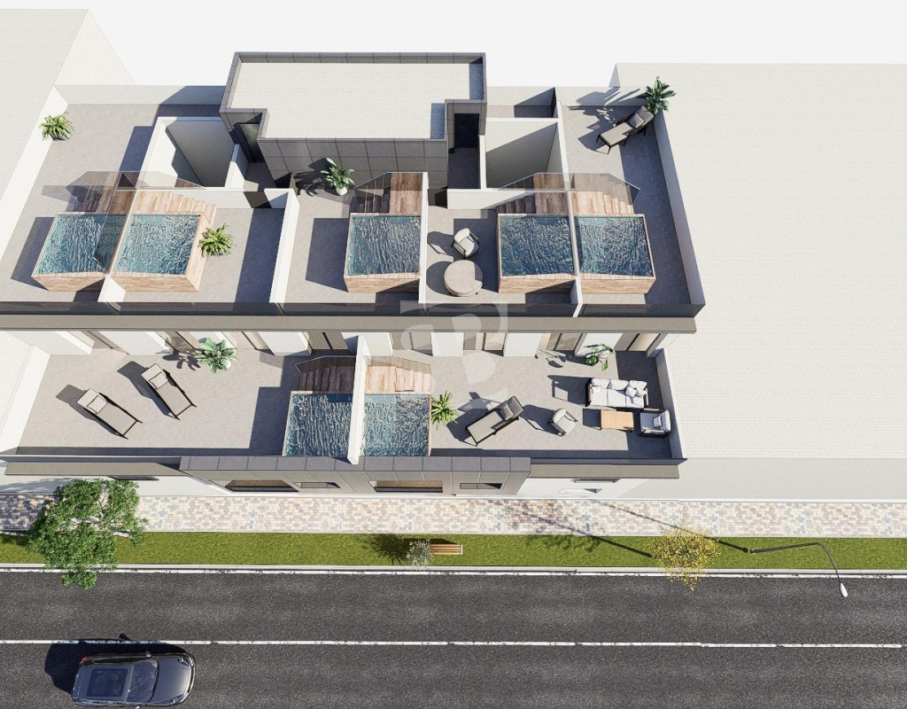 Apartamentos de obra nueva en Pilar de la Horadada con jacuzzi privado Ubicación privilegiada en el corazón de Pilar de la Horadada Situada en el vibrante centro de Pilar de la Horadada, Alicante, esta exclusiva promoción de obra nueva ofrece una inmejorable combinación de vida moderna y encanto mediterráneo. Pilar de la Horadada es una pintoresca ciudad española situada en el extremo sur de la Costa Blanca, conocida por su acogedora comunidad, sus encantadoras plazas y su proximidad a impresionantes playas. Opciones y características de los apartamentos El complejo residencial consta de siete apartamentos meticulosamente diseñados, que ofrecen una gama de diseños para adaptarse a diversas necesidades: Planta baja: Un espacioso apartamento de 3 dormitorios que incluye un solarium privado en la azotea. Primera planta: Cuatro apartamentos de 1 ó 2 dormitorios, cada uno con solárium individual. Áticos: Dos exclusivos apartamentos de 3 dormitorios con amplias terrazas privadas. Todos los apartamentos cuentan con acabados de alta gama, incluyendo: Cocinas totalmente equipadas con modernos electrodomésticos. Preinstalación de aire acondicionado por conductos para su comodidad. Carpintería exterior de aluminio con rotura de puente térmico para un mayor aislamiento. Doble acristalamiento (4+14+4 Climalit o similar) para una mayor eficiencia energética. Elegantes cuartos de baño con inodoro suspendido (Roca Gap o similar), duchas efecto lluvia y espejos y mamparas incluidos. Jacuzzis privados para cada casa, perfectos para relajarse. Servicios adicionales para una vida elevada La urbanización ofrece: Una plaza de aparcamiento para cada apartamento situada en la planta baja. Un ascensor que da acceso desde la planta baja a la planta solarium. Una cocina de verano en cada solarium, ideal para el entretenimiento al aire libre. Cómodo acceso a los principales puntos de interés Esta ubicación proporciona fácil acceso a los servicios y atracciones esenciales: Playas: Las playas de Torre de la Horadada y Mil Palmeras están a sólo 3 km, a 5 minutos en coche o en bicicleta. Campos de Golf: El campo de golf más cercano está a 8 km, perfecto para los amantes del golf. Centros Comerciales: Zenia Boulevard, uno de los mayores centros comerciales de la zona, está a 12 km. Aeropuertos: El aeropuerto de Corvera (Murcia) está a 40 minutos (40 km), y el aeropuerto de Alicante a 55 minutos (55 km) en coche. Descubra el estilo de vida mediterráneo Pilar de la Horadada combina la tranquilidad de un pueblo costero con la comodidad de la vida moderna, ofreciendo supermercados, restaurantes, bares y plazas vibrantes a poca distancia. Programe su visita hoy mismo No pierda la oportunidad de ser propietario de la casa de sus sueños en esta codiciada zona de la Costa Blanca. Póngase en contacto con nosotros para concertar una visita o para obtener más información.