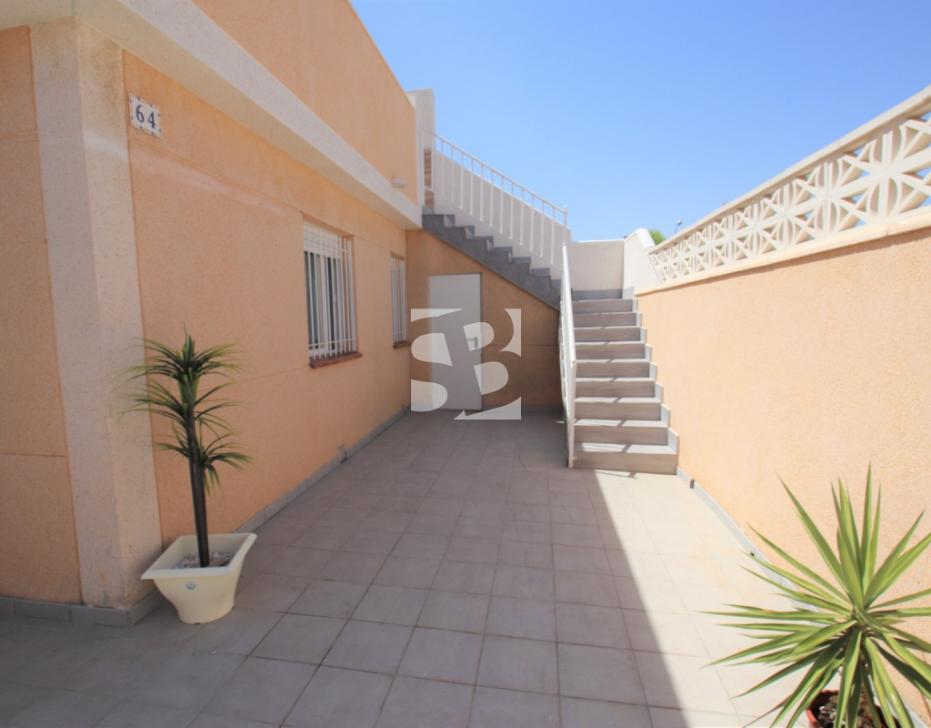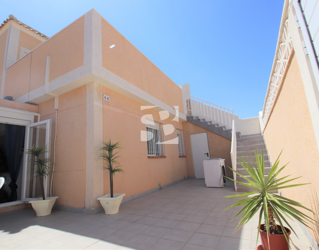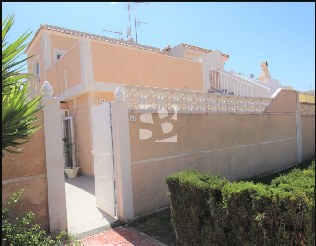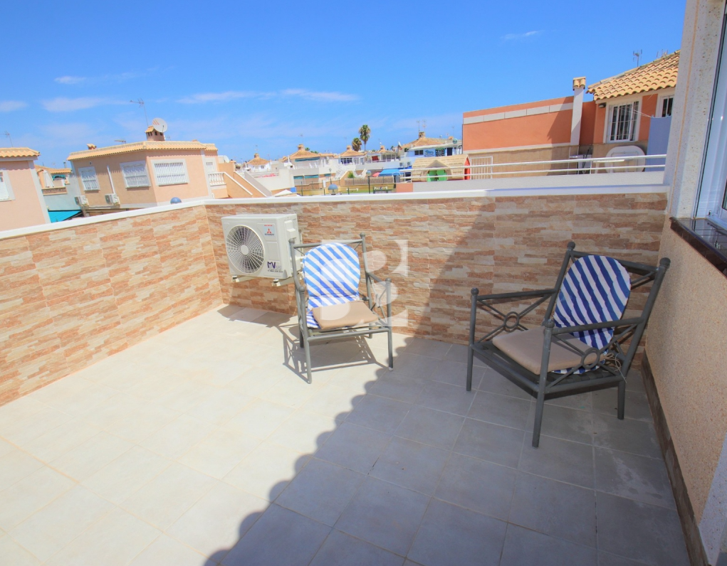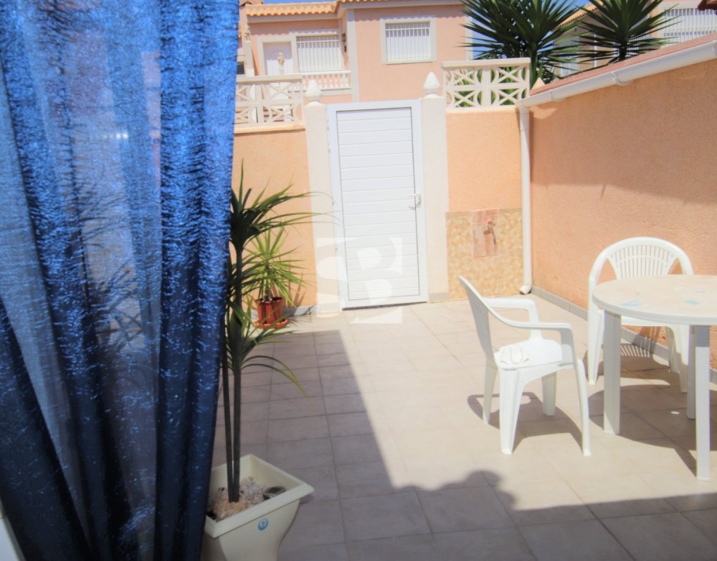 La vivienda muy luminosa con sol todo el día se distribuye en dos planta, en la primera planta dos dormitorios, un baño, cocina americana, salón con acceso a porche cerrado perfecto para aprovechar su uso todo el año y jardín en esquina con trastero. En la planta alta, se accede por fuera dos dormitorios y un aseo, con acceso a terraza muy amplia perfecta para tomar el sol. La casa se vende amueblada, equipada, con aire acondicionado y electrodomésticos, además cuenta con preciosas zonas verdes comunitarias y piscina.