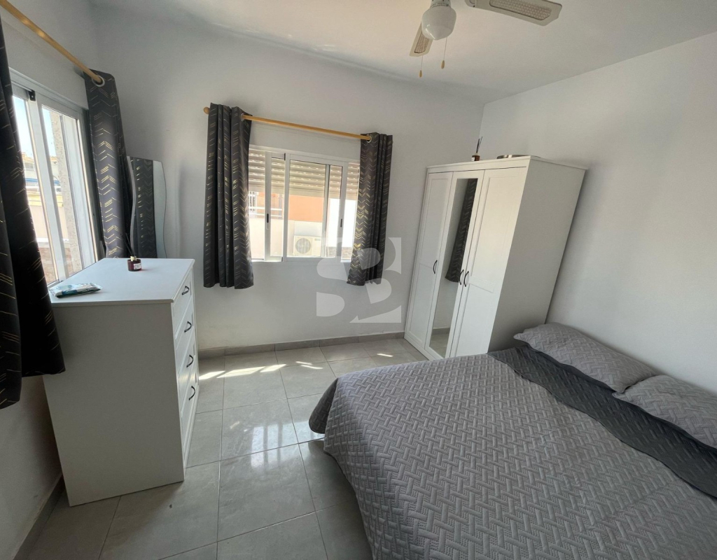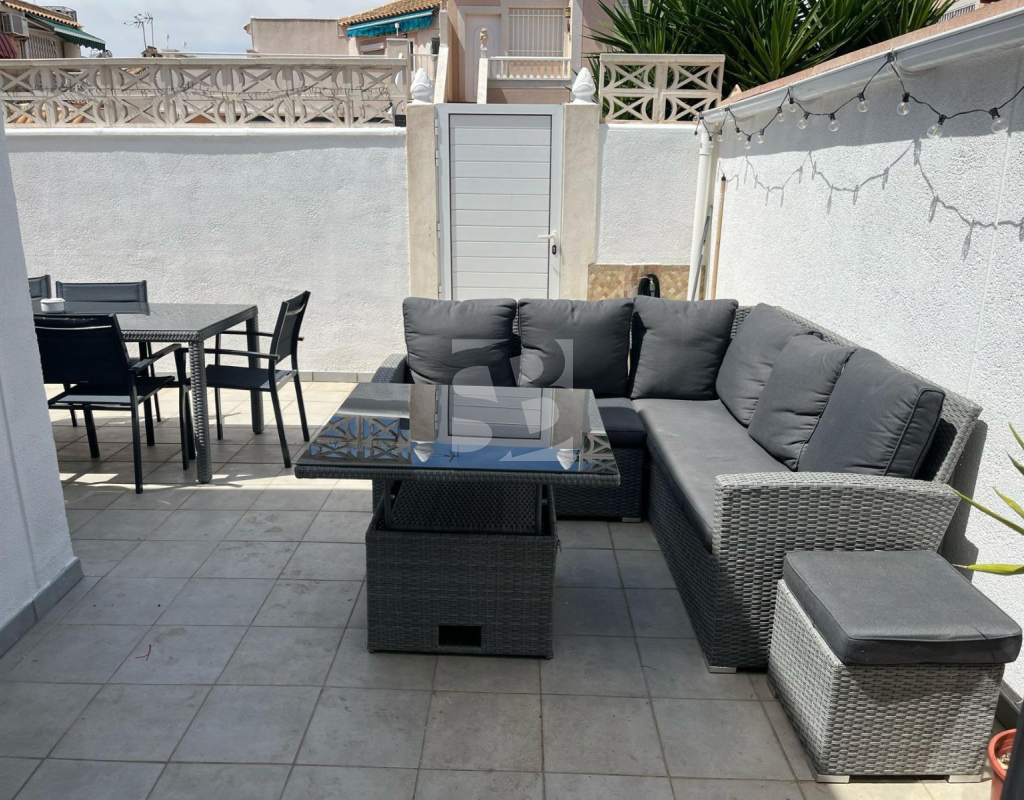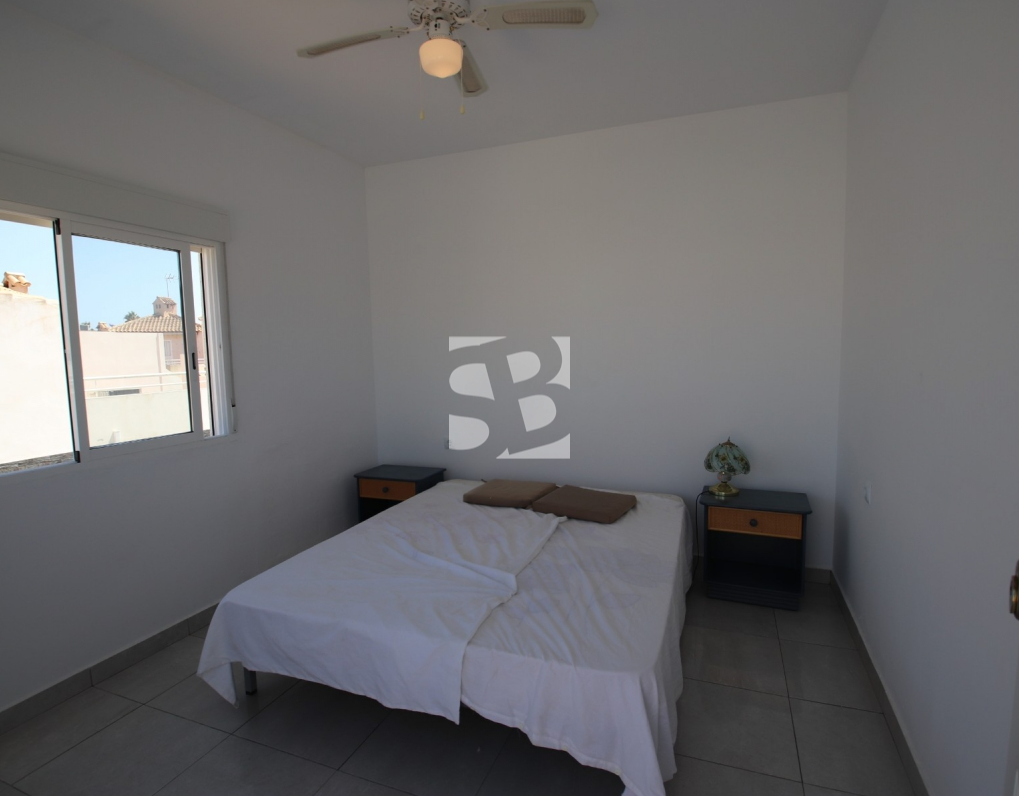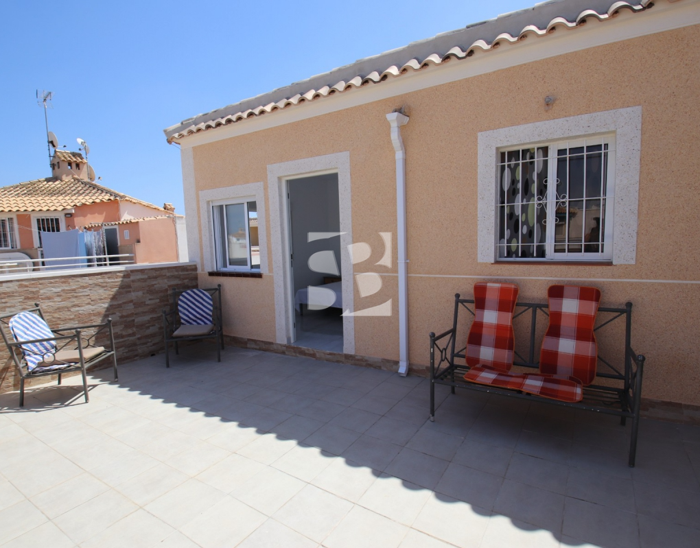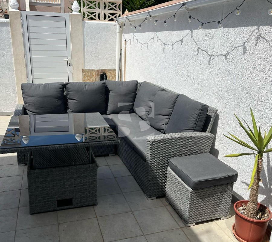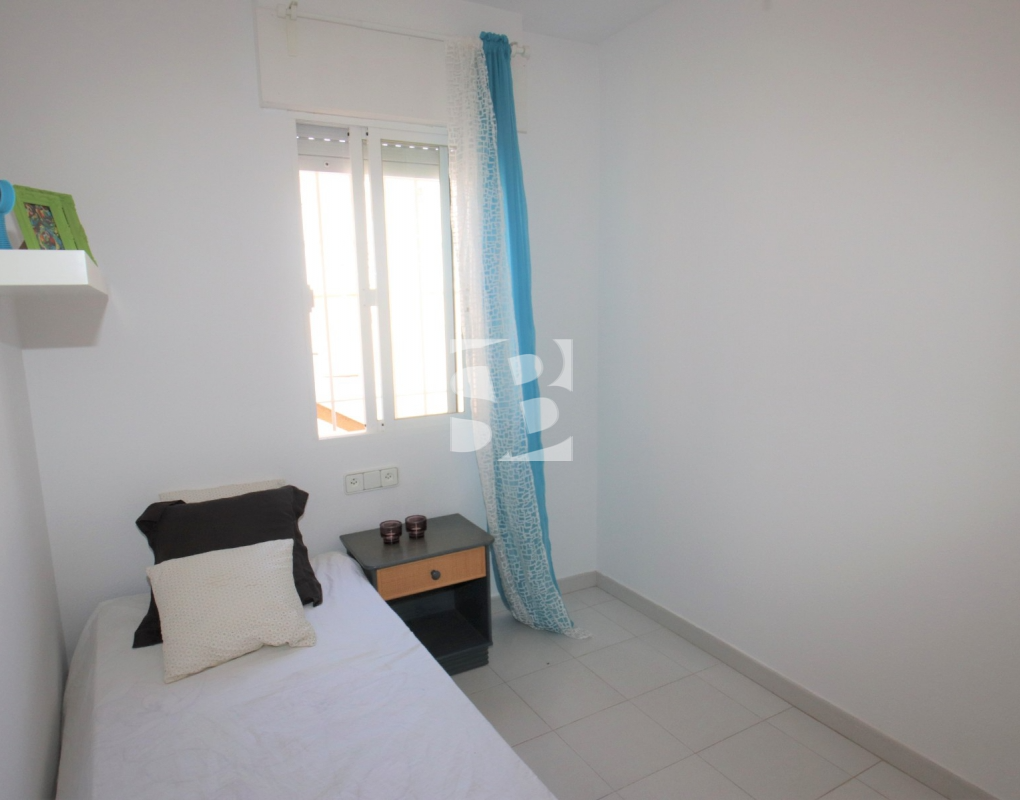 La vivienda muy luminosa con sol todo el día se distribuye en dos planta, en la primera planta dos dormitorios, un baño, cocina americana, salón con acceso a porche cerrado perfecto para aprovechar su uso todo el año y jardín en esquina con trastero. En la planta alta, se accede por fuera dos dormitorios y un aseo, con acceso a terraza muy amplia perfecta para tomar el sol. La casa se vende amueblada, equipada, con aire acondicionado y electrodomésticos, además cuenta con preciosas zonas verdes comunitarias y piscina.