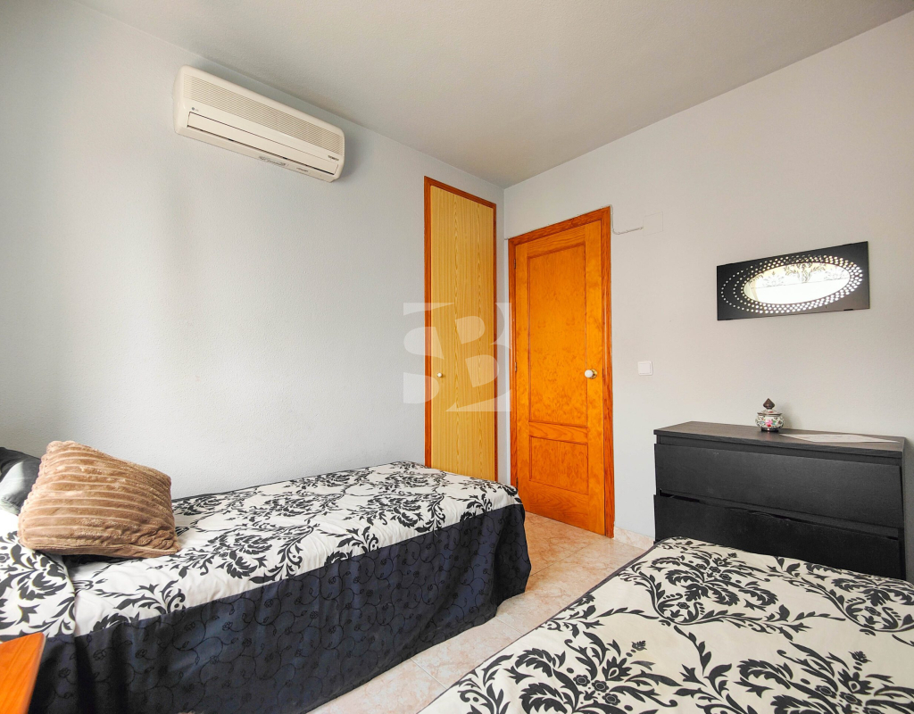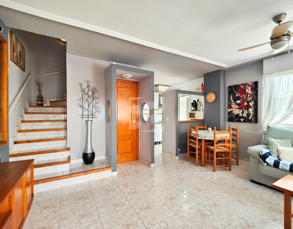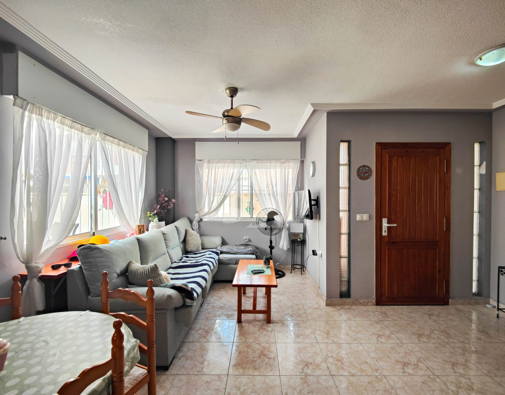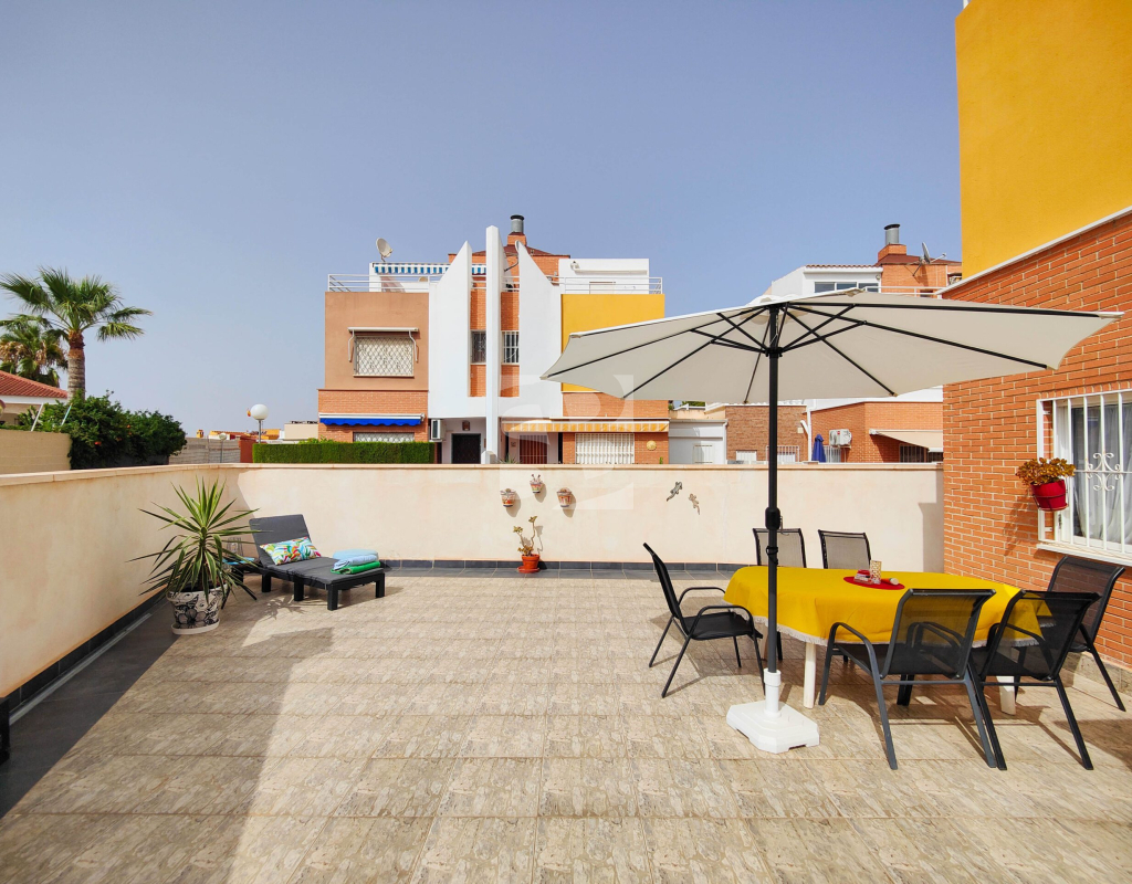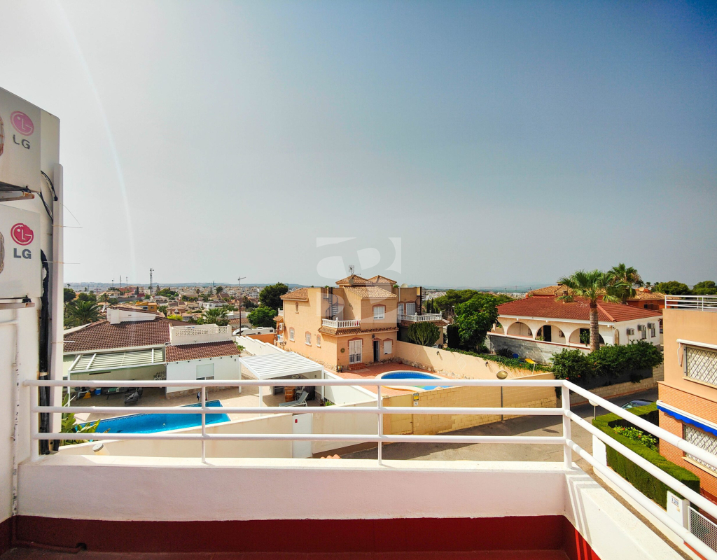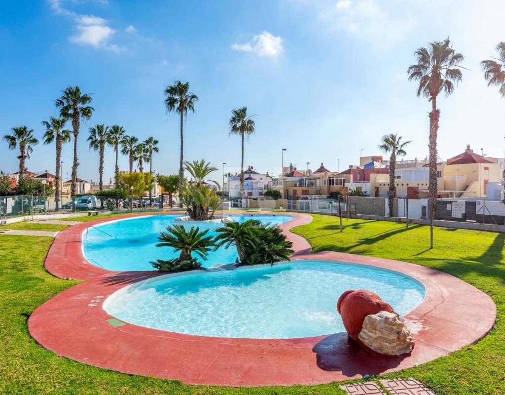 Precioso adosado en esquina con un jardín enorme en venta en El Mirador de Los Altos, Orihuela Costa Esta estupenda casa adosada en esquina se encuentra en una tranquila y consolidada zona residencial de Los Altos, con una bonita piscina comunitaria rodeada de zonas verdades. La vivienda dispone de 3 dormitorios y 2 baños, un luminoso y acogedor salón-comedor, y una cocina americana con salida directa al jardín. En el exterior, destaca su amplísimo jardín en esquina con aparcamiento privado dentro de la parcela y un nuevo portón eléctrico. La vivienda también cuenta con un solárium privado, ideal para relajarse y disfrutar del sol durante todo el año. La casa cuenta con aire acondicionado y se vende totalmente amueblada, lista para entrar a vivir. Además, la fachada exterior ha sido recientemente pintada. Los Altos es una de las zonas residenciales más demandadas, situada a solo 4 km al sur de Torrevieja. A poca distancia a pie encontrarás todos los servicios necesarios: supermercados, tiendas, bares, restaurantes y mucho más. En coche, en solo unos minutos, podrás disfrutar de las playas de Orihuela Costa y del popular centro comercial Zenia Boulevard.