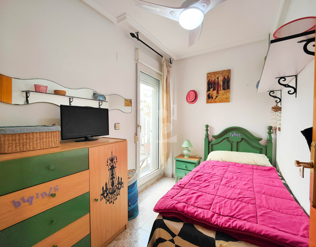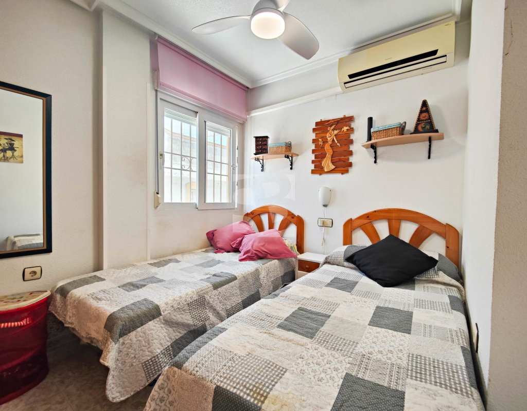 Se vende encantador bungalow en planta alta con solárium privado en Urb. Parque de las Naciones, Torrevieja, cerca de tiendas, restaurantes y no muy lejos del centro de Torrevieja y de la playa. Se encuentra en una comunidad con una preciosa zona verde con piscina, pista de tenis y de fútbol. La vivienda ofrece 3 dormitorios, 1 baño con ventana y una cocina americana integrada al salón. Esta vivienda es única, ya que cuenta con una terraza frontal más grande de lo normal. Además cuenta con un solárium privado con estupendas vistas despejadas a los alrededores. No pierdas la oportunidad de comprar este bungalow en planta alta con 3 dormitorios, 1 baño y solárium privado en Urb. Parque de las Naciones - Torrevieja